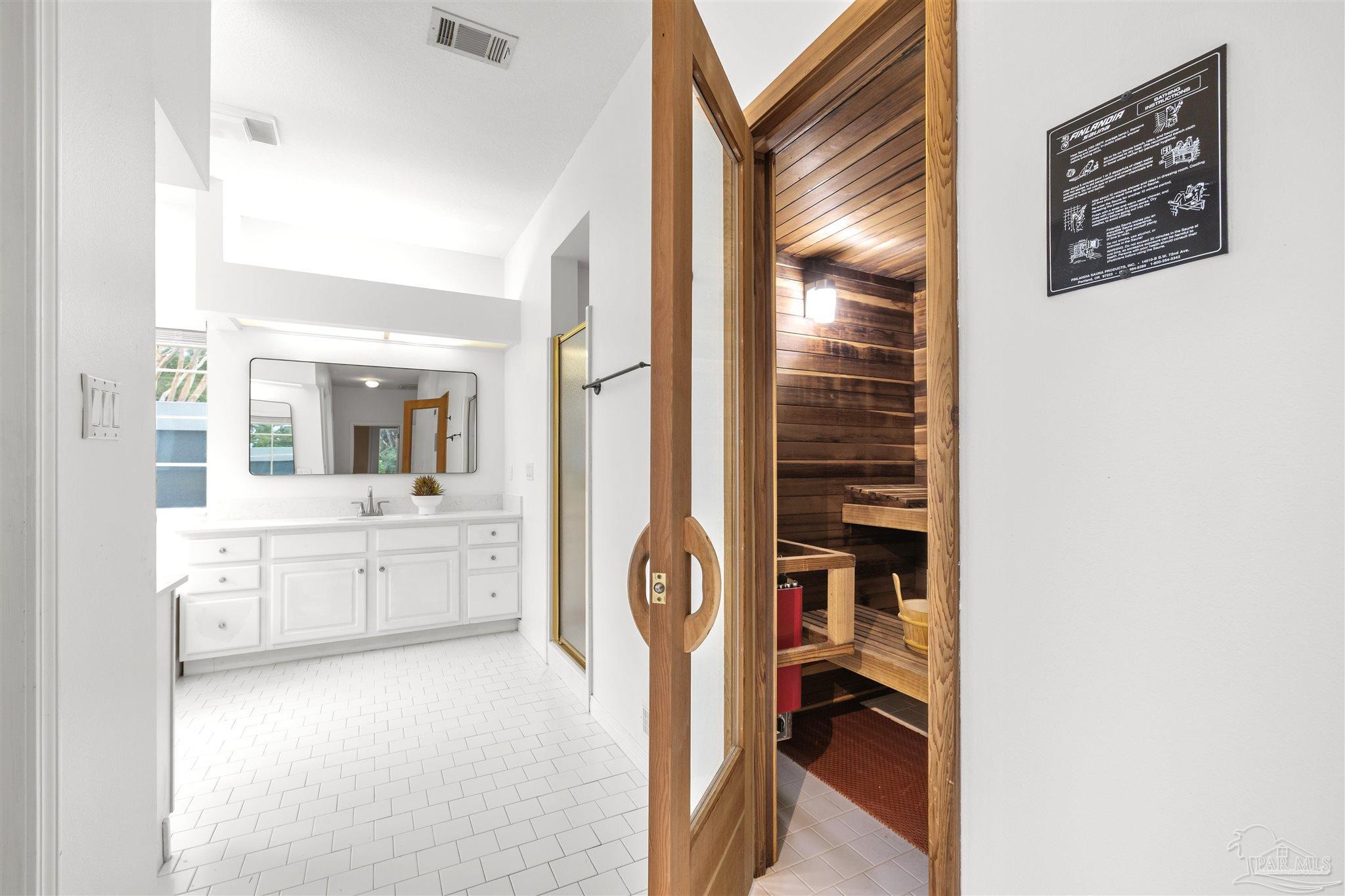 - Storage, Baseboards, Ceiling Fan(s), Crown Molding, High Ceilings, Plant Ledges, Recessed Lighting, Sauna, Steam Room