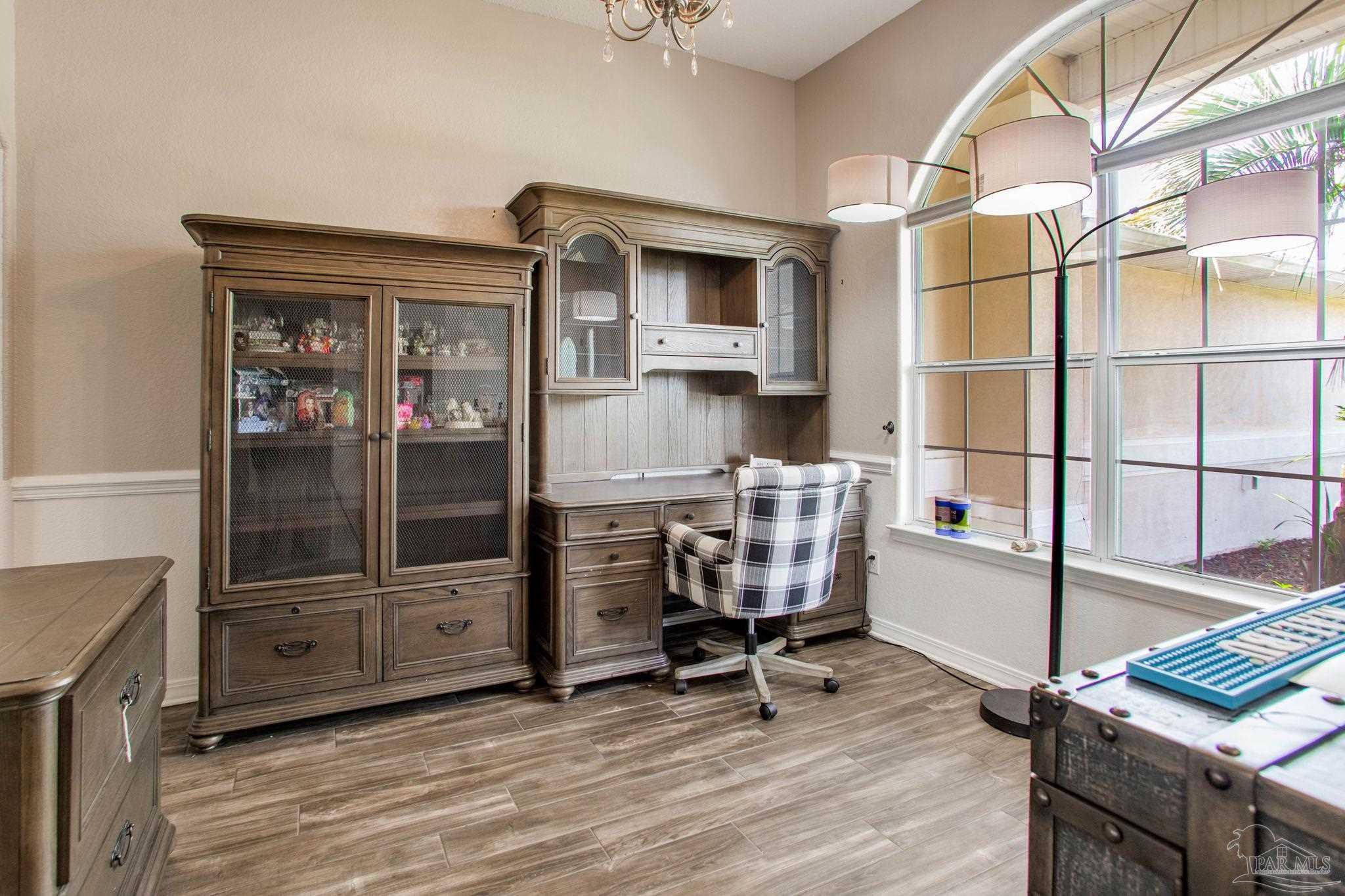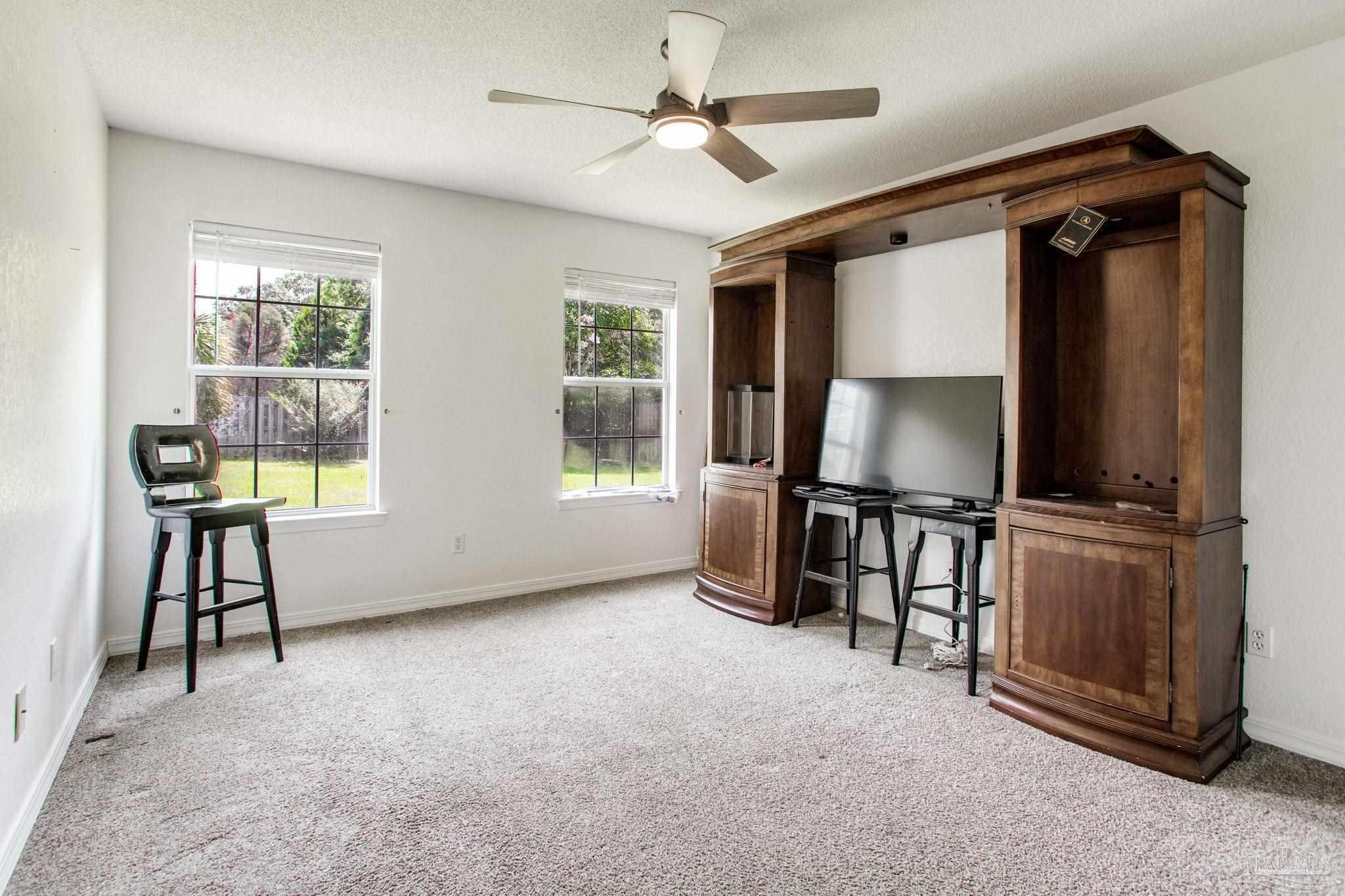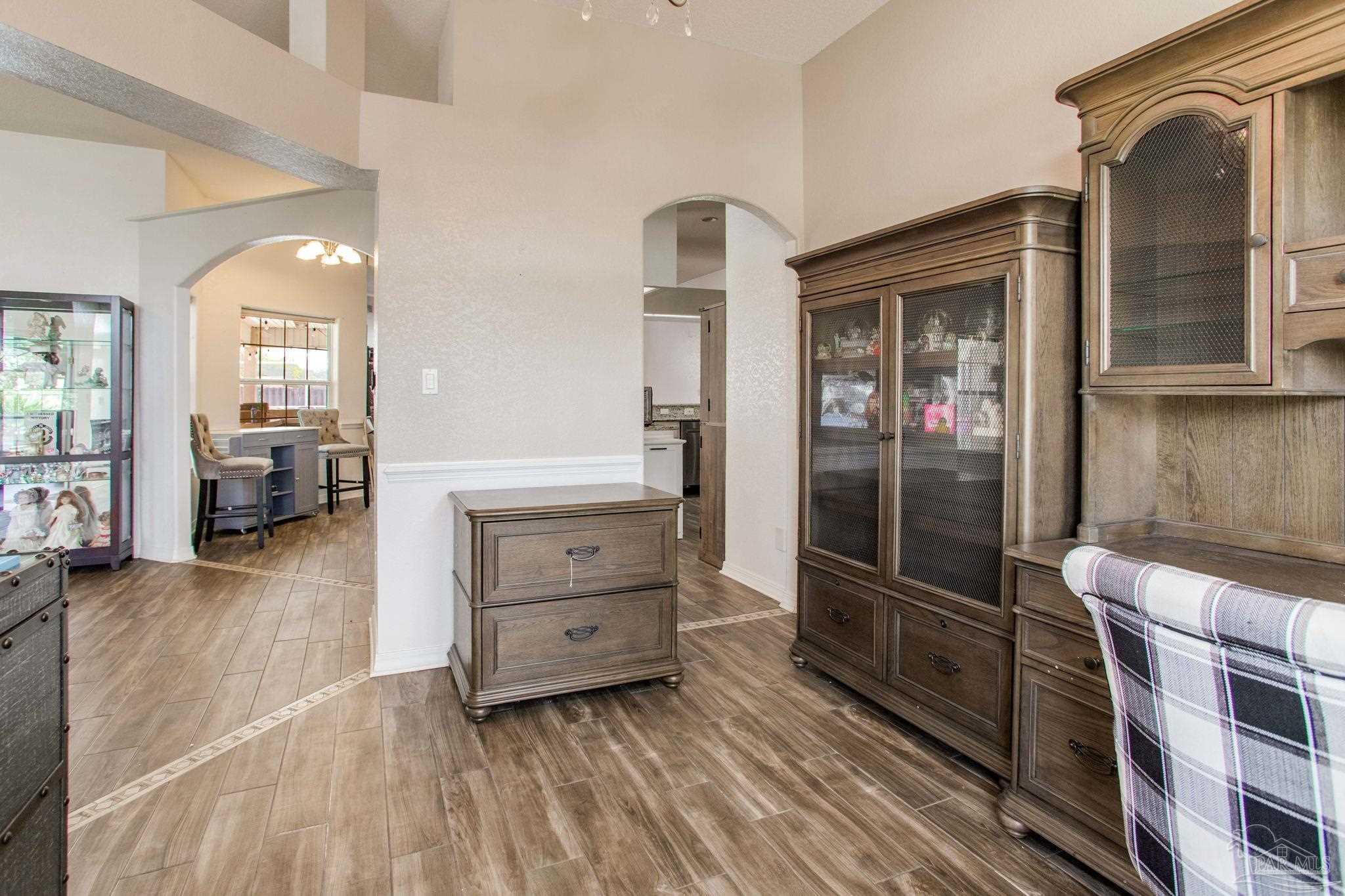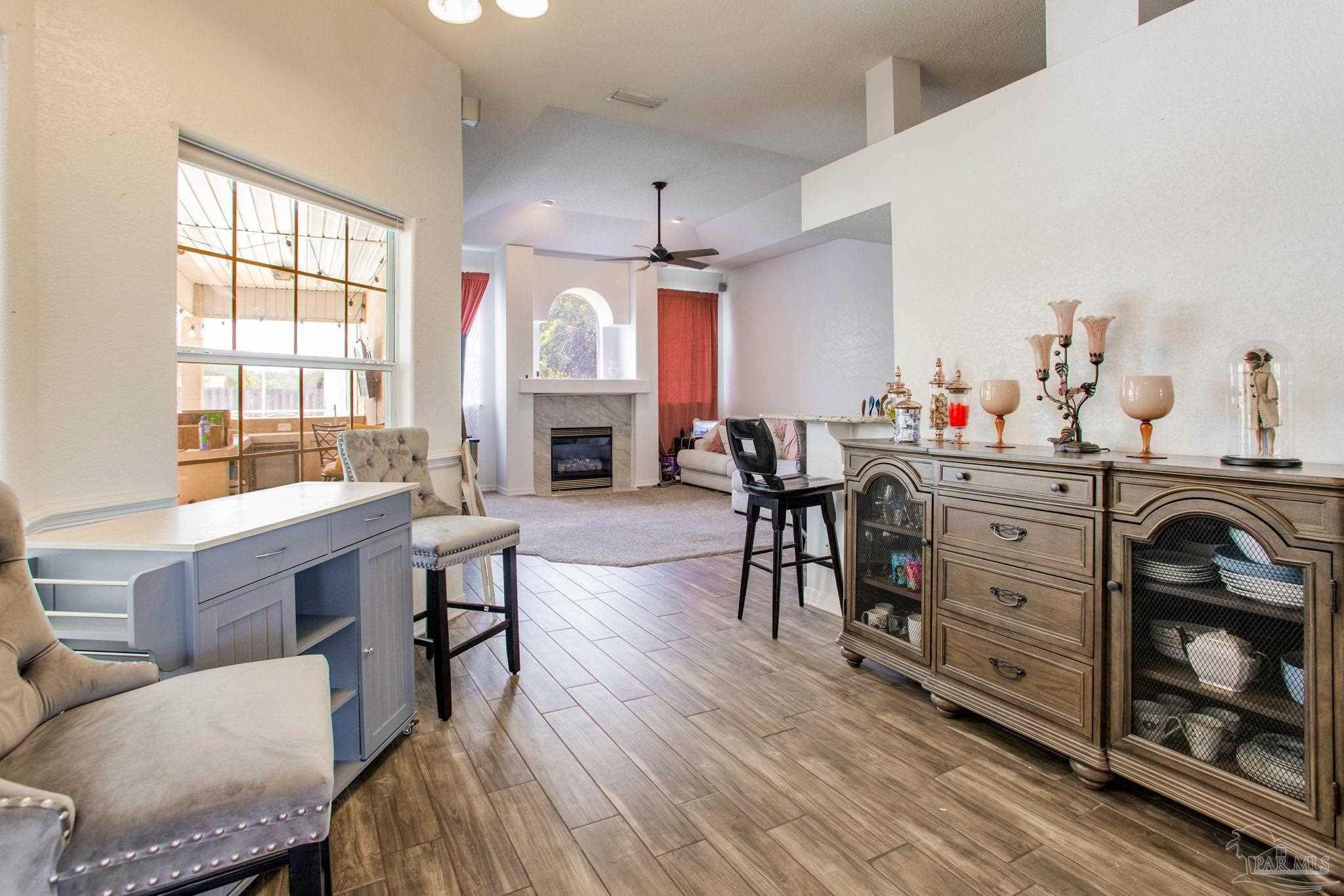 Energy-Efficient Pool Home in the Creekwood subdivision! Welcome to 8042 Mossy Creek, a beautifully maintained 3-bedroom, 2-bath home with an office tucked away in the desirable Creekwood subdivision in Northwest Pensacola. At the front of the home sits the office which can be used as a 4th bedroom if needed. This home blends modern finishes, luxurious outdoor living, and year-round energy efficiency thanks to fully paid for solar panels, keeping your power bill at or near zero. Interior Features include wood-look plank tile flooring throughout main living areas—durable, stylish, and low-maintenance. The kitchen features stainless steel appliances, gas stove, sleek granite counters, large breakfast bar and pantry. The master suite has a spacious en-suite bath with double vanities and a walk-in closet. Elegant tray ceiling. And private access to the pool area which bring in plenty of natural light. The open concept layout with high ceilings, gas fireplace, and large windows for natural light make this property feel like a home. If the inside isn't impressive enough, check out the outside! In-ground saltwater pool with screened enclosure, perfect for year-round enjoyment. Covered lanai with outdoor bar and lounging space. Fully fenced backyard with room to entertain or let pets roam freely. 3-car garage with RV parking pad, generator transfer switch, and attic storage. No need to worry about $400 to $600 power bills with this efficient home. Schedule your showing today to see it for yourself!