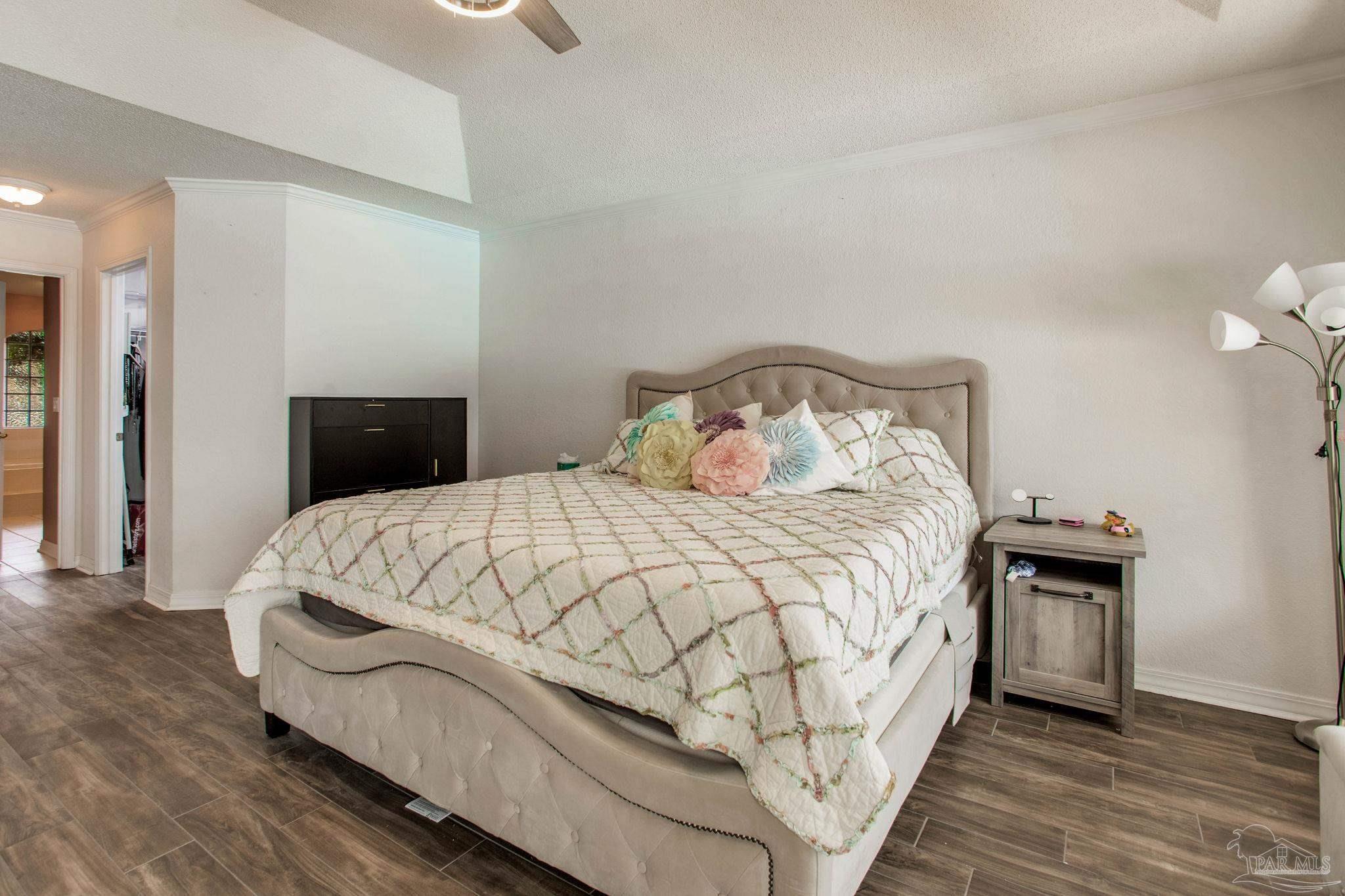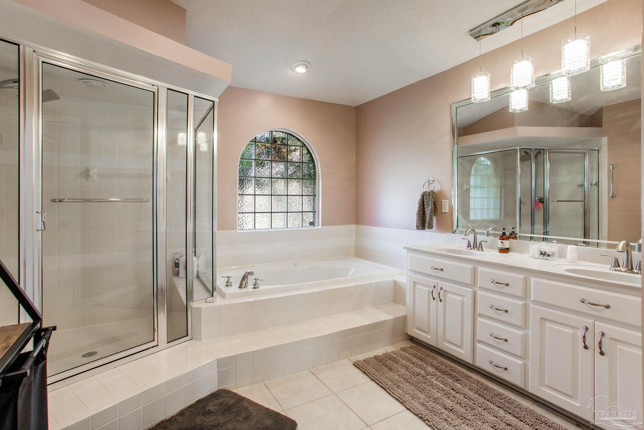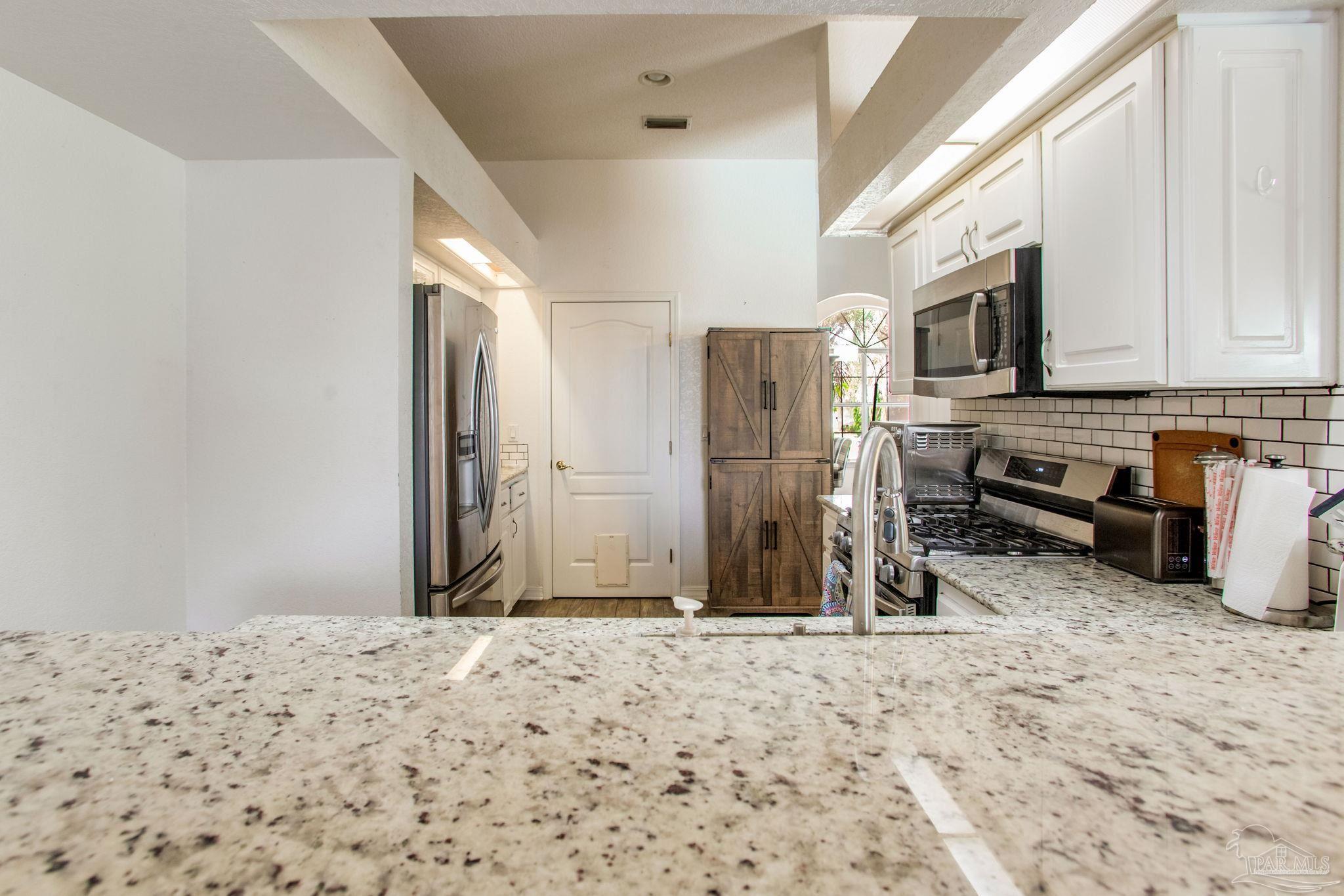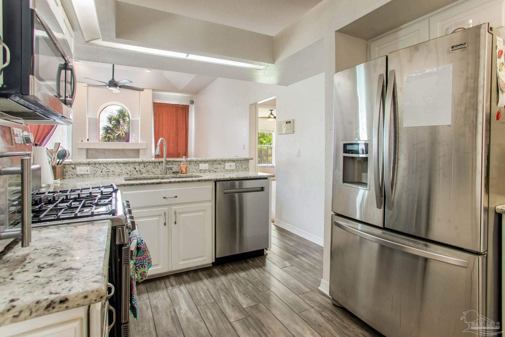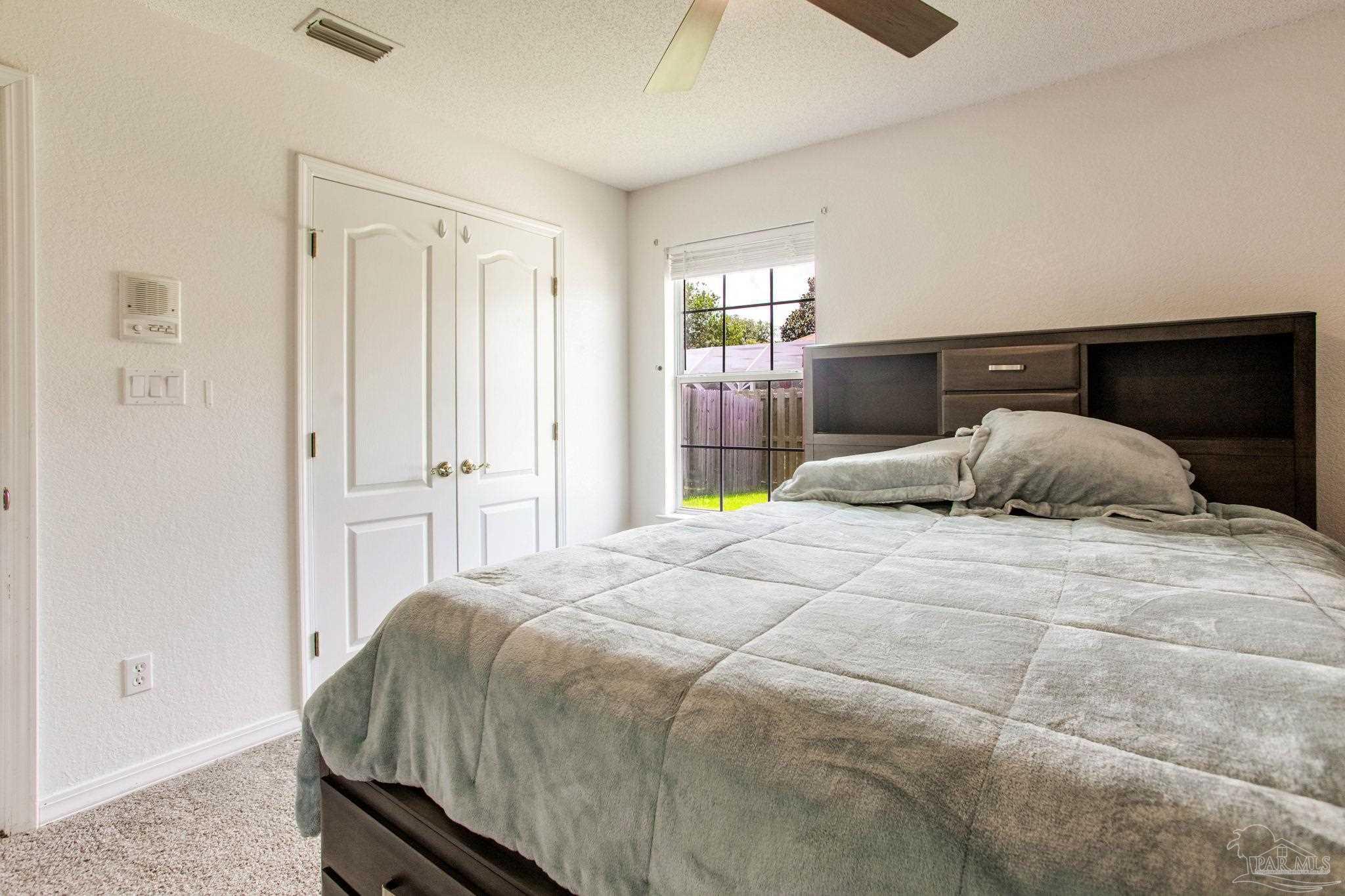 Energy-Efficient Pool Home in the Creekwood subdivision! Welcome to 8042 Mossy Creek, a beautifully maintained 3-bedroom, 2-bath home with an office tucked away in the desirable Creekwood subdivision in Northwest Pensacola. At the front of the home sits the office which can be used as a 4th bedroom if needed. This home blends modern finishes, luxurious outdoor living, and year-round energy efficiency thanks to fully paid for solar panels, keeping your power bill at or near zero. Interior Features include wood-look plank tile flooring throughout main living areas—durable, stylish, and low-maintenance. The kitchen features stainless steel appliances, gas stove, sleek granite counters, large breakfast bar and pantry. The master suite has a spacious en-suite bath with double vanities and a walk-in closet. Elegant tray ceiling. And private access to the pool area which bring in plenty of natural light. The open concept layout with high ceilings, gas fireplace, and large windows for natural light make this property feel like a home. If the inside isn't impressive enough, check out the outside! In-ground saltwater pool with screened enclosure, perfect for year-round enjoyment. Covered lanai with outdoor bar and lounging space. Fully fenced backyard with room to entertain or let pets roam freely. 3-car garage with RV parking pad, generator transfer switch, and attic storage. No need to worry about $400 to $600 power bills with this efficient home. Schedule your showing today to see it for yourself!
