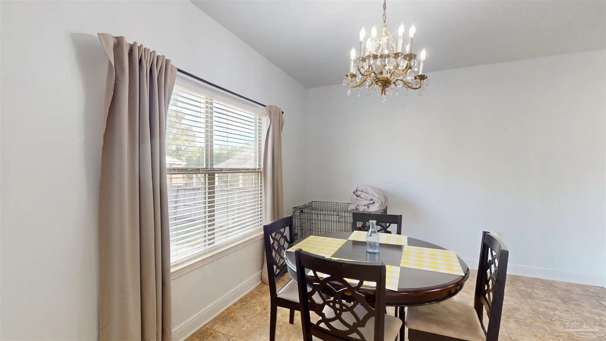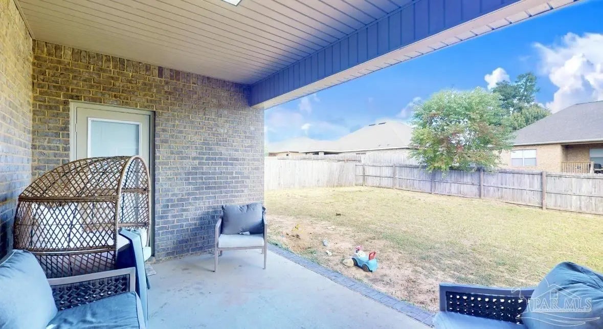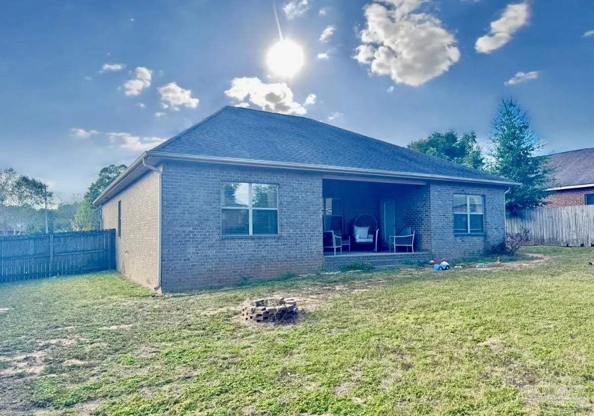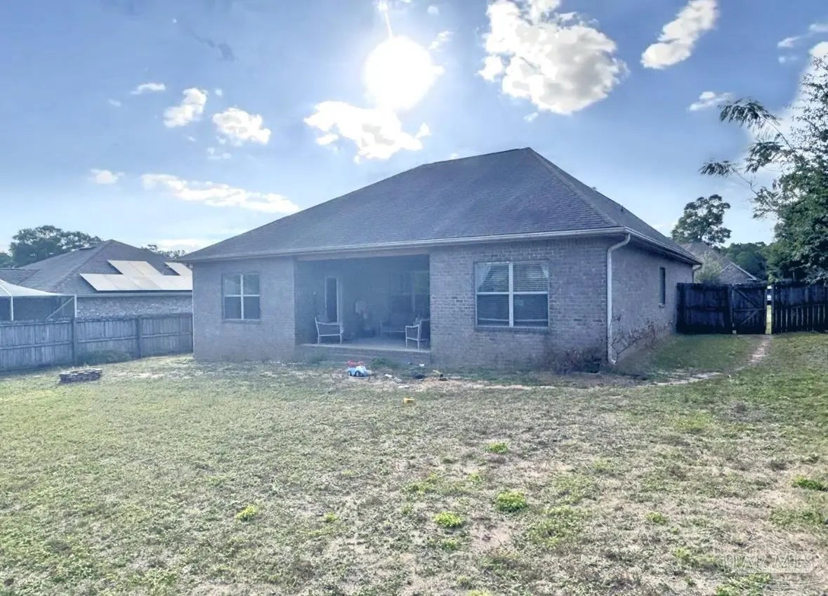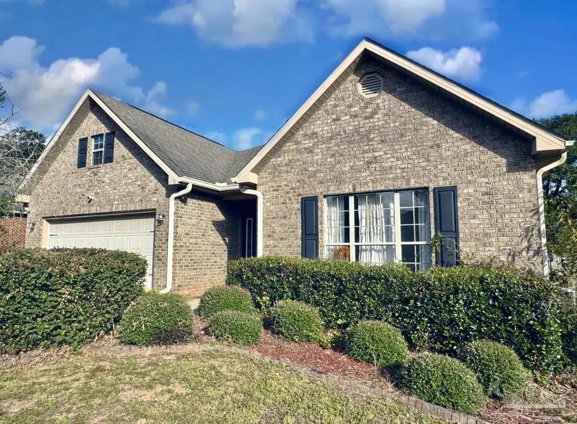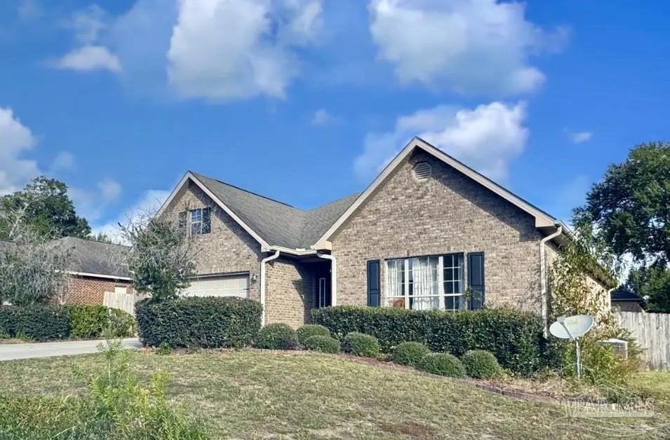 Welcome Home to this gorgeous all brick home in Rustic Ridge! This spacious split plan has ceiling heights from 9' - 13' giving a wonderful open feel! The living room features a vaulted ceiling and newly installed custom electric fireplace for those cozy nights. It is open to the kitchen, complete with hop up bar and dining area. Step into the kitchen & notice the staggered Espresso cabinets with crown molding, brushed nickle pulls and a modern glass tile backsplash! It is a chef's dream with the deep stainless steel double sink with retractable faucet & disposal, large pantry, and lots of recessed lighting. The dining area is spacious and will accommodate a large table & buffet. Step into the spacious main suite at the back of the home & enjoy a large walk-in closet and sitting area. Double windows provide lots of natural light to this space! The master bathroom features a comfort height double vanity, separate shower, garden tub, linen closet and tile flooring. The 2 additional bedrooms are at the front of the home, with the second bath also on this side of the home. Additional features include a 10 X 15 covered lanai, 6' privacy fence, and gutters. Rustic Ridge is just minutes to Whiting Field, medical facilities & major shopping. Short drive to beaches.
