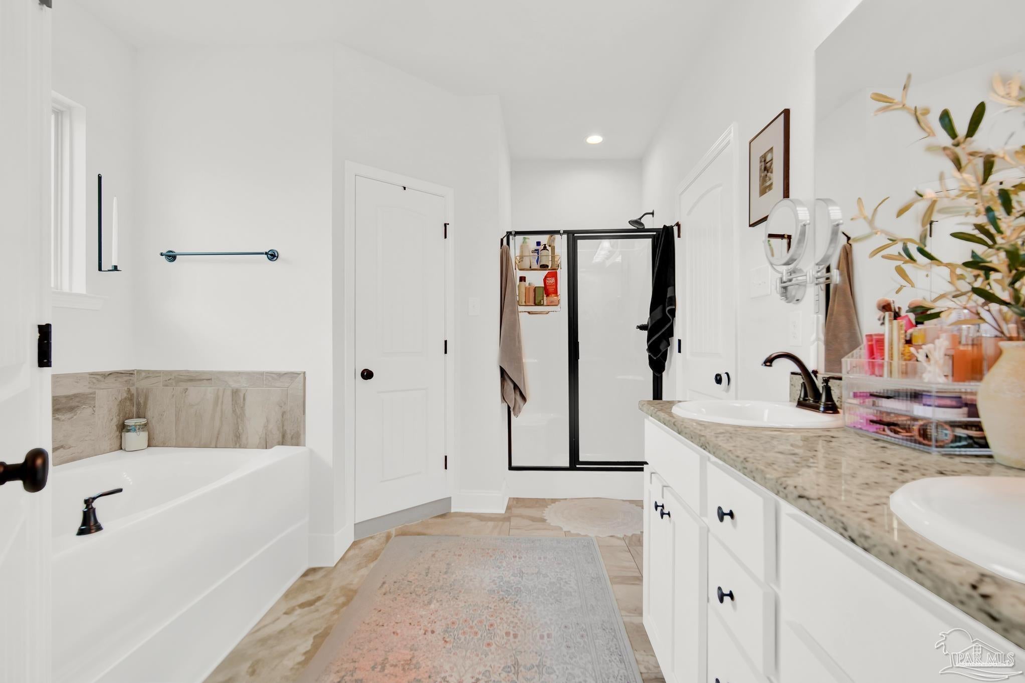 Welcome to your next chapter! This stunning 2019-built home by a top-notch reputable builder offers a spacious 3-bedroom, 2-bathroom open-concept design and an oversized master suite complete with tray ceilings, double vanity, luxurious soaking tub, separate shower, and two enormous walk-in closets. Loaded with premium upgrades and truly turnkey, this beauty boasts stainless steel appliances, gorgeous maple cabinets, slab granite countertops with under-mount sinks throughout, tile flooring in all wet areas, energy-efficient Low-E MI windows, radiant barrier roof decking, a high-efficiency Carrier HVAC with electric heat pump, 30-year architectural shingles, brick and stucco exterior, full sod and sprinkler system, gutters, a fully fenced yard, and a mini-split AC/heating system in the garage—perfect for a workshop, gym, or extra hangout space. Move-in ready and packed with features you won’t find everywhere, homes in this highly sought-after community rarely come on the market, so schedule your private showing today before it’s gone!