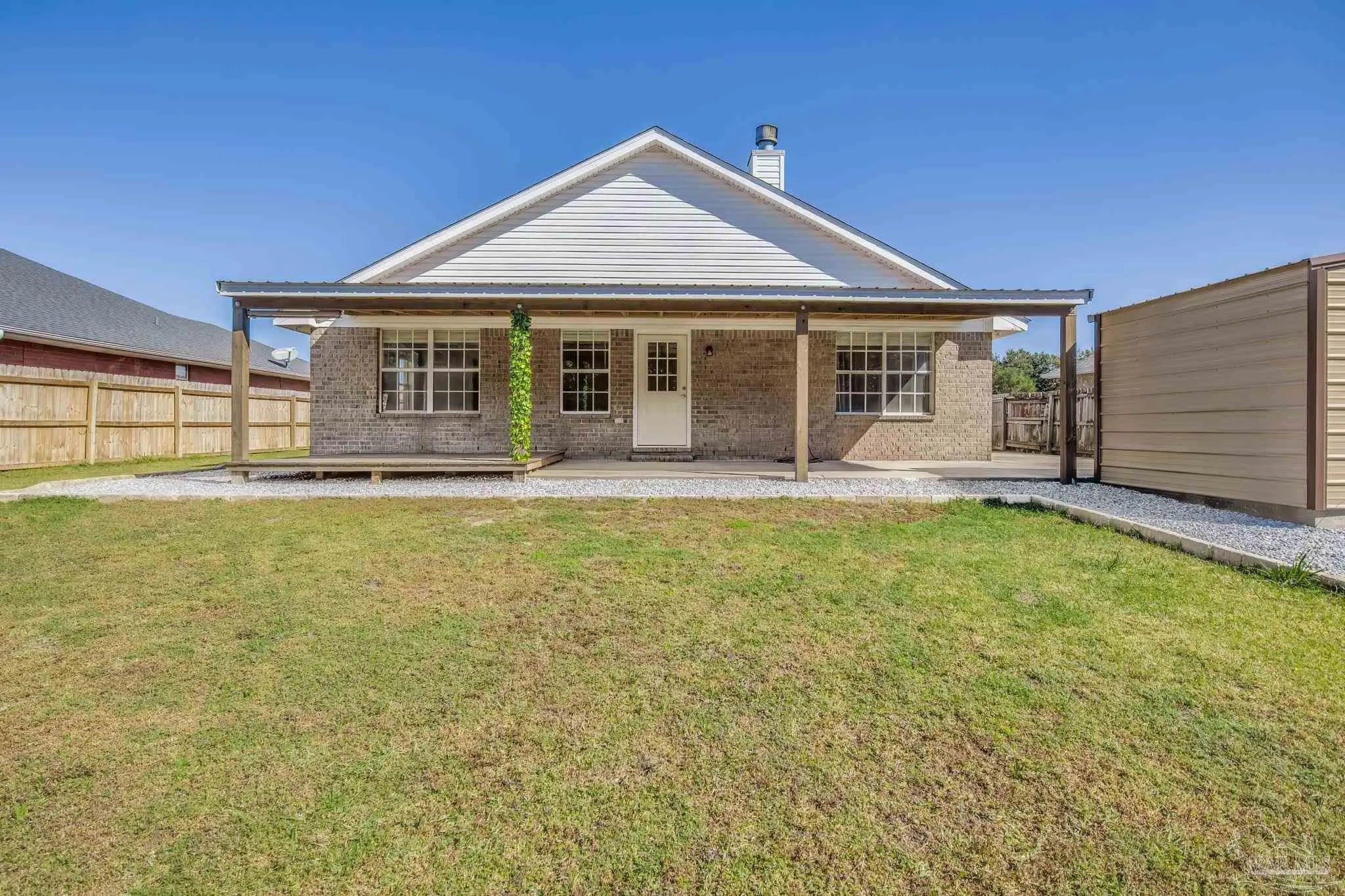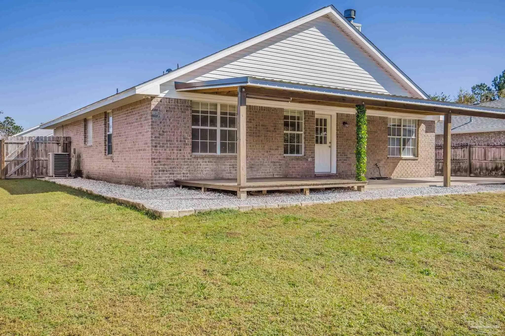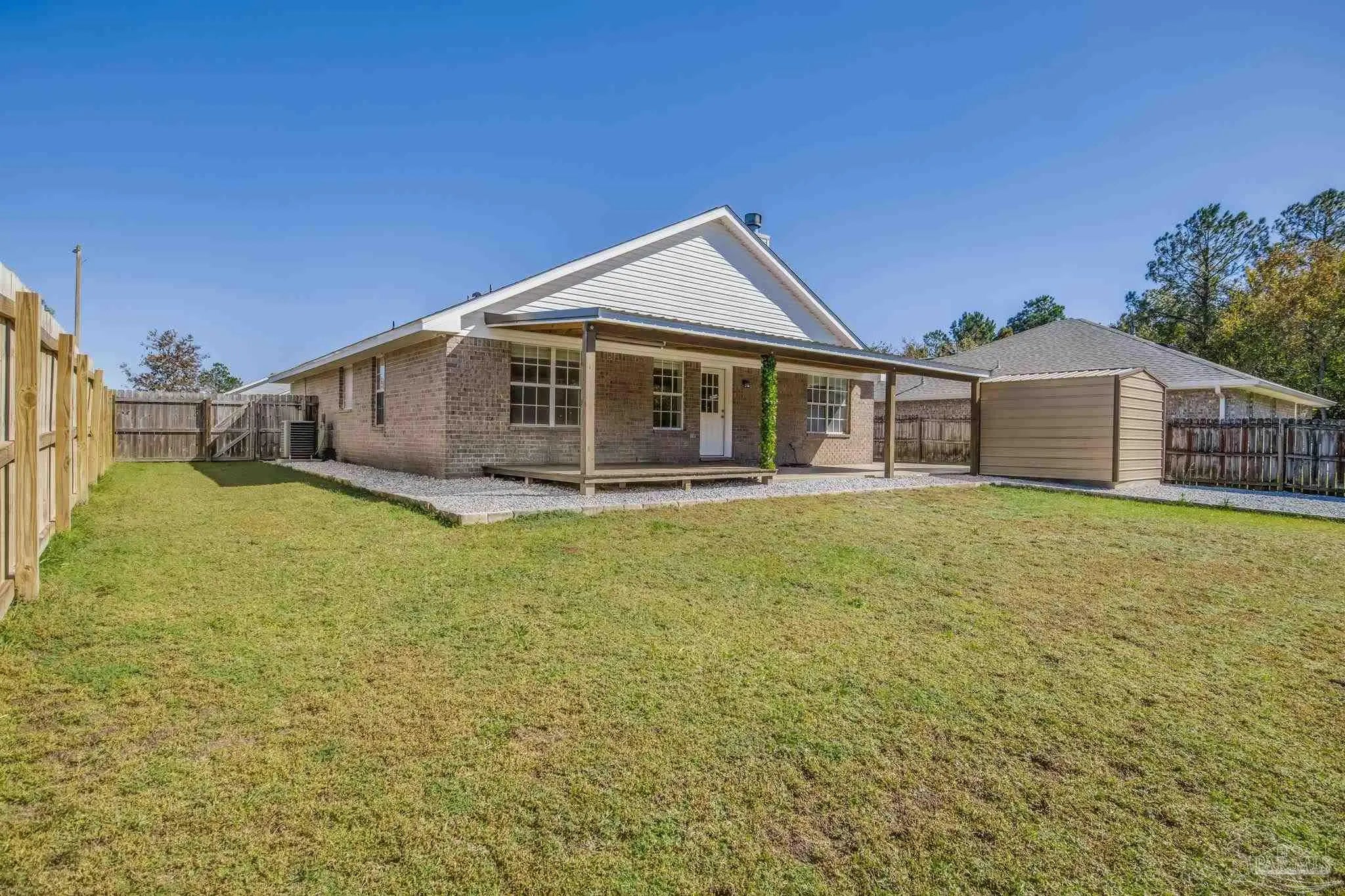 Welcome to this charming ranch-style home nestled in the heart of Jaimee's Ridge on a beautifully maintained lot offering the perfect balance of comfort, space, and location. With three bedrooms and two full baths, this thoughtfully designed home is ideal for young families or those looking to downsize without sacrificing quality or convenience. This home offers 1440 sq ft of main square footage plus a fully converted garage with a Mini split AC unit, snap lock waterproof flooring and insulated garage door equaling 420 sq ft. The garage can easily convert back for car storage or be used as a private conditioned workshop as well. From the moment you arrive, the curb appeal stands out—lush, green grass and a well-kept lawn hint at the care this property has received including a new roof that's 4 years old. Inside, stylish painted cabinetry in the kitchen and quartz countertops offer both functionality and style, anchoring a layout that’s equally suited for everyday living and weekend entertaining. Beautiful LVP flooring stretches through the home matched with vaulted ceilings and stylish features including cased windows, all new farm-style trim and shiplap accents. The main living area features a wood burning fireplace surrounded by a thoughtfully built ship lap facade that adds beauty and character. Recent updates make this home move-in ready and easy to maintain including an extended parking area, covered back porch with TV connections and a fully fenced back yard. A sprinkler system keeps the yard in pristine shape, while the converted two-car garage and backyard workshop provide plenty of space for vehicles, tools, or hobbies. Located just minutes from everything the Florida Panhandle has to offer, this home delivers peaceful living without feeling remote. If you're looking for a beautiful, well maintained home that offers convenient access to all that the panhandle has to offer, this one is not to be missed!