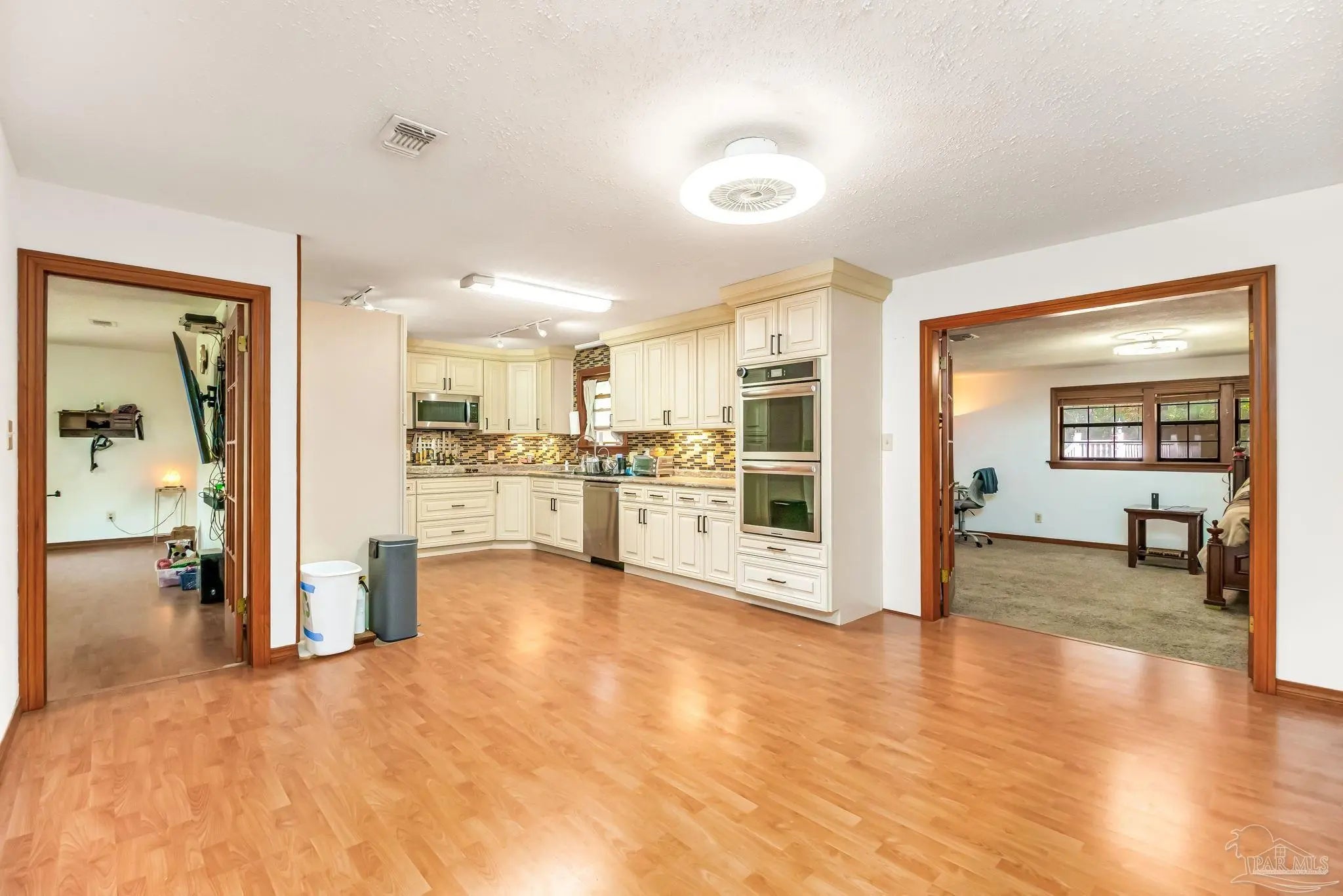 Welcome to this charming 4-bedroom, 2-bath brick home offering 2,179 square feet of comfortable living on 1.7 acres in the heart of Pace. Surrounded by gorgeous century-old oaks, this property blends privacy, space, and modern updates with everyday convenience. Inside, you’ll find a bright, welcoming layout with both a large family room and a flexible additional living area perfect for an office, playroom, or media space. The spacious, stylish kitchen features stainless steel appliances, updated cabinetry, and plenty of room for cooking and gathering. Outside, the expansive, beautiful yard offers endless room to spread out, and the oversized detached garage provides excellent storage and workshop potential. All just minutes from shopping, restaurants, and a short drive to Pensacola Beach. Schedule your showing today!