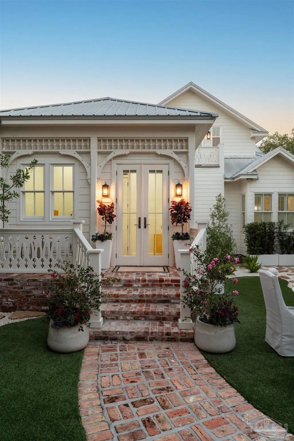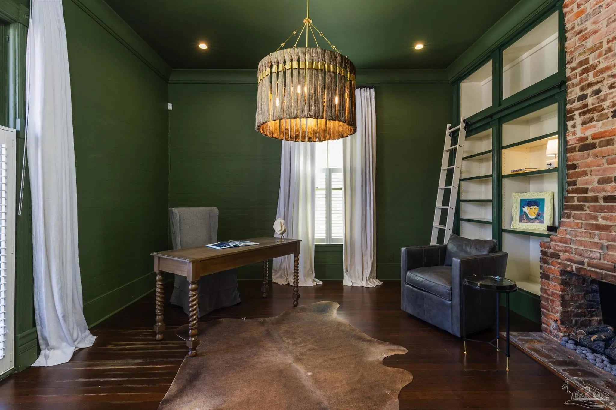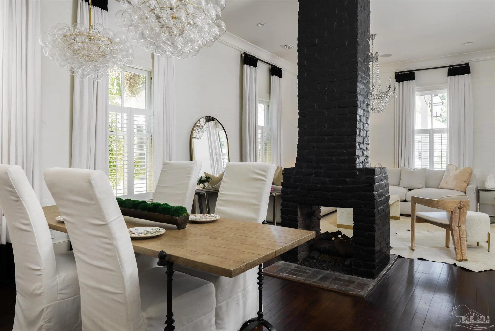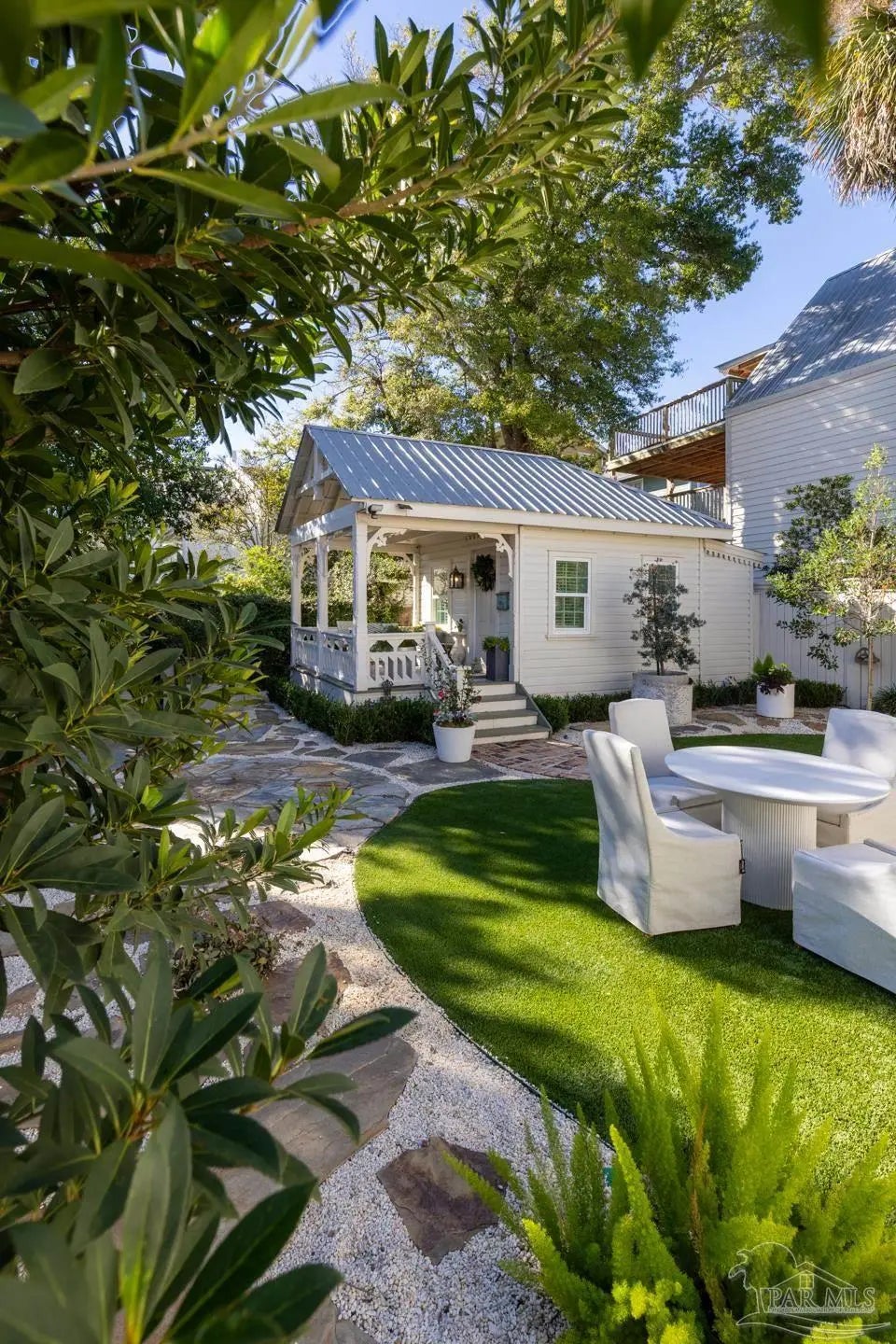 This beautifully restored Victorian home blends timeless architecture with modern luxury in one of downtown Pensacola’s most desirable neighborhoods. This residence offers a rare opportunity to own a piece of Pensacola’s history while enjoying modern comfort and design. Every detail has been thoughtfully updated, preserving the home’s character while adding designer finishes throughout. Ideally located just steps from downtown Pensacola’s festivals, restaurants, and boutique shops, it offers the perfect blend of history, sophistication, and walkable coastal living on a quiet residential street with private parking. Rich hardwood floors, tall ceilings, and designer lighting highlight its craftsmanship. A remodeled kitchen offers ample counter space and a main focal point of the home. The family room centers around a beautiful fireplace, creating a warm focal point that complements the home’s charm. The space features Sub-Zero refrigerator drawers, a wine cooler, and beautifully updated fixtures. A hidden bookcase off the office leads to the first-floor primary suite, adding a distinctive architectural touch with historic intrigue. The primary suite includes dual walk-in closets and a luxurious bath with a soaking tub, double vanities, and an oversized walk-in shower. Upstairs are three spacious bedrooms with custom walk-in closets, a large storage closet, and a secondary living area with a wet bar that opens to a balcony overlooking the backyard and bay. A private guest home in the backyard offers its own bath and flexible living space for guests or a studio. The courtyard-style yard connects both homes, creating a serene outdoor retreat framed by lush landscaping and privacy fencing.