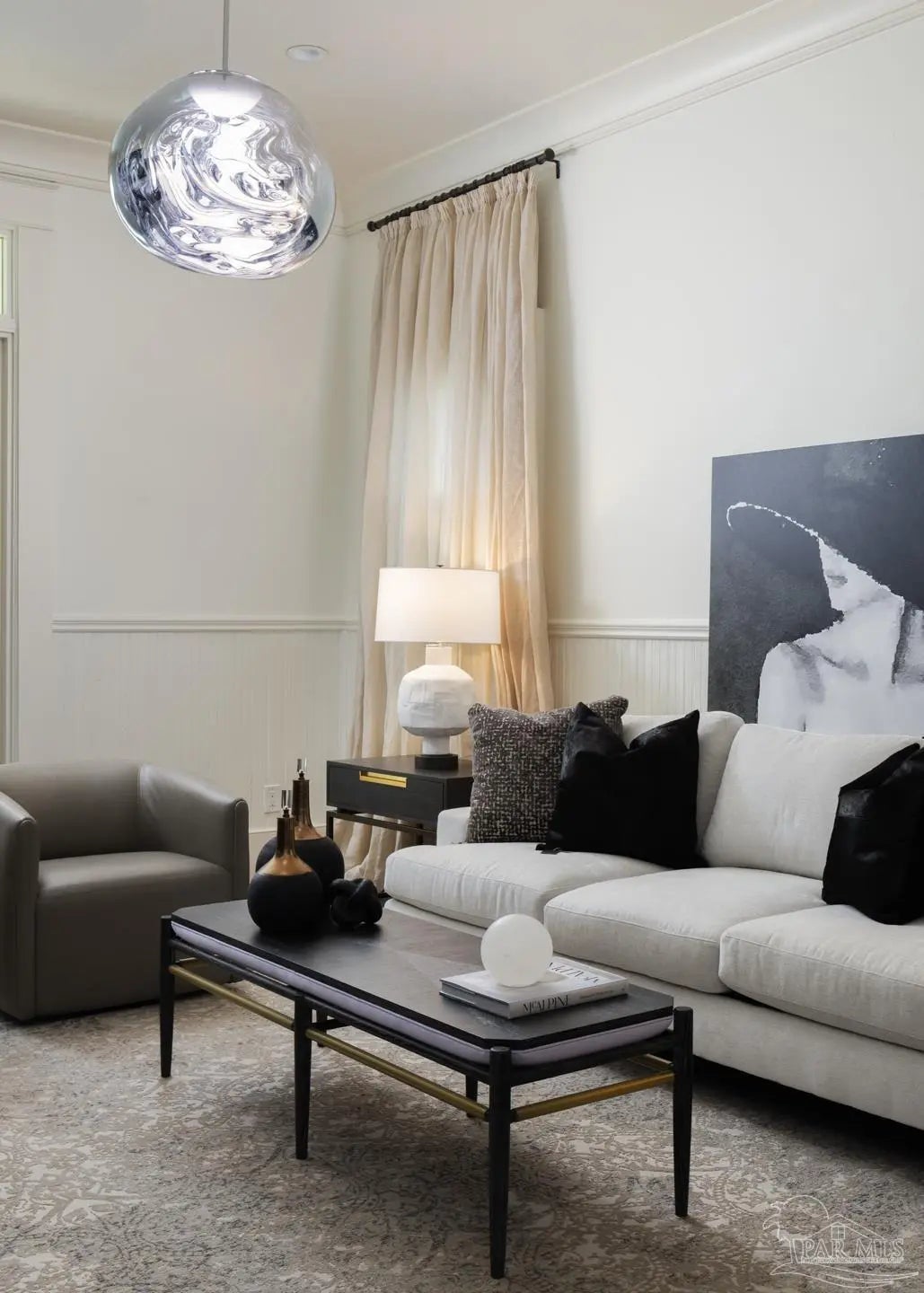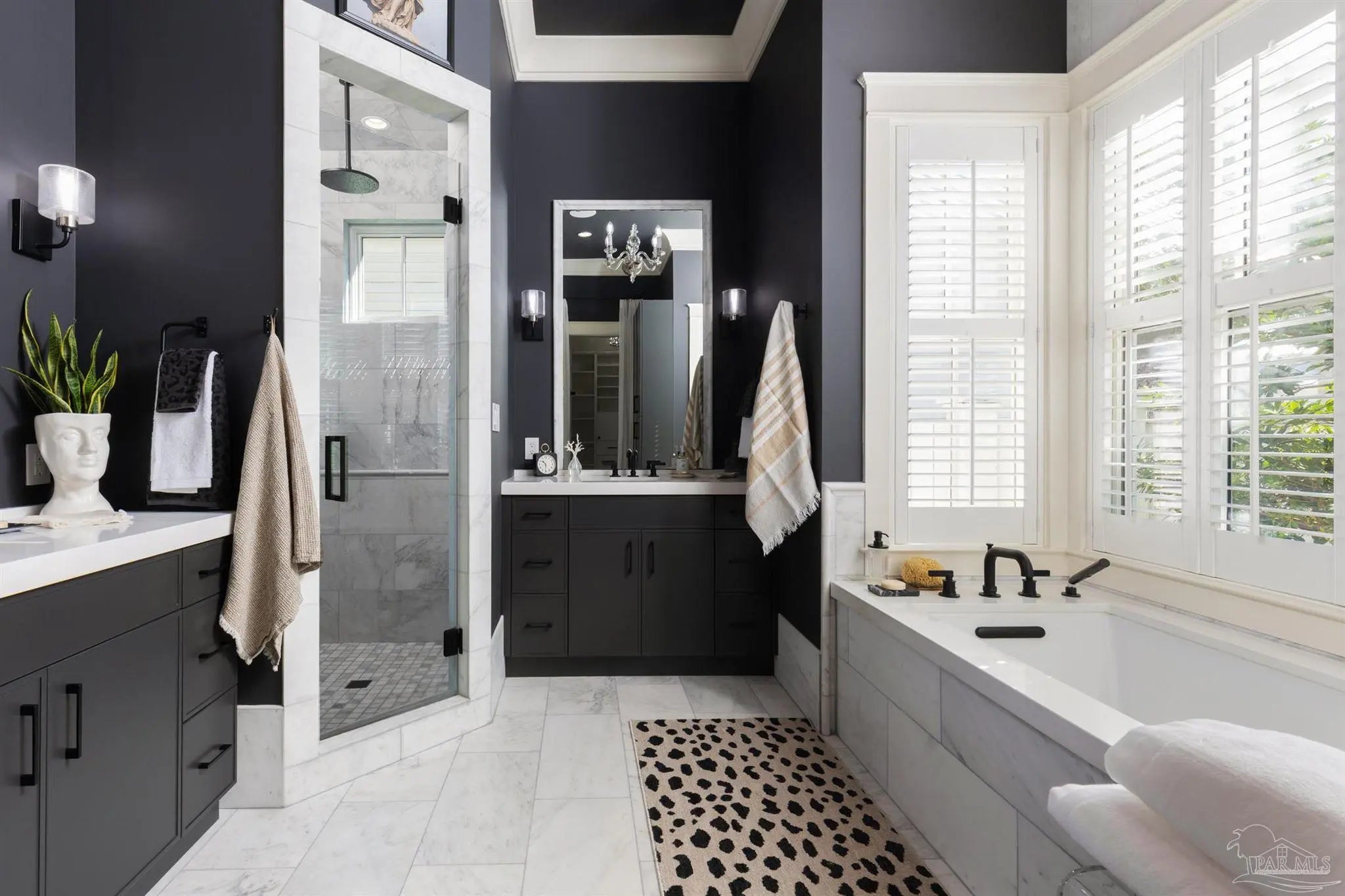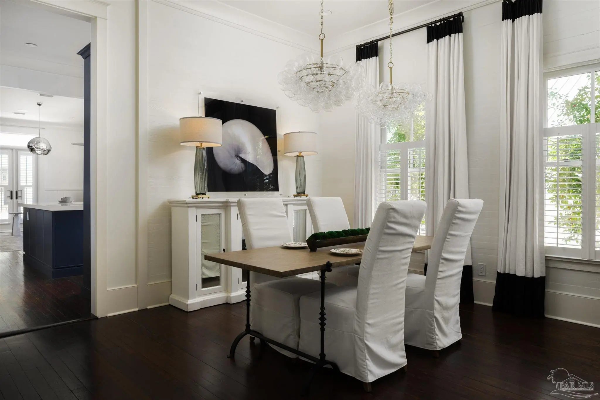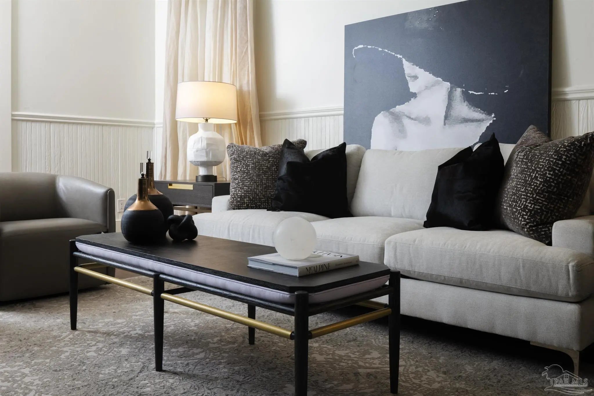 This beautifully restored Victorian home blends timeless architecture with modern luxury in one of downtown Pensacola’s most desirable neighborhoods. This residence offers a rare opportunity to own a piece of Pensacola’s history while enjoying modern comfort and design. Every detail has been thoughtfully updated, preserving the home’s character while adding designer finishes throughout. Ideally located just steps from downtown Pensacola’s festivals, restaurants, and boutique shops, it offers the perfect blend of history, sophistication, and walkable coastal living on a quiet residential street with private parking. Rich hardwood floors, tall ceilings, and designer lighting highlight its craftsmanship. A remodeled kitchen offers ample counter space and a main focal point of the home. The family room centers around a beautiful fireplace, creating a warm focal point that complements the home’s charm. The space features Sub-Zero refrigerator drawers, a wine cooler, and beautifully updated fixtures. A hidden bookcase off the office leads to the first-floor primary suite, adding a distinctive architectural touch with historic intrigue. The primary suite includes dual walk-in closets and a luxurious bath with a soaking tub, double vanities, and an oversized walk-in shower. Upstairs are three spacious bedrooms with custom walk-in closets, a large storage closet, and a secondary living area with a wet bar that opens to a balcony overlooking the backyard and bay. A private guest home in the backyard offers its own bath and flexible living space for guests or a studio. The courtyard-style yard connects both homes, creating a serene outdoor retreat framed by lush landscaping and privacy fencing.