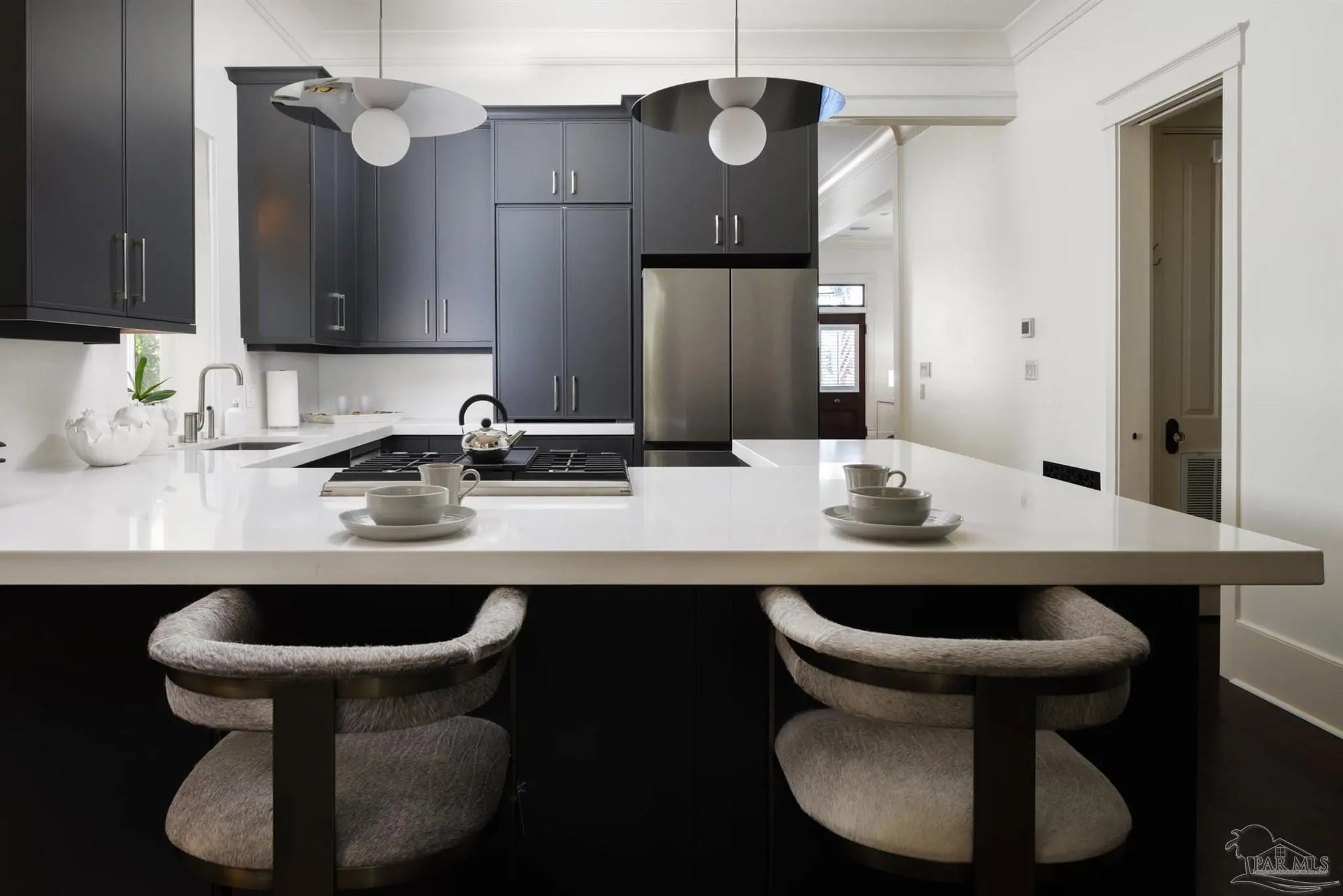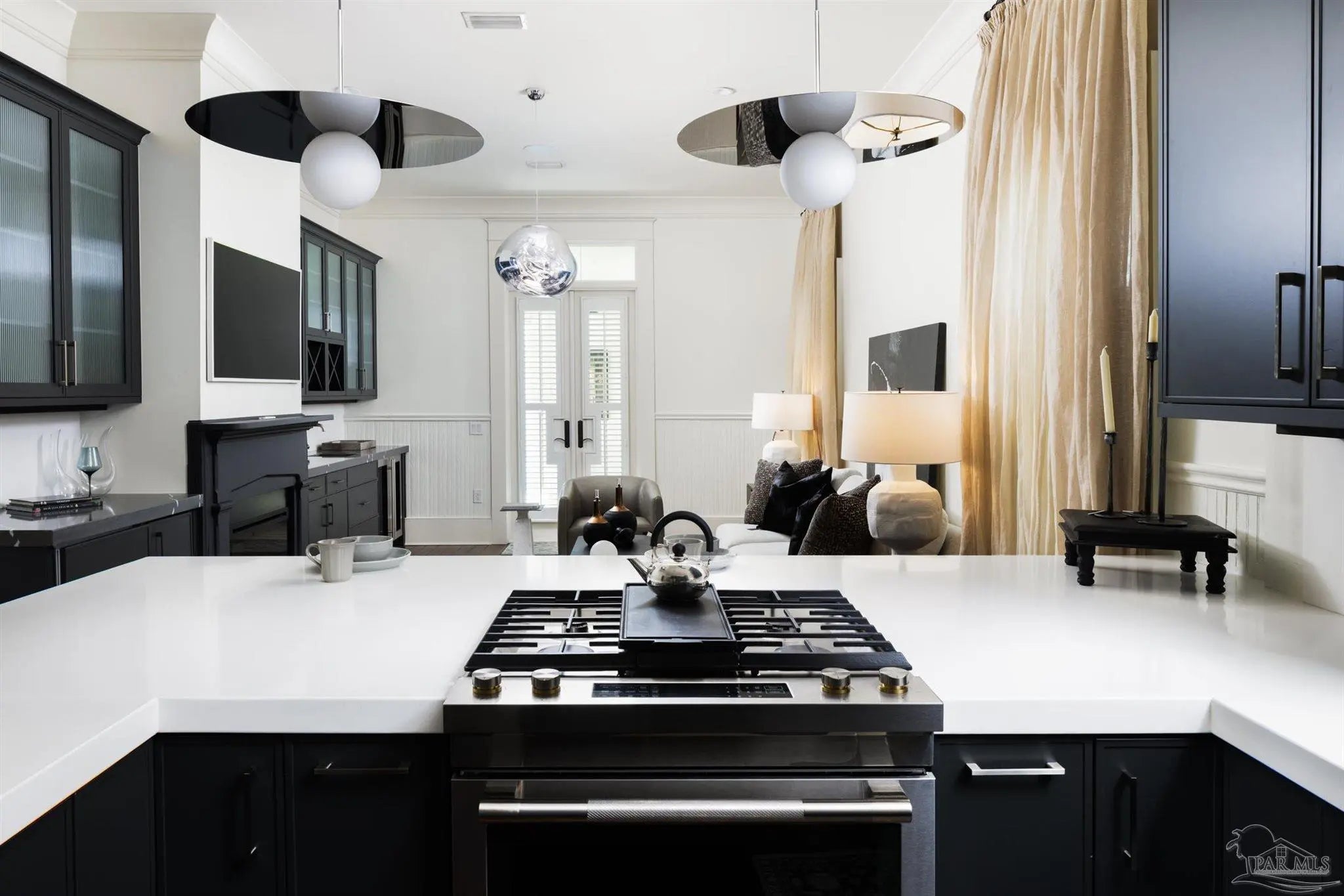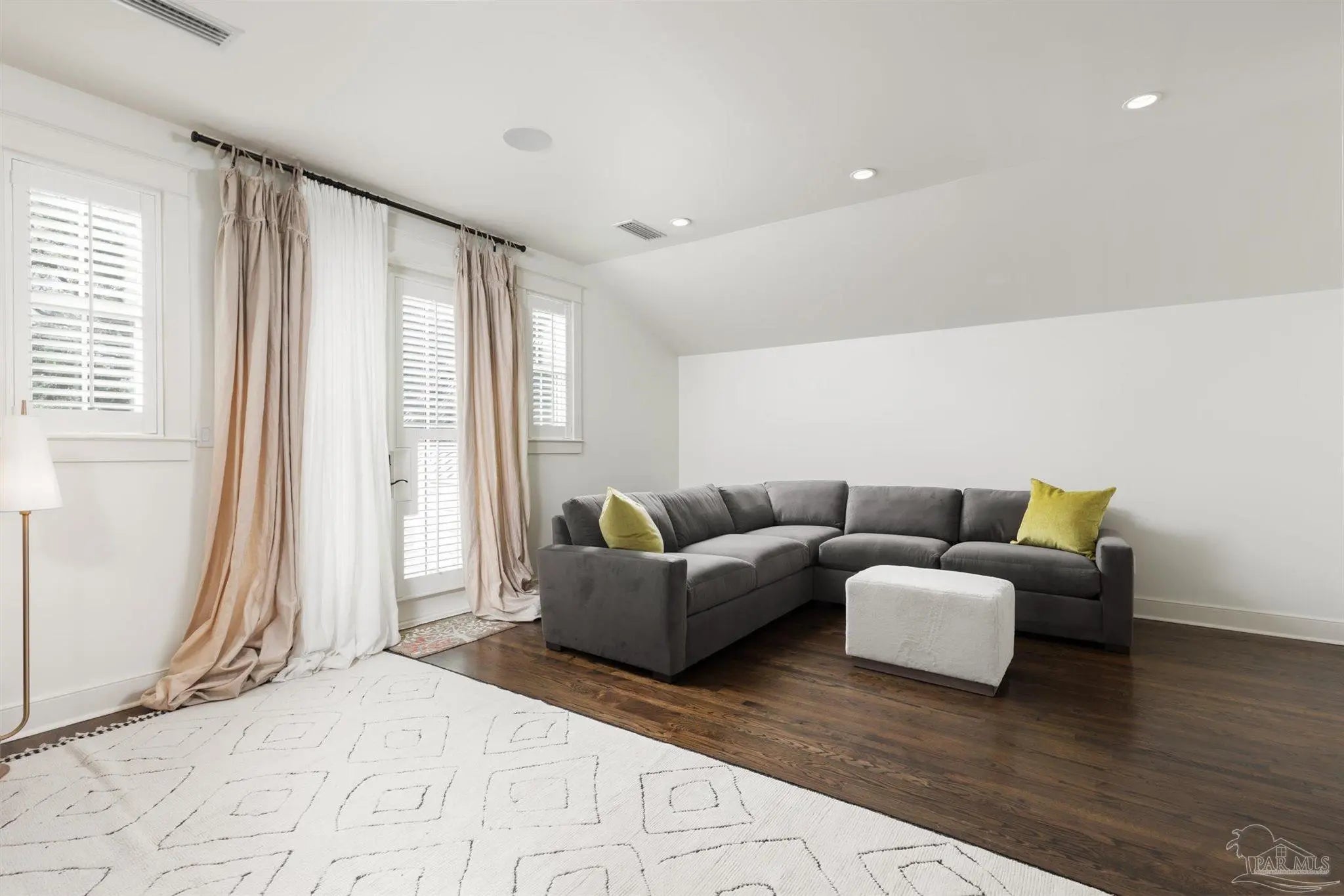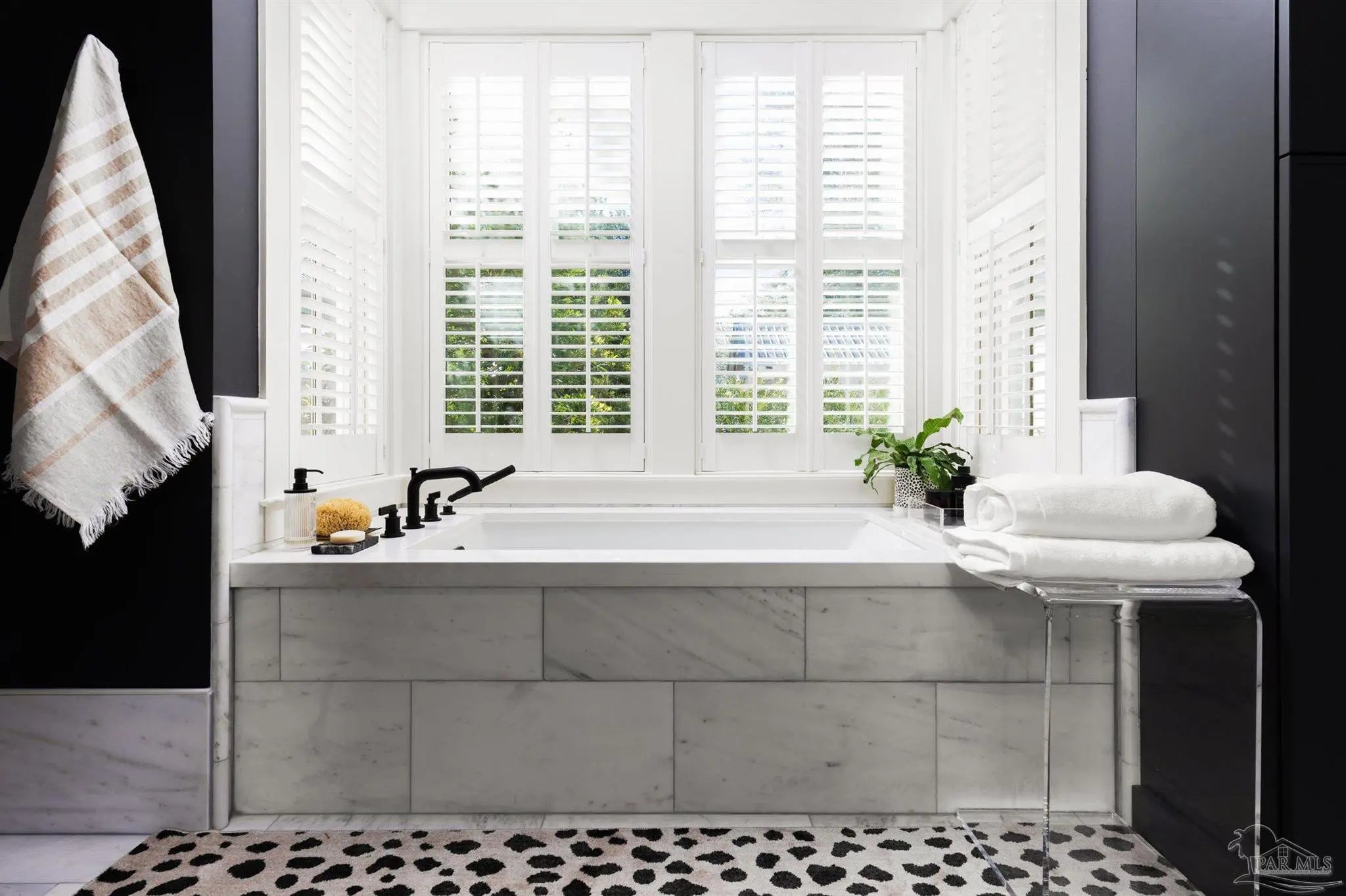 This beautifully restored Victorian home blends timeless architecture with modern luxury in one of downtown Pensacola’s most desirable neighborhoods. This residence offers a rare opportunity to own a piece of Pensacola’s history while enjoying modern comfort and design. Every detail has been thoughtfully updated, preserving the home’s character while adding designer finishes throughout. Ideally located just steps from downtown Pensacola’s festivals, restaurants, and boutique shops, it offers the perfect blend of history, sophistication, and walkable coastal living on a quiet residential street with private parking. Rich hardwood floors, tall ceilings, and designer lighting highlight its craftsmanship. A remodeled kitchen offers ample counter space and a main focal point of the home. The family room centers around a beautiful fireplace, creating a warm focal point that complements the home’s charm. The space features Sub-Zero refrigerator drawers, a wine cooler, and beautifully updated fixtures. A hidden bookcase off the office leads to the first-floor primary suite, adding a distinctive architectural touch with historic intrigue. The primary suite includes dual walk-in closets and a luxurious bath with a soaking tub, double vanities, and an oversized walk-in shower. Upstairs are three spacious bedrooms with custom walk-in closets, a large storage closet, and a secondary living area with a wet bar that opens to a balcony overlooking the backyard and bay. A private guest home in the backyard offers its own bath and flexible living space for guests or a studio. The courtyard-style yard connects both homes, creating a serene outdoor retreat framed by lush landscaping and privacy fencing.