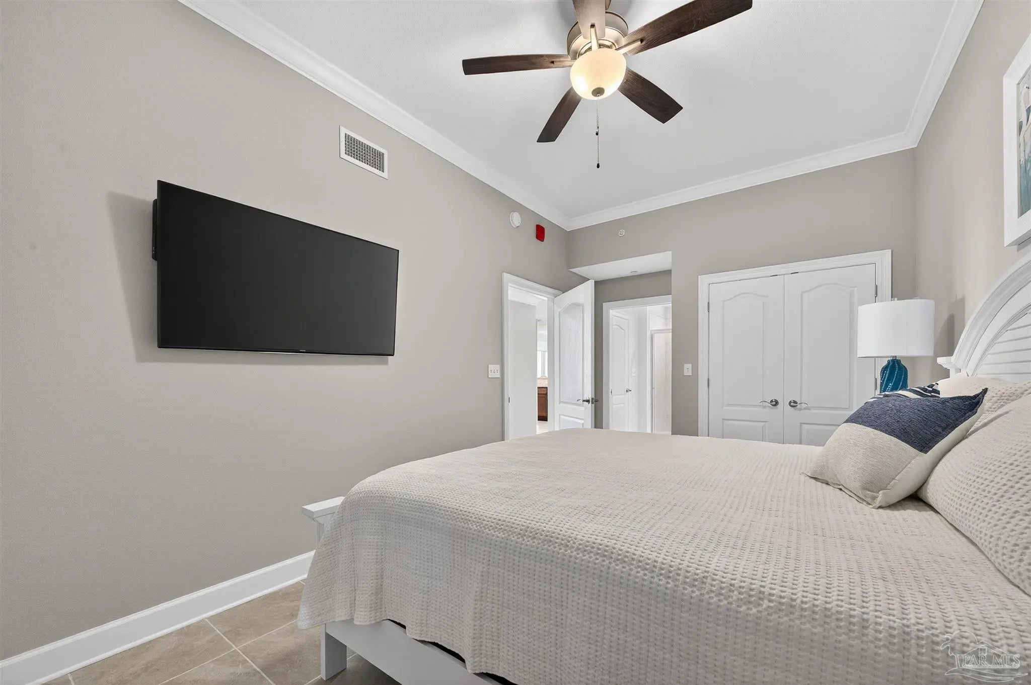 - Baseboards, Ceiling Fan(s), Crown Molding, High Ceilings