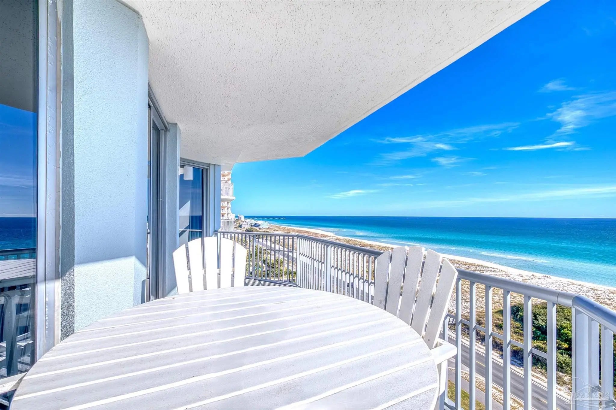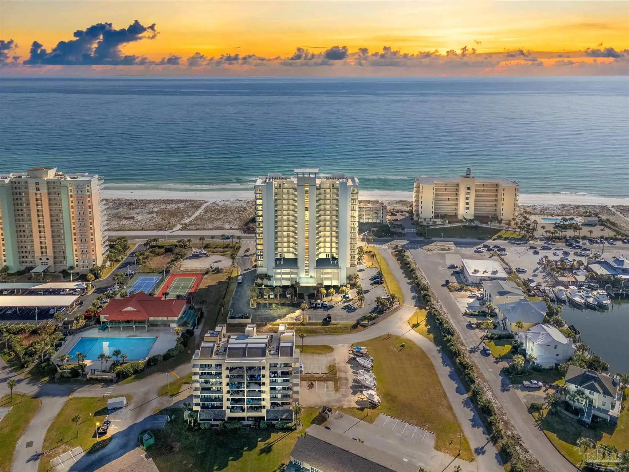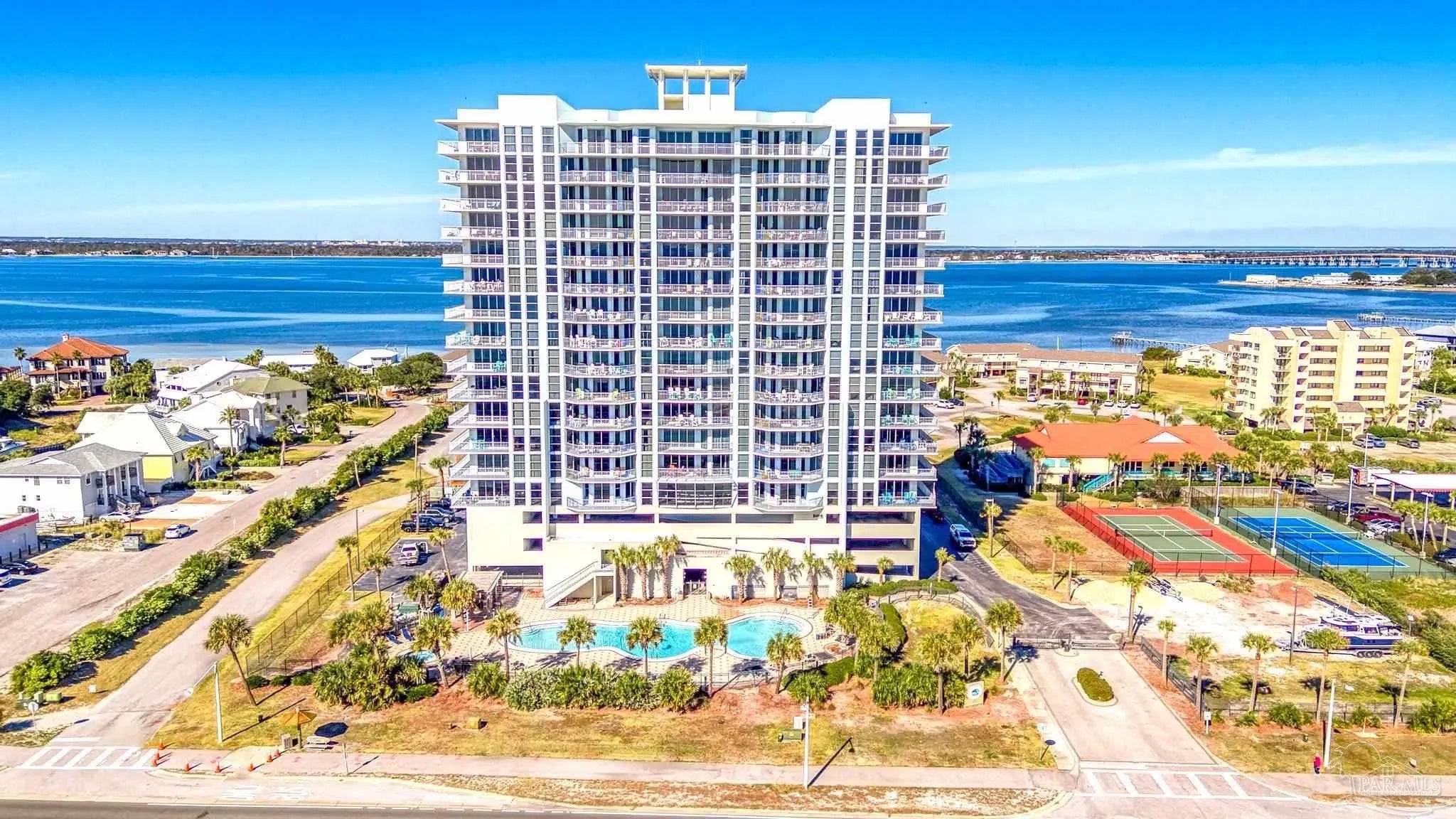 Wake Up to Coastal Bliss: Luxurious 10th-Floor Condo at Emerald Dolphin Wake up to breathtaking sunrises and unwind with stunning sunsets from this 10th-floor condo in the prestigious Emerald Dolphin community. Enjoy panoramic views of the Gulf of Mexico where dolphins play, eagles soar, and you’ll have front-row seats to the iconic Blue Angels Air Show. These gorgeous Gulf views extend seamlessly into the kitchen, living room, dining area, and bedrooms, while the front balcony offers additional Sound views. This spacious 2-bedroom, 2-bath residence is designed for comfort and elegance. The master suite features dual vanities, a jetted tub, separate shower, walk-in closet, and 9-foot ceilings. Enjoy the timeless sophistication of neutral paint tones, solid-surface countertops, and brand-new luxury flooring throughout, adding a fresh coastal-modern feel to every room. Sold fully furnished and with a projected rental income of $85,000+ annually, this property is ideal as a luxurious beach retreat or high-performing investment. Residents enjoy resort-style amenities including a sparkling pool, hot tub, fitness center, and secure gated access. Added conveniences include covered parking, climate-controlled storage, and direct access to the sugar-white sands and emerald waters of the Gulf. Built in 2006, Emerald Dolphin is one of Pensacola Beach’s newer developments, and 2024 renovations have elevated its appeal even further—with a resurfaced and repainted exterior, new roof, upgraded windows and doors, resurfaced pool and garage, and enhanced exterior lighting. This move-in-ready condo perfectly blends luxury, convenience, and investment potential.