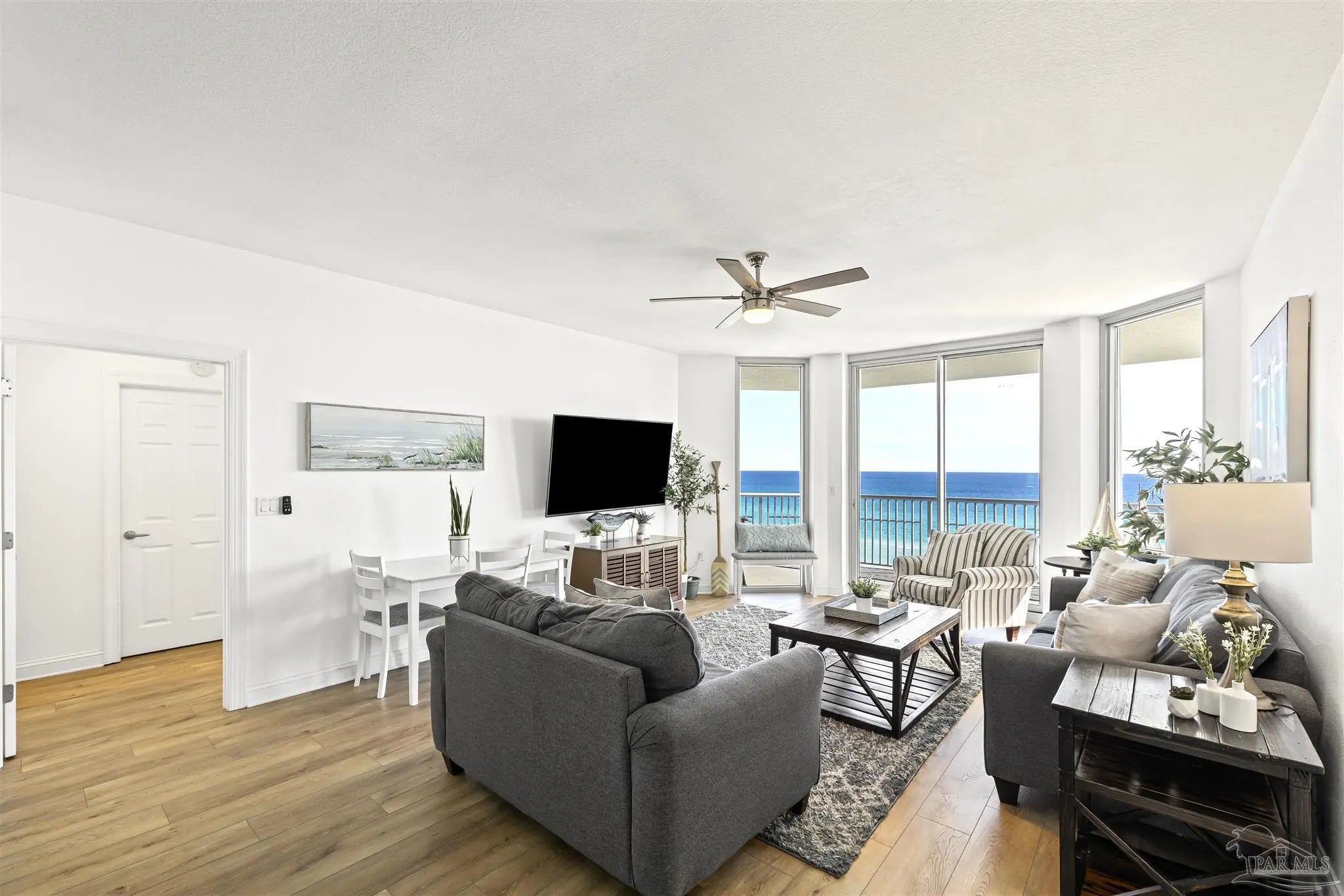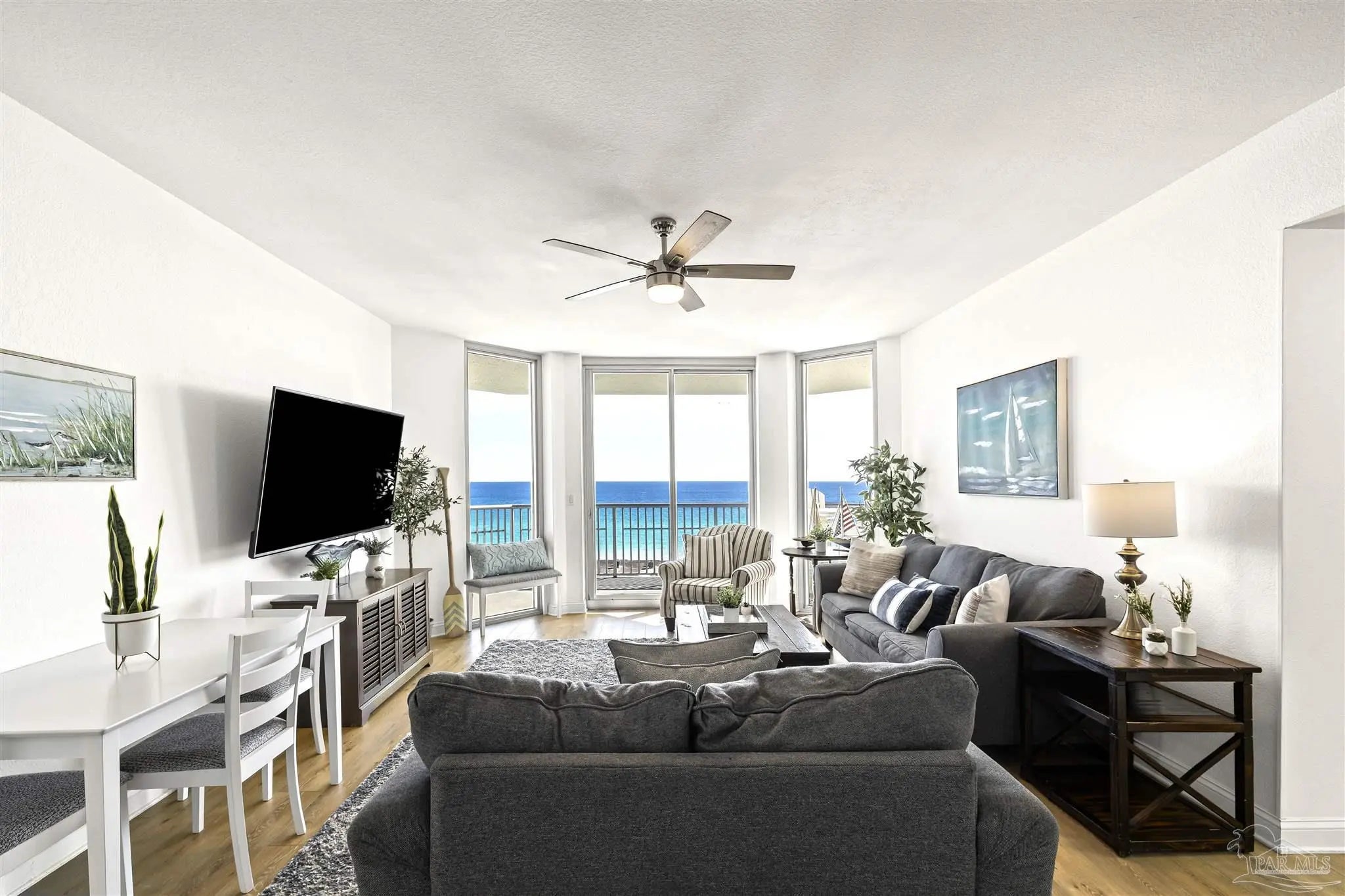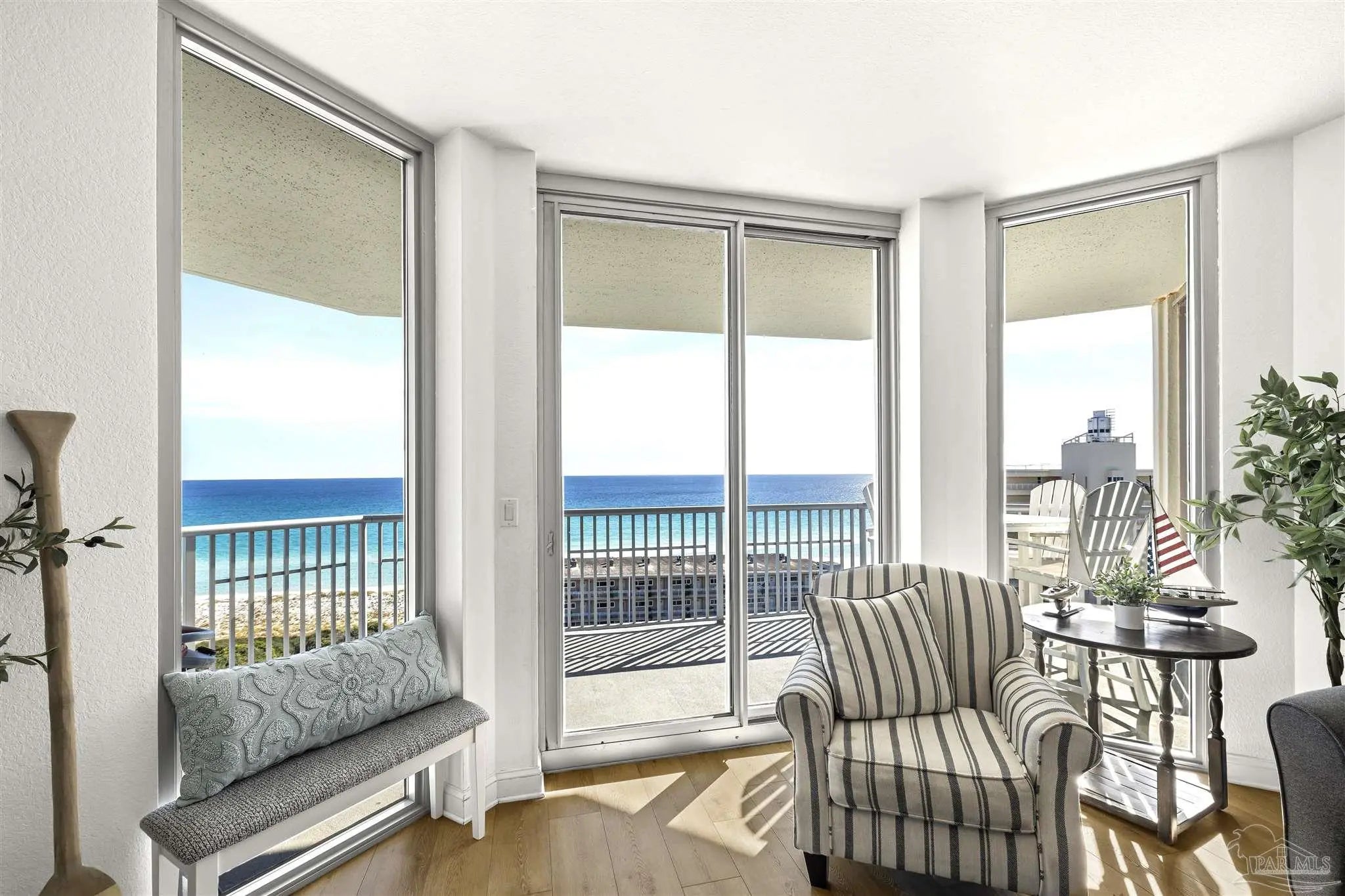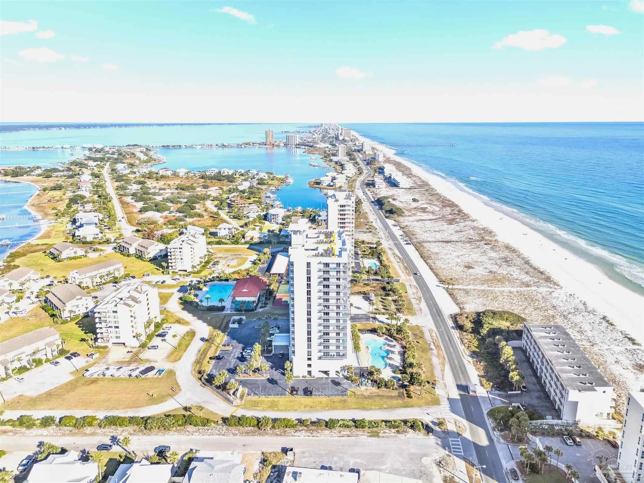 Wake Up to Coastal Bliss: Luxurious 10th-Floor Condo at Emerald Dolphin Wake up to breathtaking sunrises and unwind with stunning sunsets from this 10th-floor condo in the prestigious Emerald Dolphin community. Enjoy panoramic views of the Gulf of Mexico where dolphins play, eagles soar, and you’ll have front-row seats to the iconic Blue Angels Air Show. These gorgeous Gulf views extend seamlessly into the kitchen, living room, dining area, and bedrooms, while the front balcony offers additional Sound views. This spacious 2-bedroom, 2-bath residence is designed for comfort and elegance. The master suite features dual vanities, a jetted tub, separate shower, walk-in closet, and 9-foot ceilings. Enjoy the timeless sophistication of neutral paint tones, solid-surface countertops, and brand-new luxury flooring throughout, adding a fresh coastal-modern feel to every room. Sold fully furnished and with a projected rental income of $85,000+ annually, this property is ideal as a luxurious beach retreat or high-performing investment. Residents enjoy resort-style amenities including a sparkling pool, hot tub, fitness center, and secure gated access. Added conveniences include covered parking, climate-controlled storage, and direct access to the sugar-white sands and emerald waters of the Gulf. Built in 2006, Emerald Dolphin is one of Pensacola Beach’s newer developments, and 2024 renovations have elevated its appeal even further—with a resurfaced and repainted exterior, new roof, upgraded windows and doors, resurfaced pool and garage, and enhanced exterior lighting. This move-in-ready condo perfectly blends luxury, convenience, and investment potential.