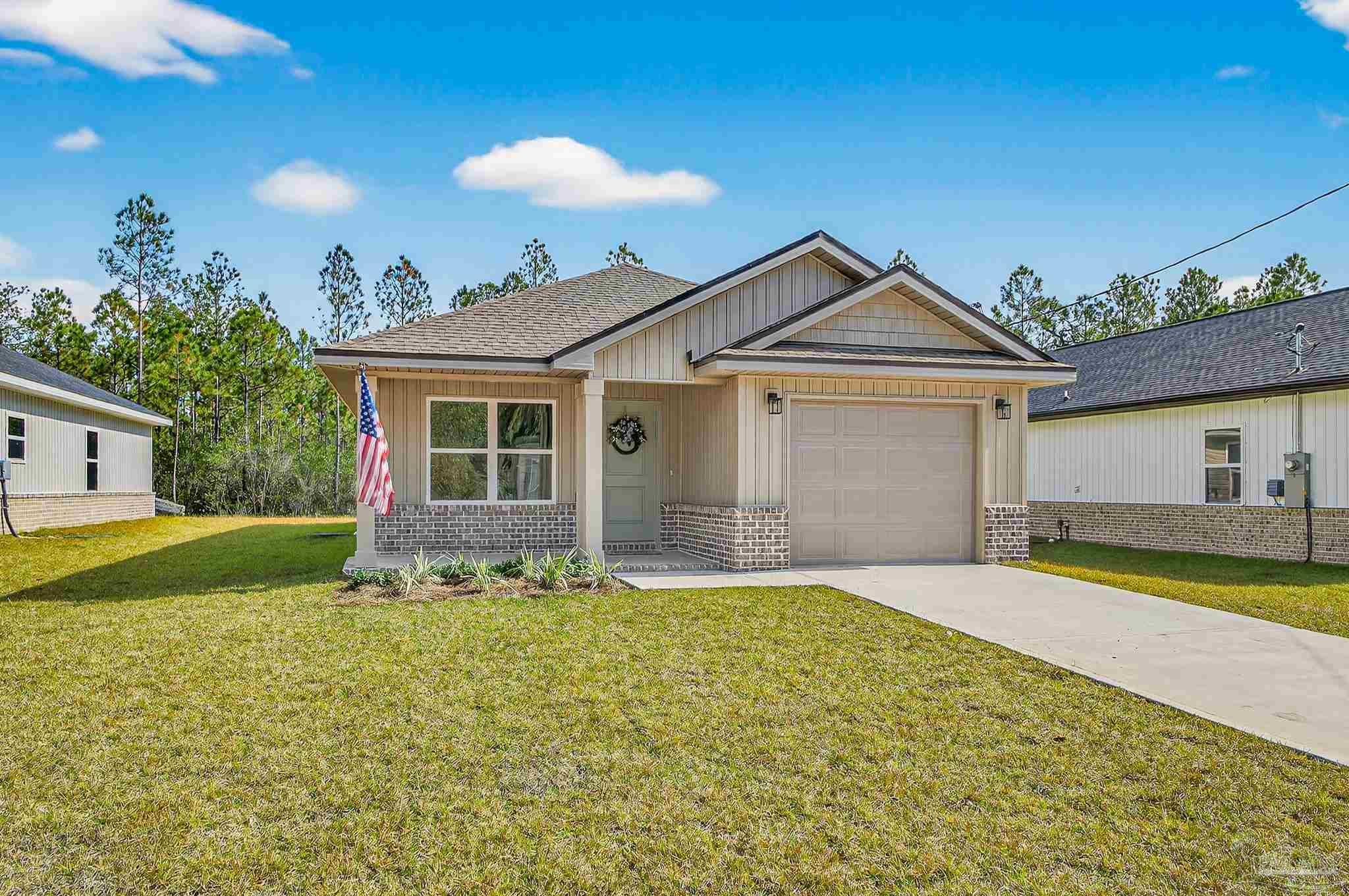 Move-In Ready New Construction – This new home offers excellent value with the builder covering all buyer’s closing costs when using the preferred lender, or providing a credit towards a rate buy down. Features include high ceilings with real wood planks in living room, granite countertops throughout, a spacious primary suite with private bath, an option to add an island, and a refrigerator included. The property offers curb appeal with no HOA and convenient access to Milton, Pace, Pensacola, and Crestview via the interstate. This home is move-in ready now and comes with the builder’s one-year home warranty.