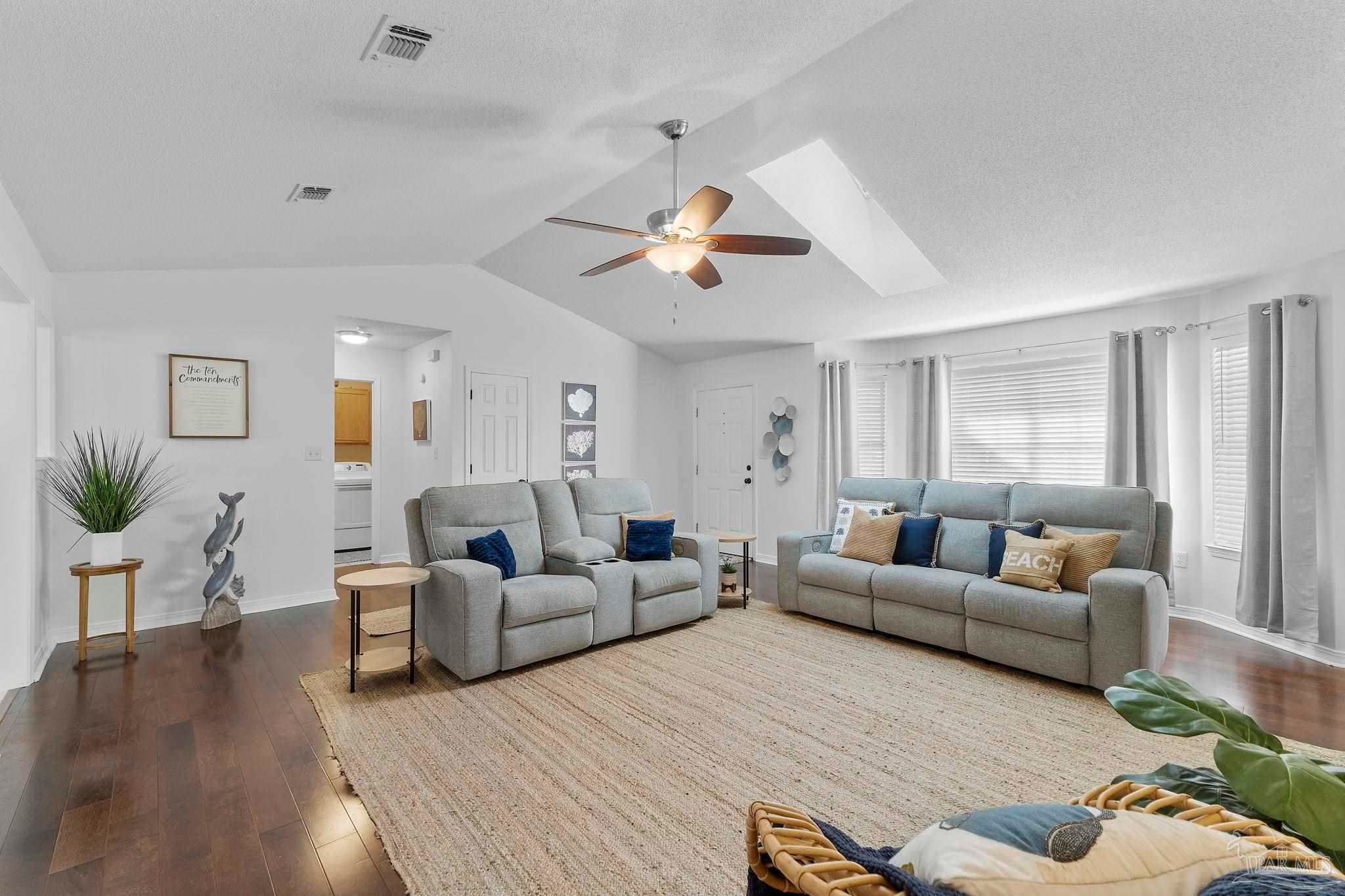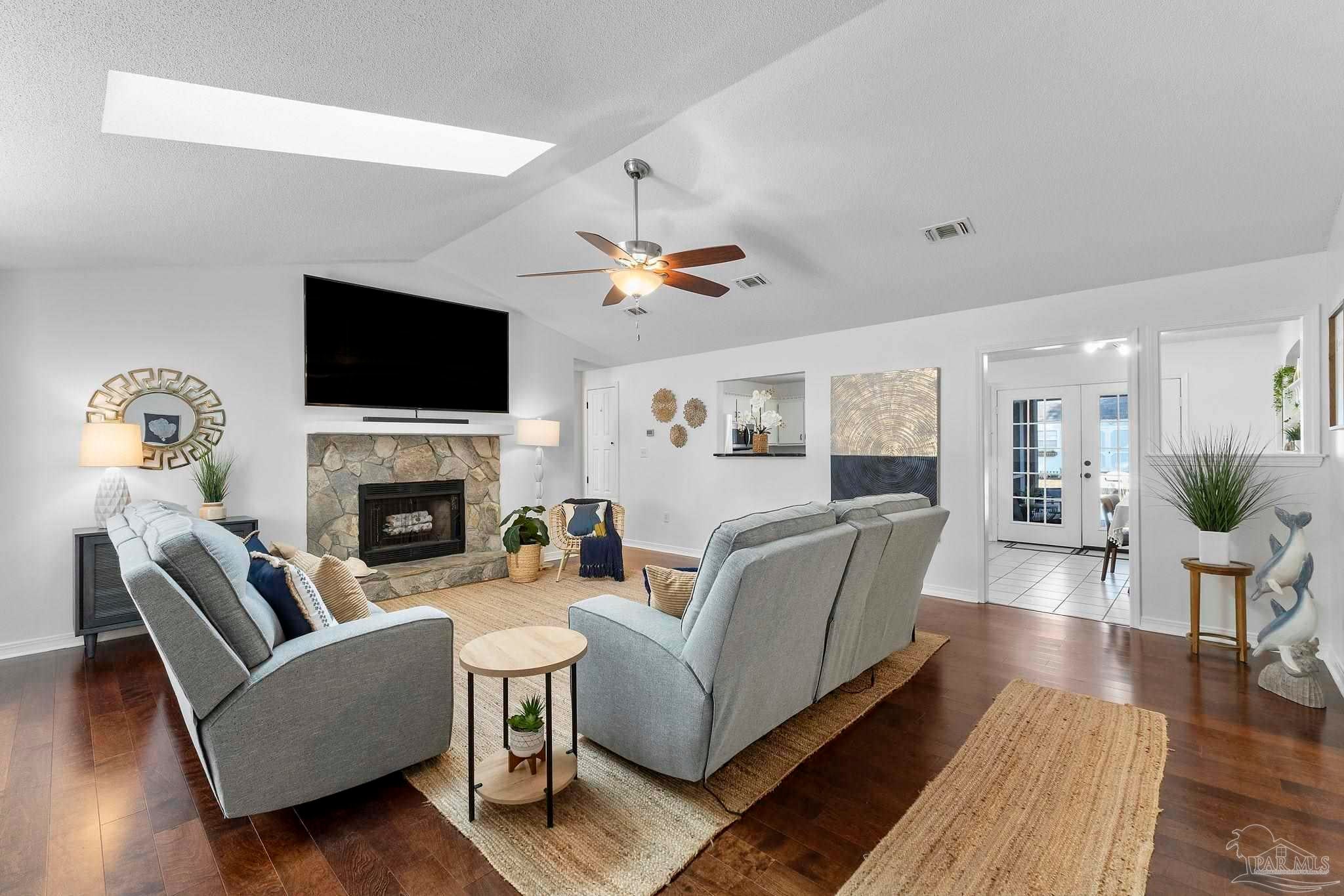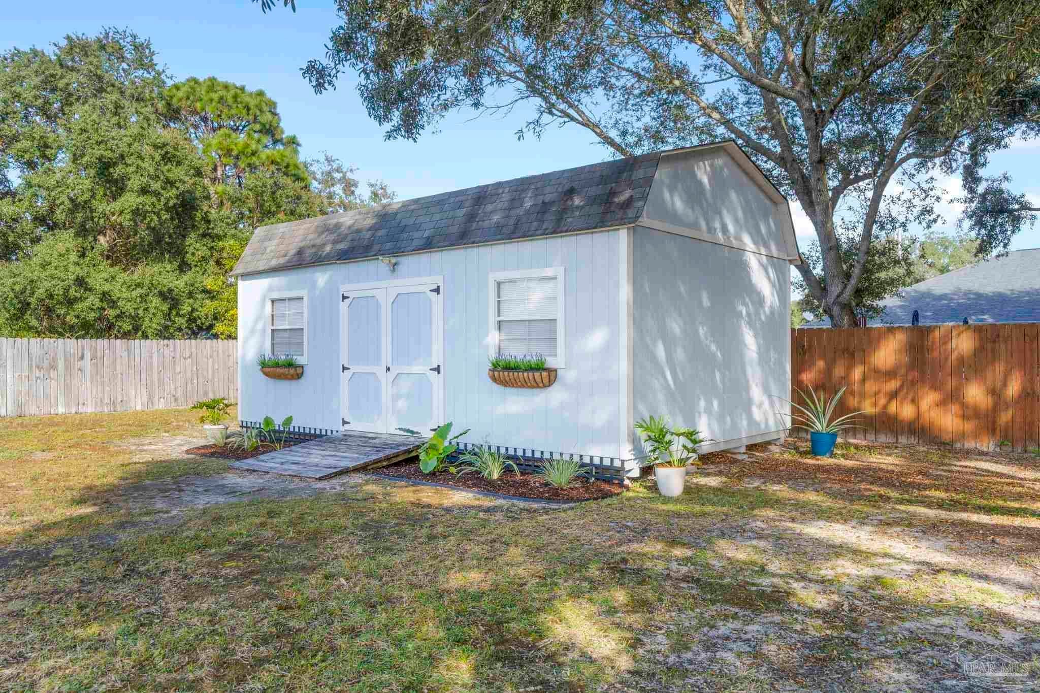 Pool home located just minutes to the beautiful emerald coast of Florida! Tall ceilings with skylights brings natural light in throughout. The kitchen offers granite counter tops and stainless steel appliances. There are double doors leading you to your screened in porch that offers a motorized screen that you can leave up for the view or down. Step out to your stylish gunite pool with a waterfall fountain, a built in ledge, and seating great for entertaining! Prestige Landscapes designed and installed a stylish landscape design with 3 boulders and lights highlighting the palm trees and landscape made to come on from dusk to dawn! Not to mention the front and back yard have timed irrigation. Also included in this beauty is a 24x14 shed with extra storage shelves above and a window ac unit that includes heat. There’s plenty of parking with a side parking pad and a double gate large enough to park your boat! If you’re looking for a home with a pool, look no further! Just imagine opening your double doors leading you to a covered screened in porch while listening to the waterfall from your pool throughout the inside of your house! It is so tranquil… Located in Holley by the Sea offering fitness center, boat launch, pier to sound and more! (Sellers are license FL real estate agents.)