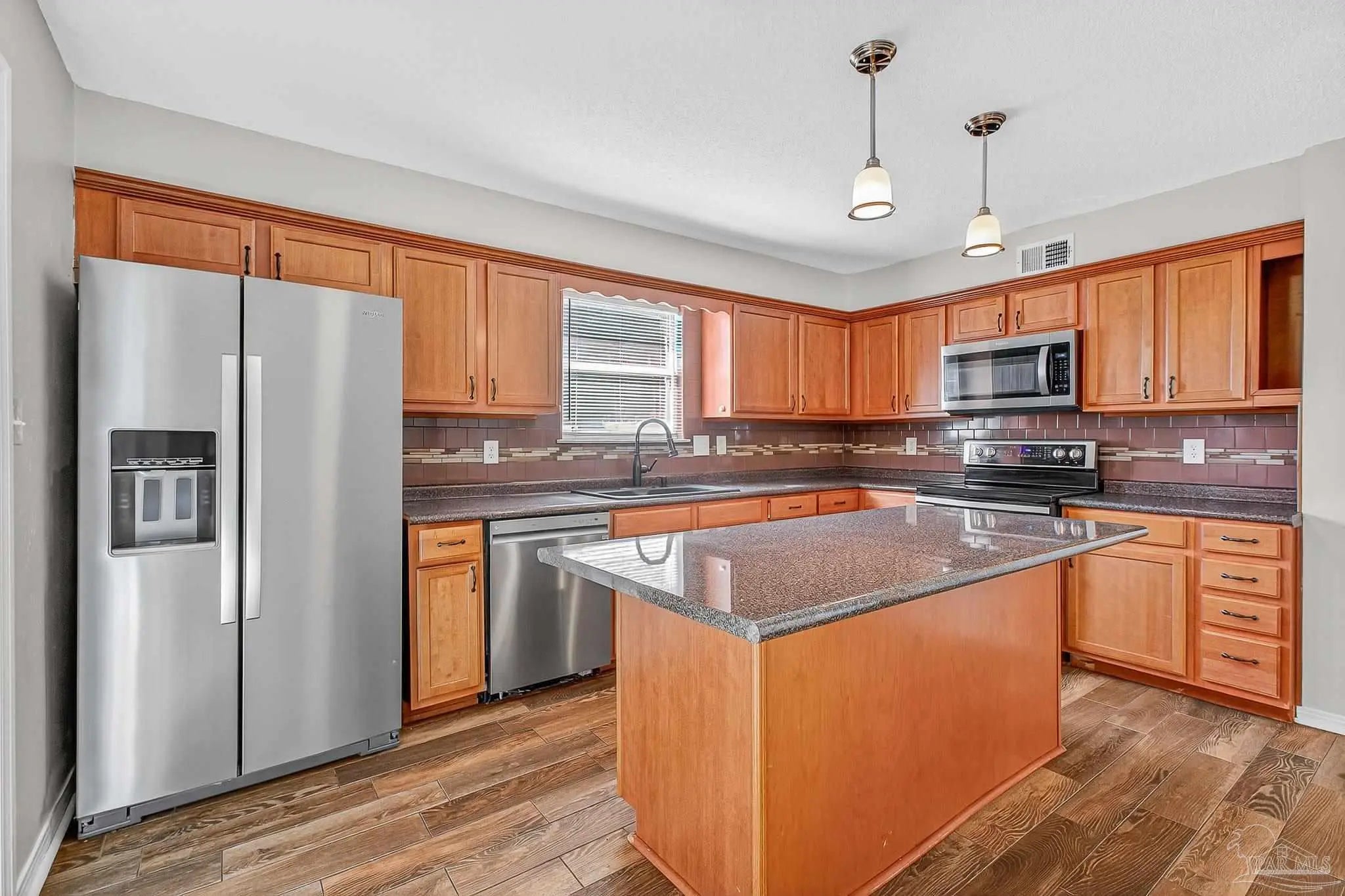 Welcome to Twin Oaks Villas, with NO HOA! Motivated sellers will consider any acceptable offer and offering $$$ towards buyers closing costs. This tastefully updated 4-bedroom, 2.5-bath townhome has much to offer. There are two master suites, one upstairs and the other downstairs. The downstairs suite has a large walk-in closet, and the upstairs suite is exceptionally large and has a fireplace. The kitchen has updated appliances and flows nicely with an island for family meals or entertaining. The two additional bedrooms upstairs have double closets. The laundry room provides additional access to the garage, and the washer and dryer are included with the home. Enjoy your private backyard with patio area and storage building. Home recently passed VA inspection with roof installed 2022, HVAC replaced 2017, hot water heater 2014. Home is centrally minutes from Pensacola NAS and Corry Station, you will not want to miss this opportunity, schedule your showing today!