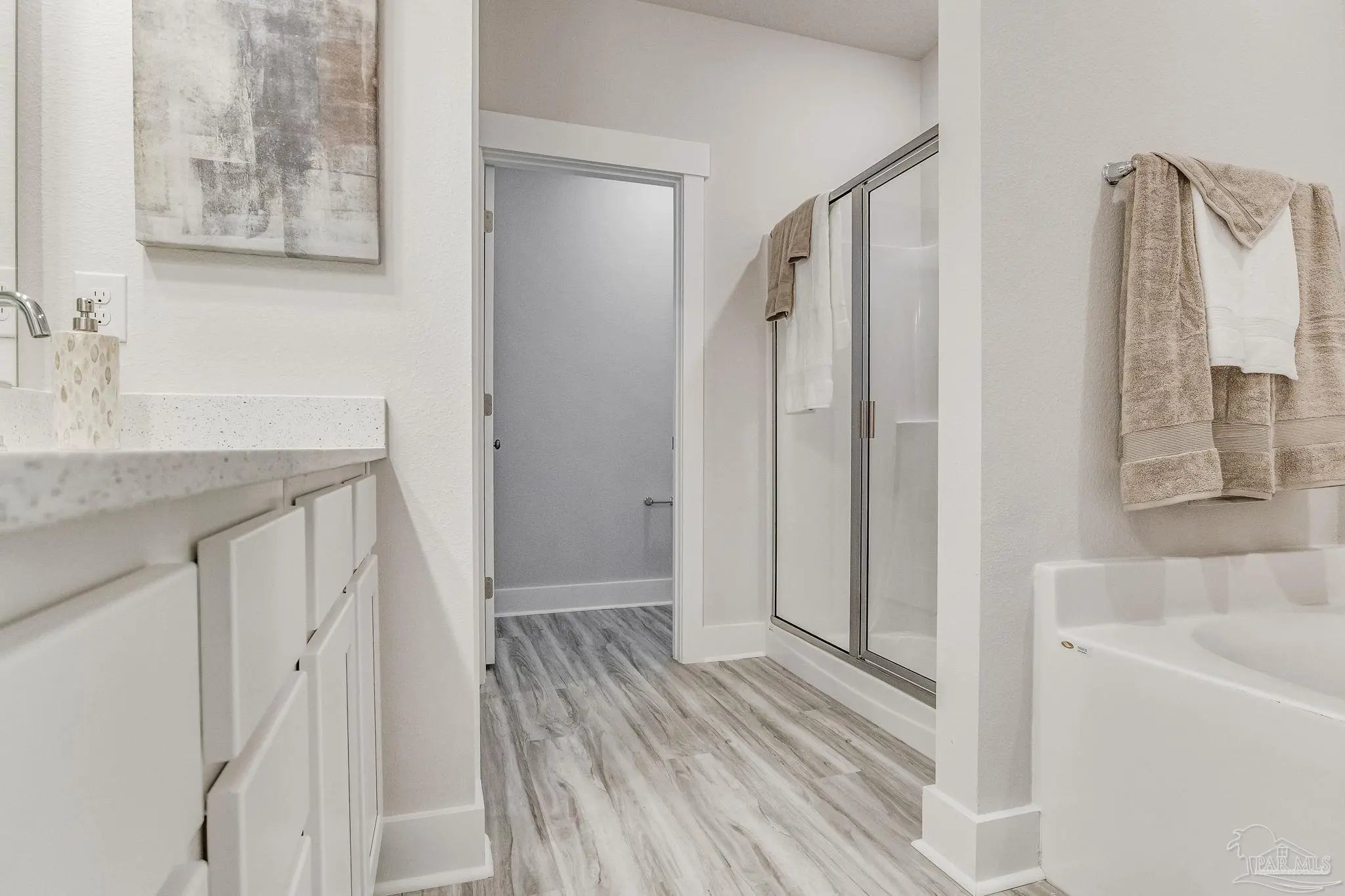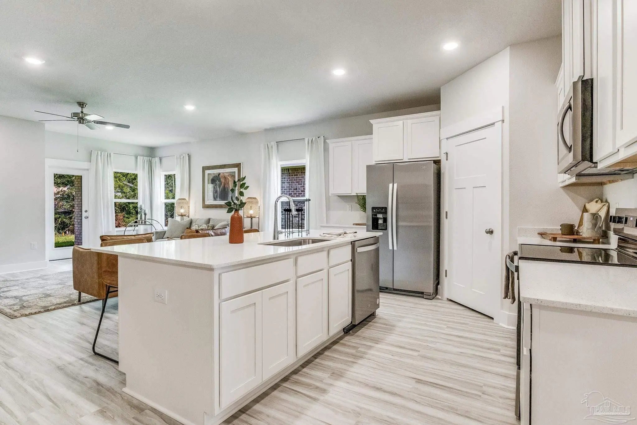 Welcome to Fallschase at Pathstone! The Creekside plan is a beautiful 5 bedroom, 3 bathroom home that offers over 2,000 sq ft of well-designed space with 9’ ceilings and a 2 car garage. Enjoy an open-concept layout with a spacious great room, dining area, and kitchen featuring quartz countertops, stainless steel appliances, and a large island. The split-bedroom design includes a private primary suite with a soaking tub, walk-in shower, dual vanities, and a large walk-in closet. Four additional bedrooms and two full baths provide flexibility for guests or family. This home is also equipped with a Smart Home technology package. This community offers sidewalks, a community pool, and a playground—perfect for everyday living. Conveniently situated near Navy Federal Credit Union, with easy access to I-10, lively downtown Pensacola, and the beautiful Pensacola beach. Call or submit an online inquiry for an exclusive tour!