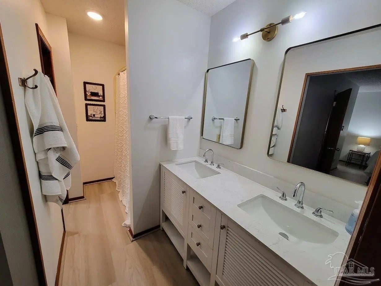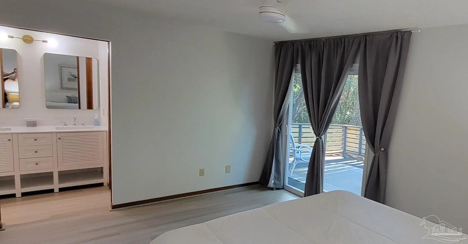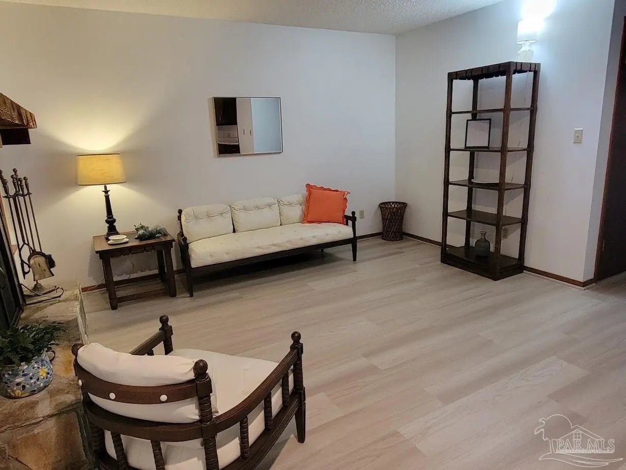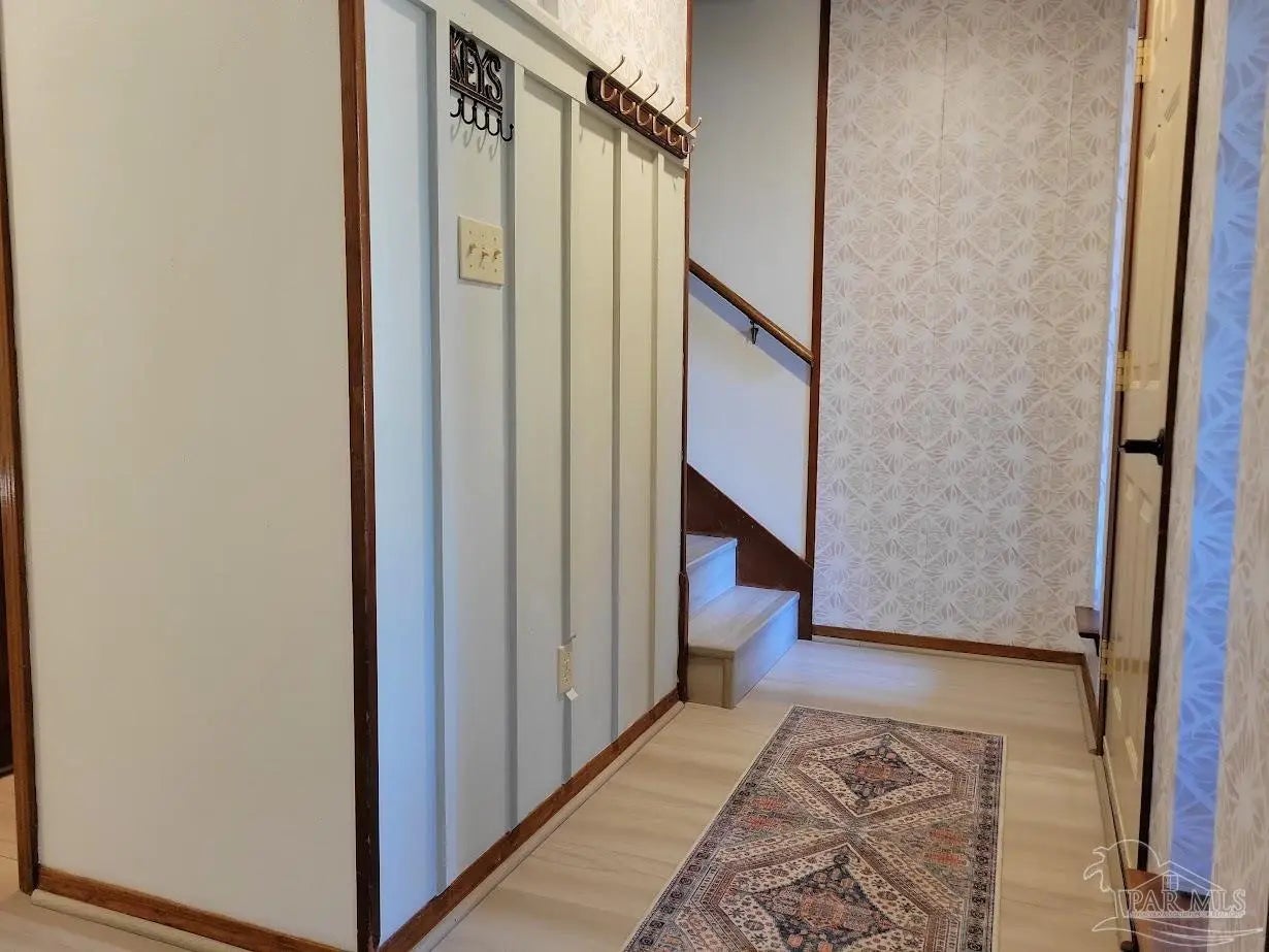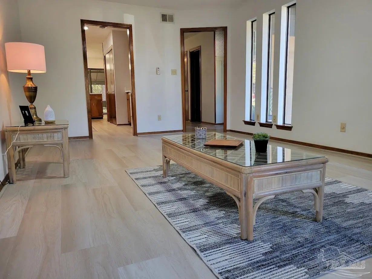 Modern rustic gem in the heart of Pensacola! No HOA. Fully updated with lots of new, including new roof, new HVAC, new hot water heater, and new luxury vinyl flooring upstairs and down. Kitchen boasts new quartz countertops, plenty of cabinets, and new hardware. All bathrooms have new vanities and toilets. Entire home has been painted inside and out. Both fireplaces have new case covers, and many windows have been replaced. This home has a spacious front living/dining room, that could suit many purposes. The cozy back den has a small breakfast nook, which looks out to the covered porch and the vast secluded back yard. There is a large storage closet under the porch for all your yard tools. The primary bedroom, with walk-in closet and double vanity, has large private balcony and more views. The front bedroom has another balcony facing the front yard, and the second bedroom has an extra attic access with storage space. There is also inside laundry. This is a great family home in the perfect location on a quiet street at the end of a cul de sac close to the airport, parks, schools, and Cordova Mall. Pensacola beach is only 13 miles away. This one won't last!