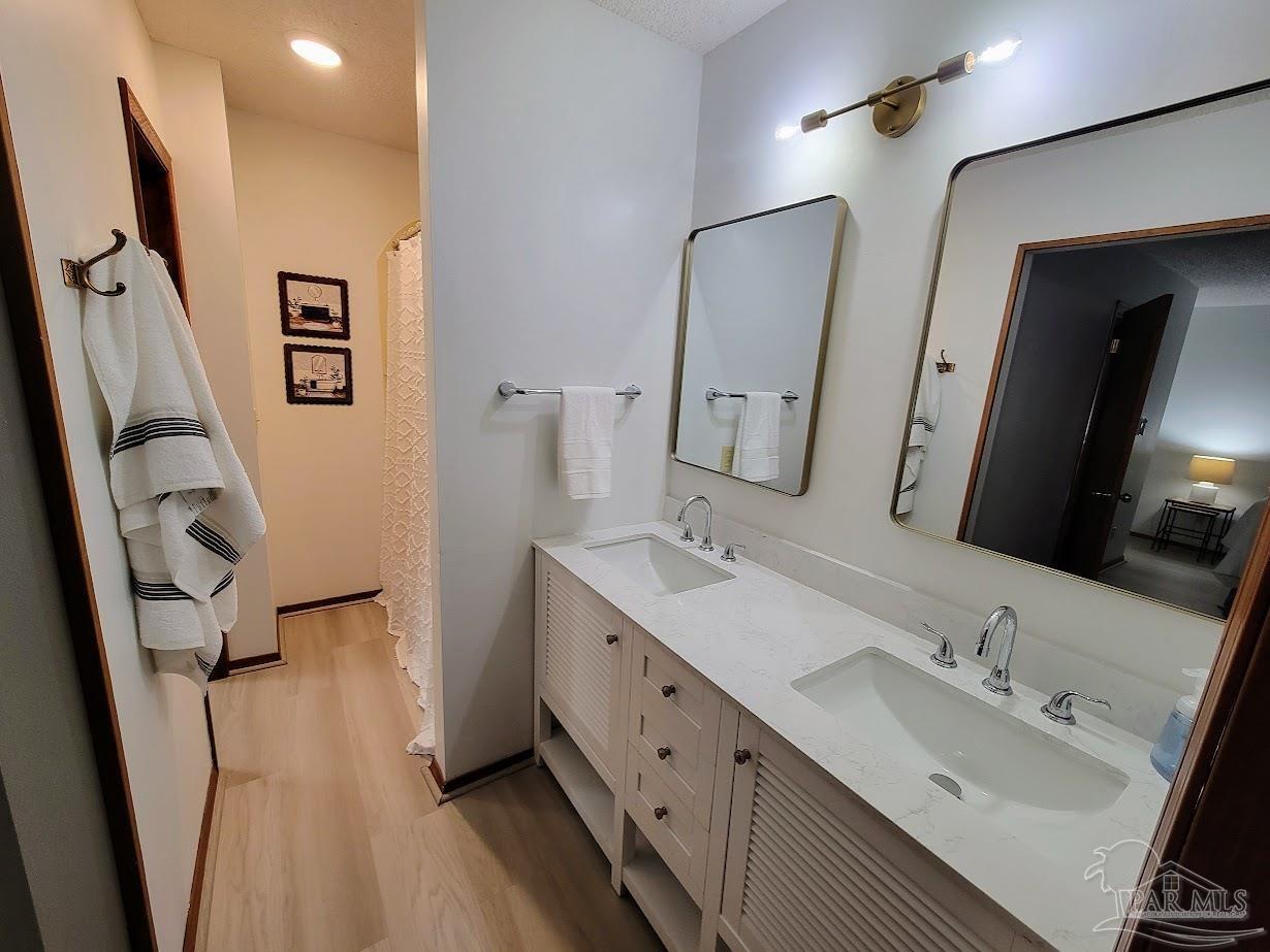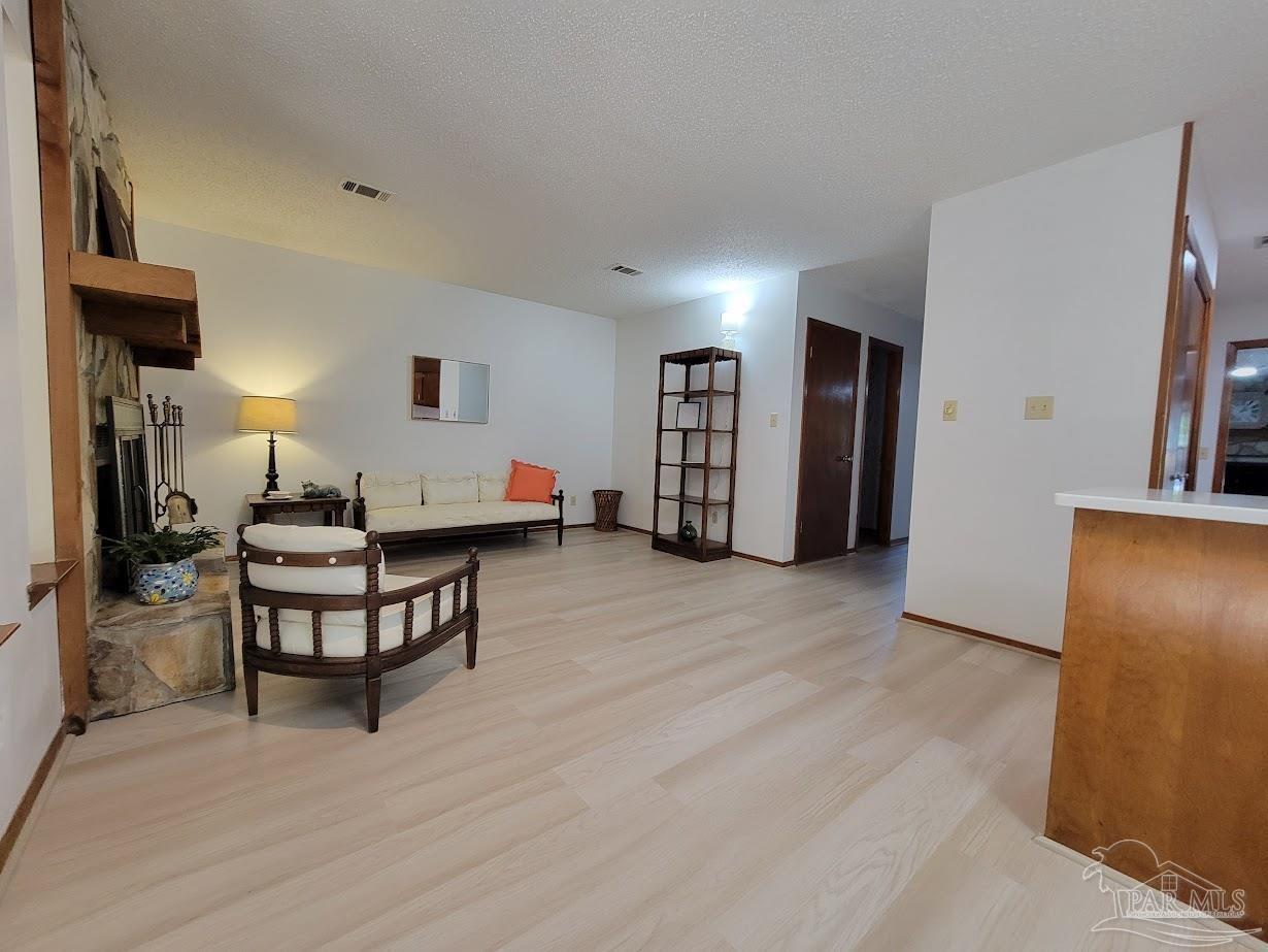 Modern rustic gem in the heart of Pensacola! No HOA. Fully updated with lots of new, including new roof, new HVAC, new hot water heater, and new luxury vinyl flooring upstairs and down. Kitchen boasts new quartz countertops, plenty of cabinets, and new hardware. All bathrooms have new vanities and toilets. Entire home has been painted inside and out. Both fireplaces have new case covers, and many windows have been replaced. This home has a spacious front living/dining room, that could suit many purposes. The cozy back den has a small breakfast nook, which looks out to the covered porch and the vast secluded back yard. There is a large storage closet under the porch for all your yard tools. The primary bedroom, with walk-in closet and double vanity, has large private balcony and more views. The front bedroom has another balcony facing the front yard, and the second bedroom has an extra attic access with storage space. There is also inside laundry. This is a great family home in the perfect location on a quiet street at the end of a cul de sac close to the airport, parks, schools, and Cordova Mall. Pensacola beach is only 13 miles away. This one won't last!