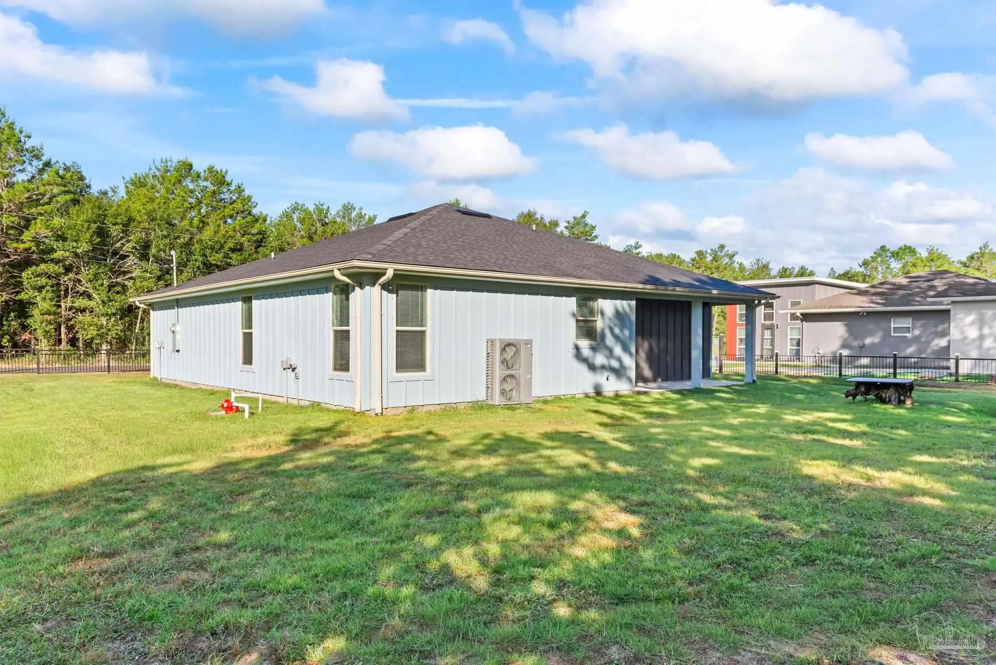 Built in 2025, this beautifully designed 4-bedroom, 2-bath home offers modern luxury and energy efficiency in one of Florida's most desirable coastal communities. The open-concept layout showcases LVP flooring paired with granite countertops. The interiors reflect a contemporary style that is both elegant and low maintenance. The gourmet-inspired kitchen flows seamlessly into spacious living areas, perfect for entertaining, while abundant natural light enhances the inviting atmosphere. This residence is equipped with a high-efficiency GREE Inverter Split Type Air Conditioner Heat Pump, ensuring year-round comfort and reduced utility costs. Durable Hardi-Plank siding adds timeless curb appeal, and the fully insulated garage with insulated garage door provides both functionality and energy savings. Peace of mind comes standard with a 10-year structural warranty and a 1-year home warranty, making this property truly move-in ready. The location offers convenient access to pristine Gulf beaches, the bay, scenic parks, shopping, dining, and world-class fishing. Golf enthusiasts will appreciate nearby courses offering championship-level play and beautiful coastal views. Military bases are also within close proximity, adding to the convenience of this prime location. Whether seeking a brand-new build with modern finishes or relocating to enjoy Florida's coastal lifestyle, this home delivers the perfect combination of luxury, efficiency, and location. With its warranties, stylish design, and access to beaches, golf, and everyday amenities, this property represents a rare opportunity to own a one-of-a-kind treasure in Navarre.