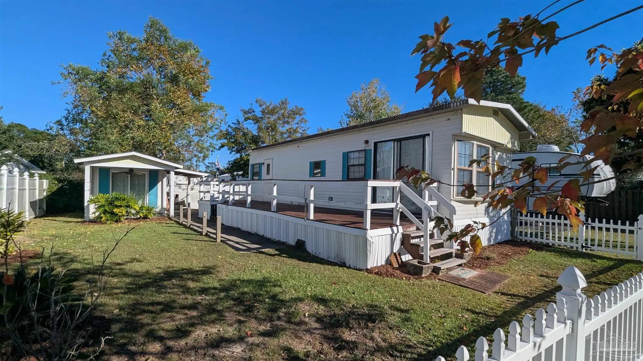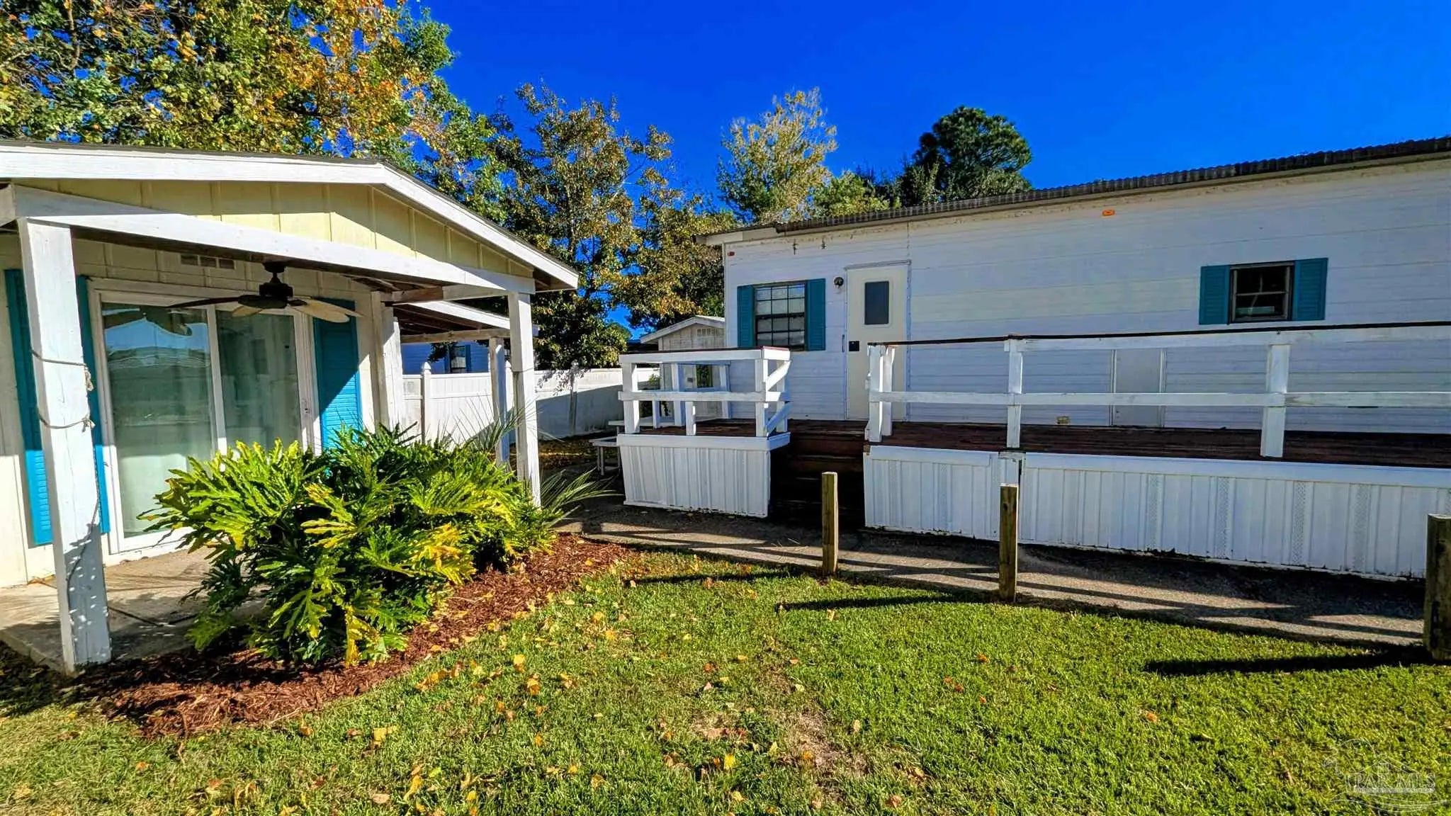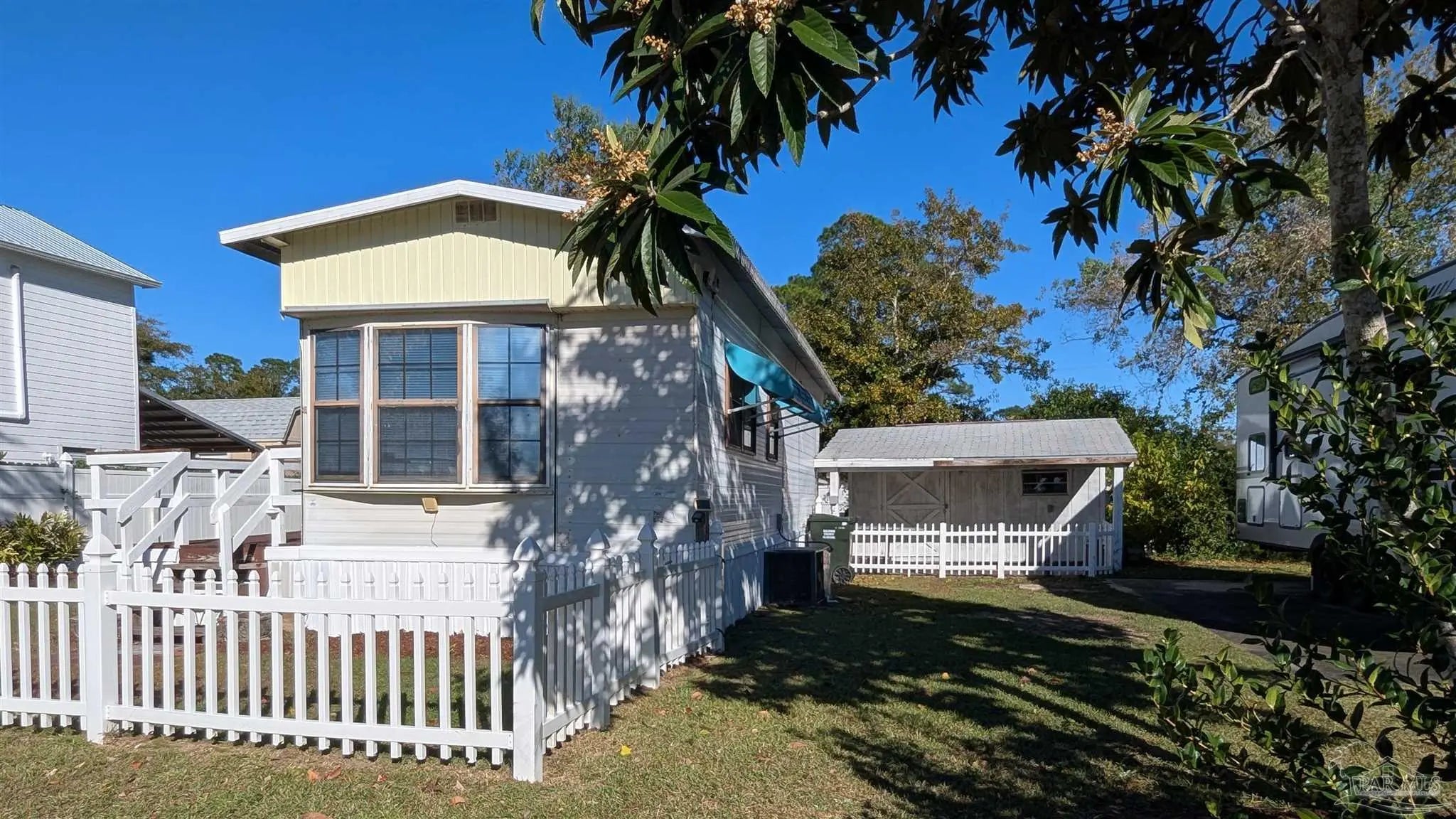 Welcome to your Enchanting Cozy Cottage nestled in the highly sought-after Spanish Cove subdivision! This delightful one-bedroom, one-bath home is great for those seeking a charming retreat! Step inside to discover inviting ceramic tile and laminate flooring that create a warm and welcoming atmosphere throughout. The modern walk-in shower adds a touch of luxury to your daily routine while the expansive side deck is an ideal space for entertaining guests. Spanning across two generous lots, this property offers ample space for you to roam and relish the beauty of the outdoors. The partially fenced yard provides both privacy and a secure area for pets and play. This property also boasts a versatile craft/game room, providing space for your creative endeavors, while a handy storage shed ensures you have all the room you need for tools and outdoor gear. With the convenience of a 50 amp power box, your RV can easily be accommodated. Also, If you like having activities right at your fingertips, the Spanish Cove Subdivision is for you! This golf cart community offers numerous amenities, including 24-hour security, an outdoor pool overlooking Perdido Bay (seasonally covered & heated), a clubhouse, bay access, a fishing pier, playground, beach area, & tennis/pickleball courts! Additionally, this home is just minutes away from a public boat launch, the stunning beaches of the Gulf of America, and a variety of shopping, dining, and amusement park options—everything the Gulf Coast has to offer! Don’t miss your chance to own this serene sanctuary in Spanish Cove- it's not just a home, it’s a lifestyle! Call & schedule your showing TODAY! Buyer to verify all information during due diligence.