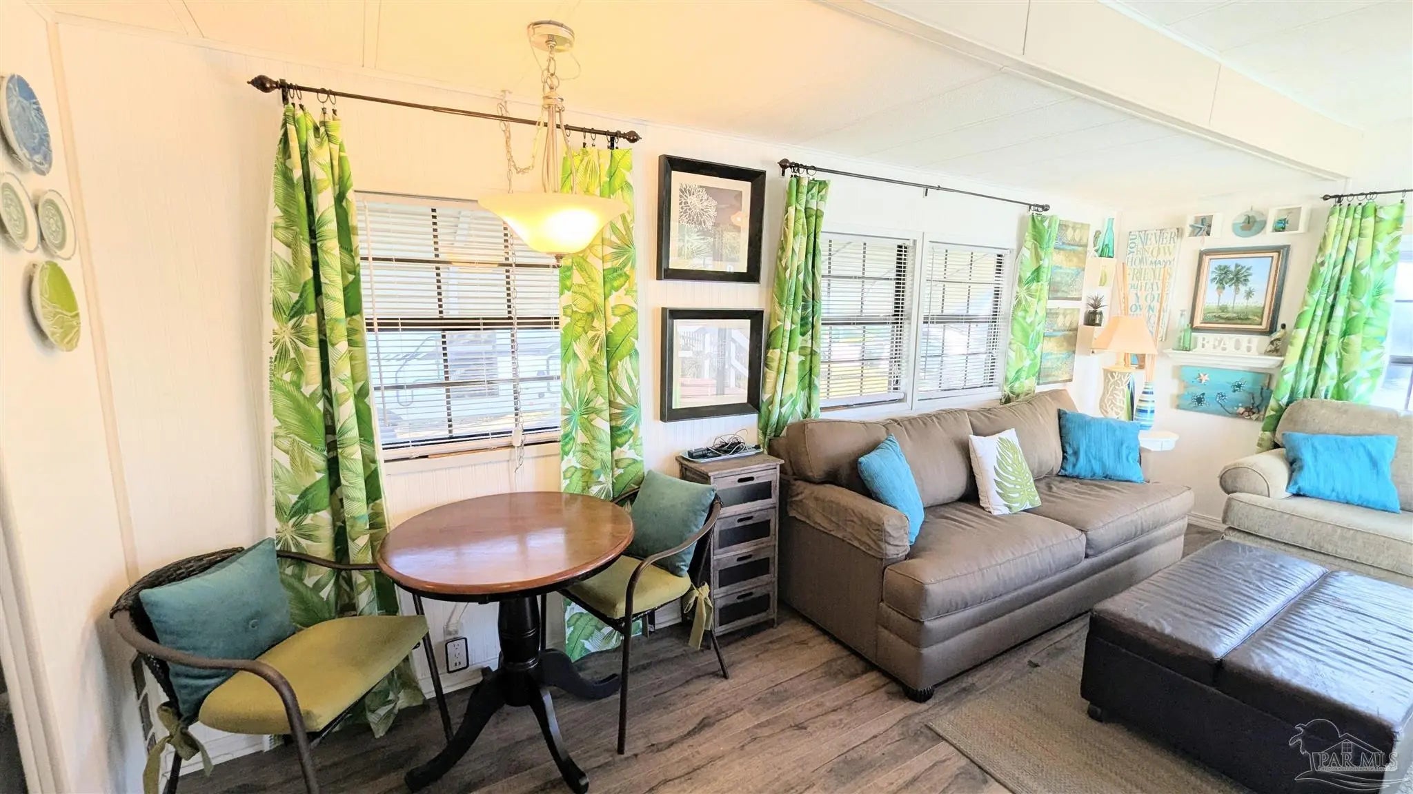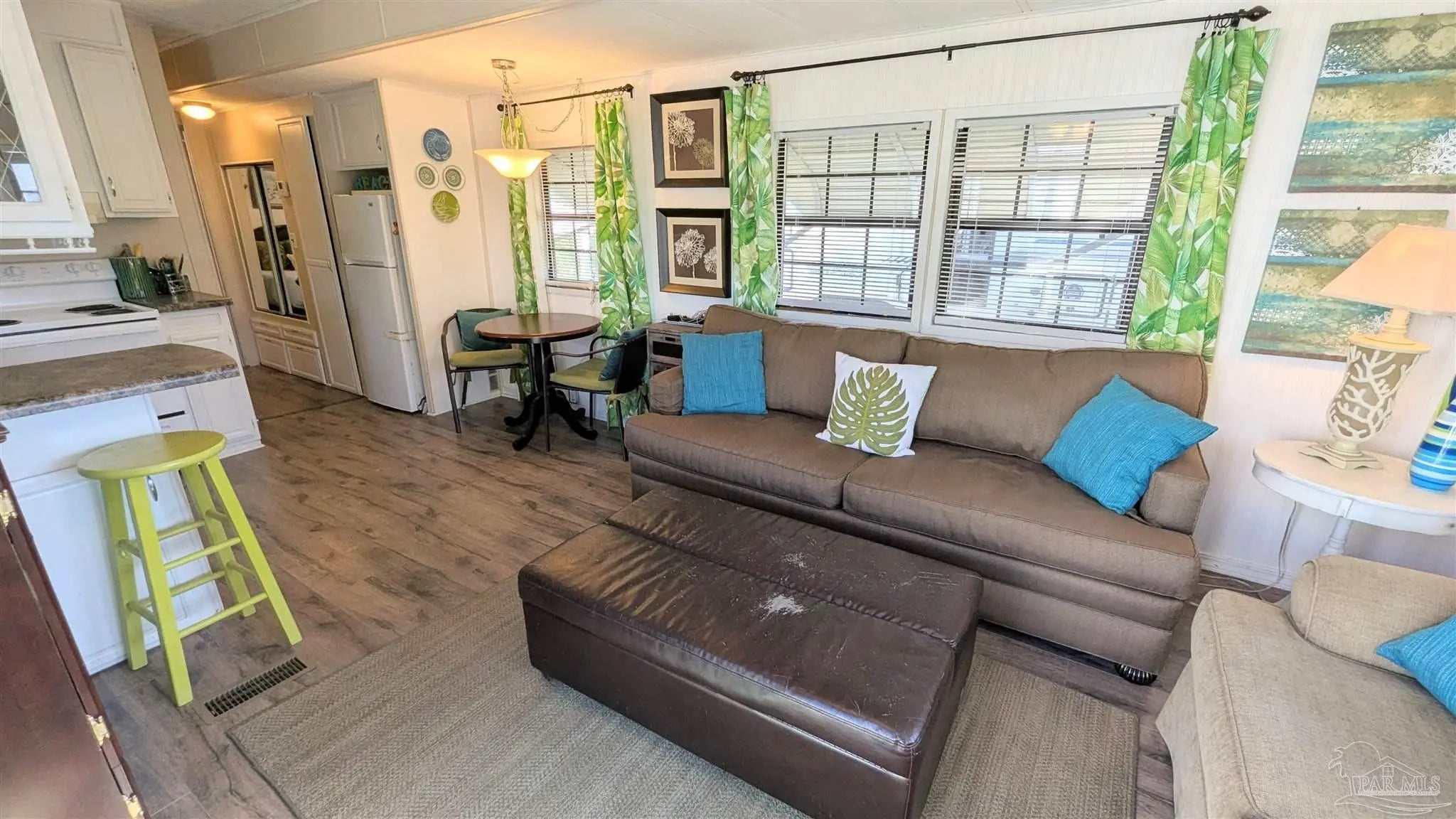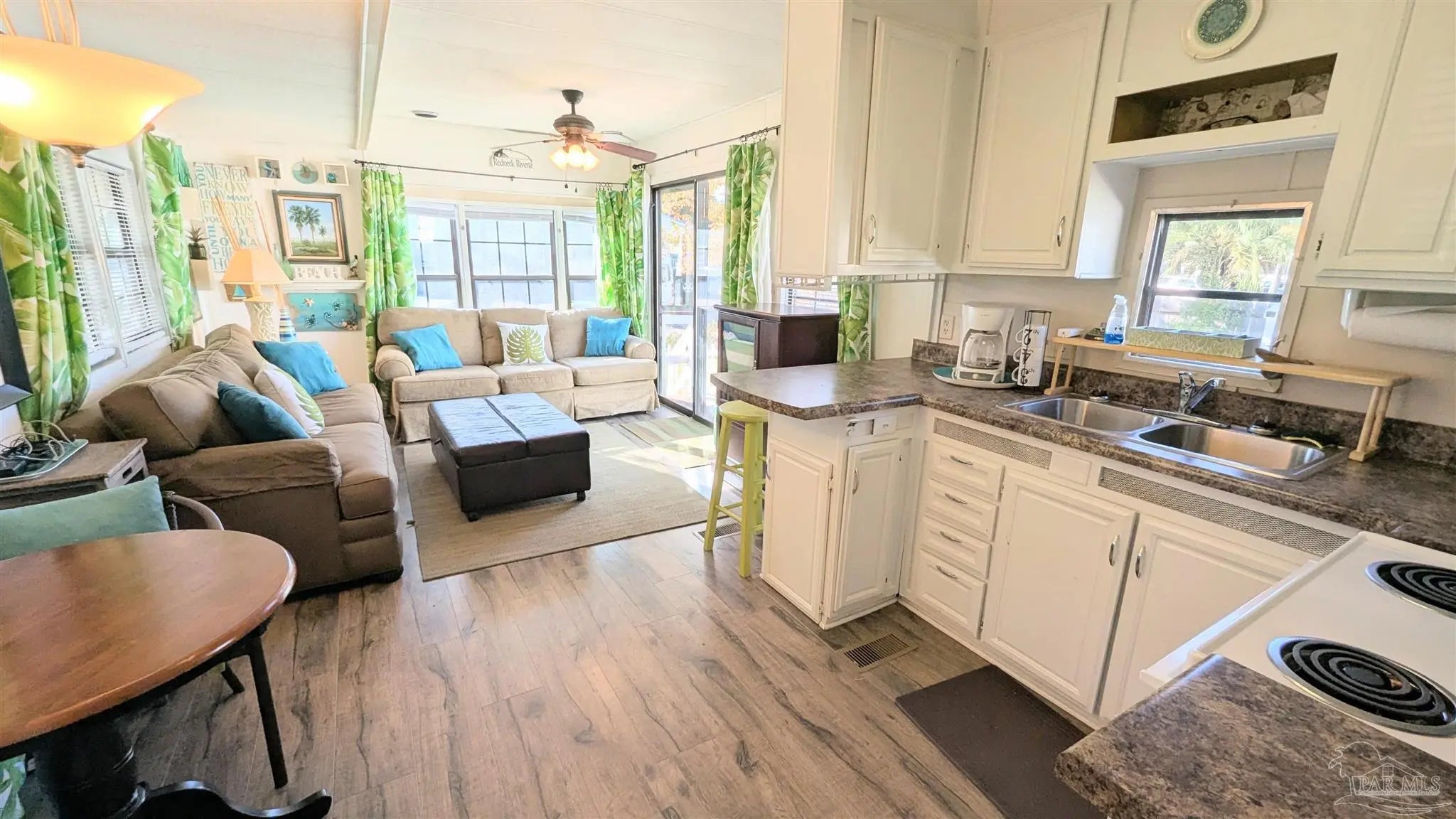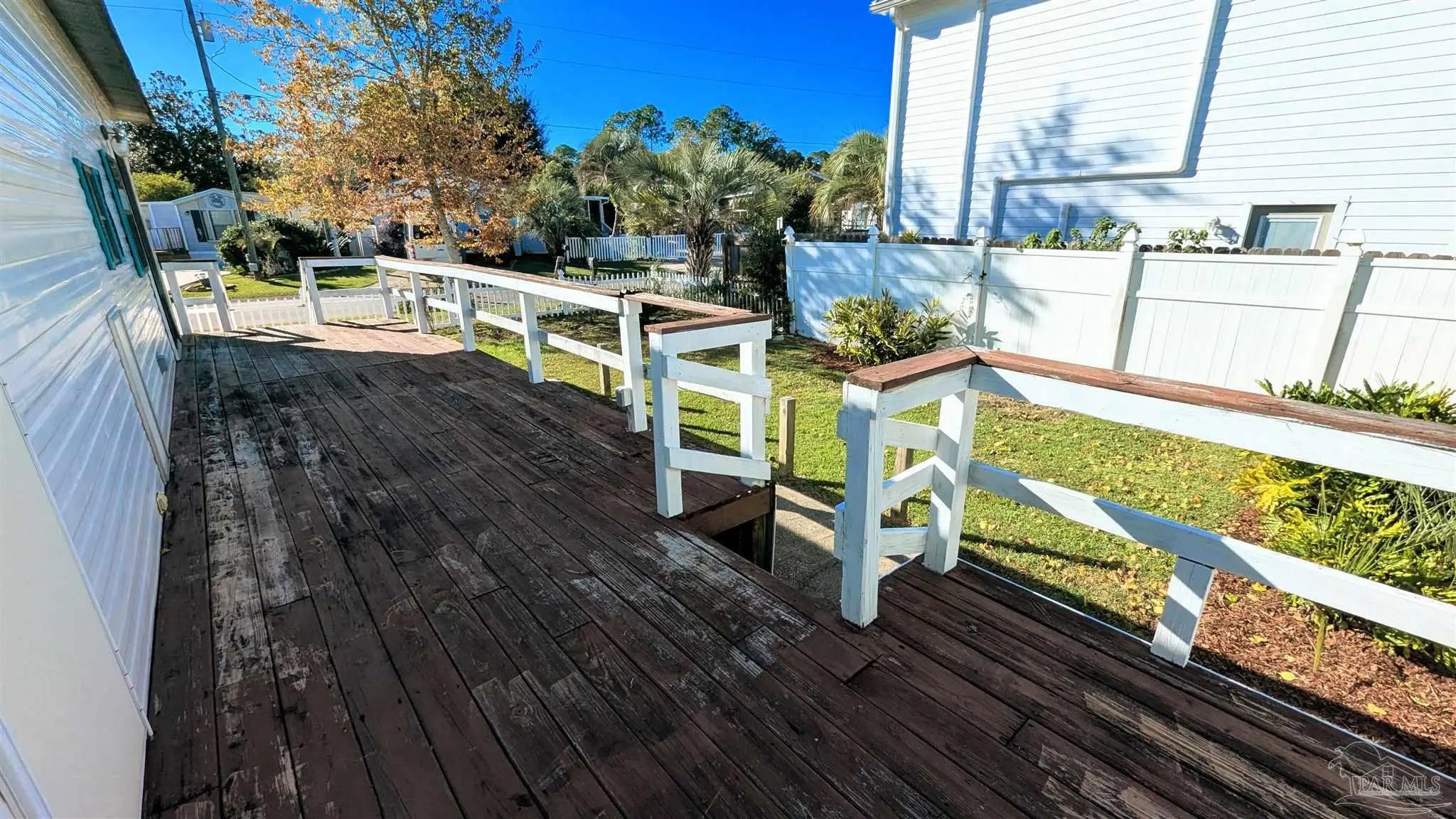 Welcome to your Enchanting Cozy Cottage nestled in the highly sought-after Spanish Cove subdivision! This delightful one-bedroom, one-bath home is great for those seeking a charming retreat! Step inside to discover inviting ceramic tile and laminate flooring that create a warm and welcoming atmosphere throughout. The modern walk-in shower adds a touch of luxury to your daily routine while the expansive side deck is an ideal space for entertaining guests. Spanning across two generous lots, this property offers ample space for you to roam and relish the beauty of the outdoors. The partially fenced yard provides both privacy and a secure area for pets and play. This property also boasts a versatile craft/game room, providing space for your creative endeavors, while a handy storage shed ensures you have all the room you need for tools and outdoor gear. With the convenience of a 50 amp power box, your RV can easily be accommodated. Also, If you like having activities right at your fingertips, the Spanish Cove Subdivision is for you! This golf cart community offers numerous amenities, including 24-hour security, an outdoor pool overlooking Perdido Bay (seasonally covered & heated), a clubhouse, bay access, a fishing pier, playground, beach area, & tennis/pickleball courts! Additionally, this home is just minutes away from a public boat launch, the stunning beaches of the Gulf of America, and a variety of shopping, dining, and amusement park options—everything the Gulf Coast has to offer! Don’t miss your chance to own this serene sanctuary in Spanish Cove- it's not just a home, it’s a lifestyle! Call & schedule your showing TODAY! Buyer to verify all information during due diligence.
