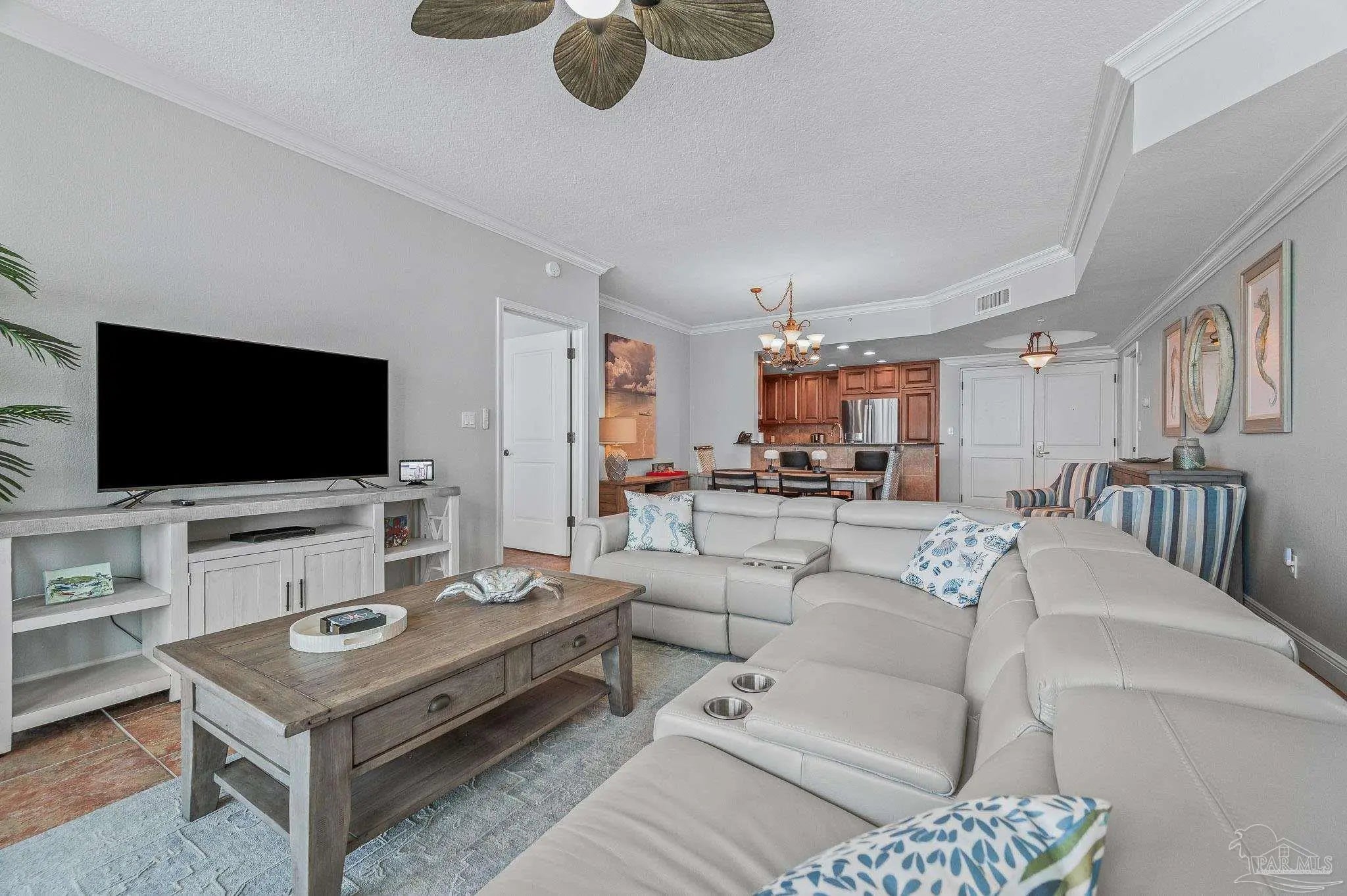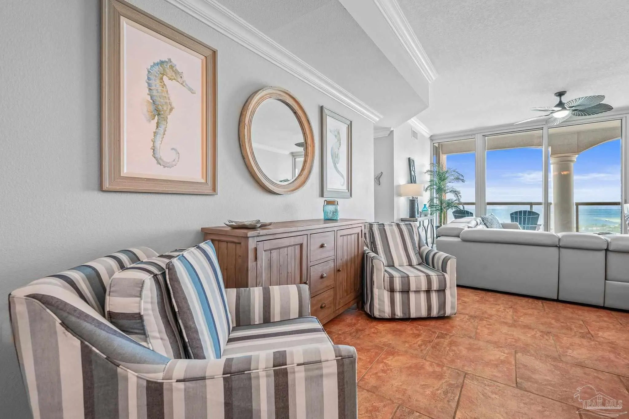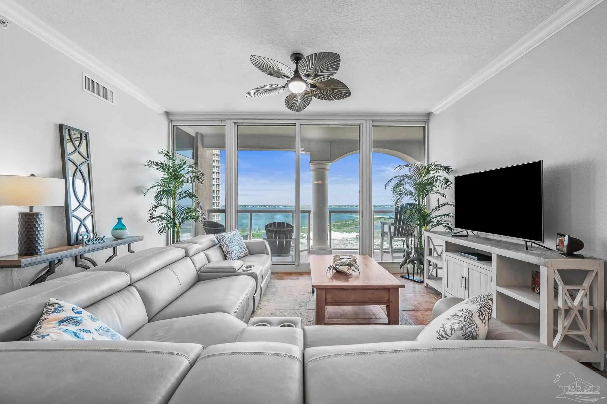PORTOFINO ISLAND RESORT JUST STEPS FROM THE SUGAR WHITE SANDS OF PENSACOLA BEACH This condo is wonderfully appointed, meticulously maintained in Portofino tower 3. Sit on the back balcony and enjoy your morning coffee or afternoon drinks and enjoy the beautiful view of Santa Rosa Sound and the Gulf Islands National Seashore. This unit was not on a rental pool and was loved and cared for by the owners. The warm hues inside give it the beachy feel you'll come to love. There is fresh paint throughout and new appliances to include refrigerator, grill, microwave and dishwasher. This unit comes fully furnished. Portofino Island Resort offers the most complete amenities package anywhere on Pensacola Beach. Enjoy the resort lifestyle all year round. Everything is on site. The spa and lifestyle center features a state of the art fitness center, indoor spa with sauna, steam room, showers and lounge, poolside drinks and dining at the bar and grill, Starbucks, gift shop and sundries. In addition to the huge resort lagoon pools, each tower has it's own pool and hot tub. Play tennis on the rubico clay courts. With tons of resort activities and water sport rentals the fun is non-stop. This condo is ready for it's next owner or would make a great addition to a rental portfolio. It's turn-key, ready to be enjoyed immediately.