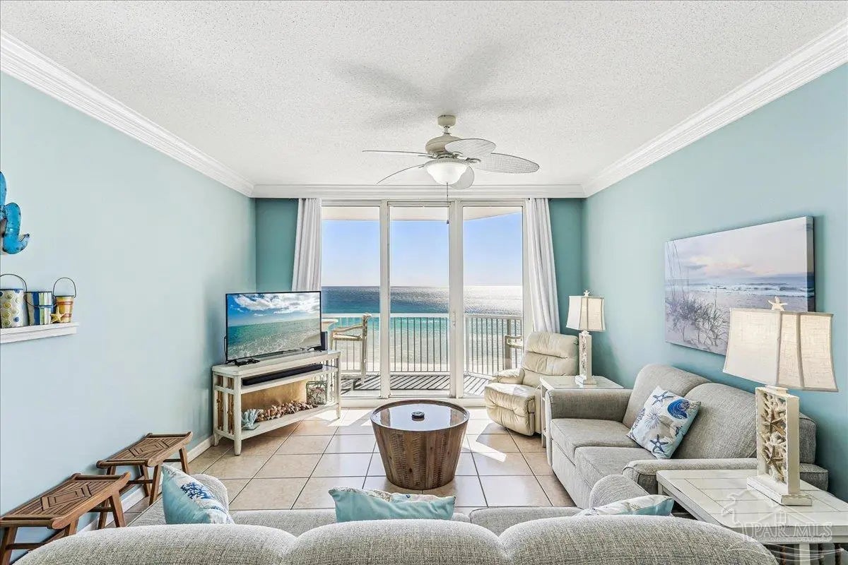 Experience breathtaking 7th-floor views of the Gulf and Navarre Pier from your private waterfront balcony. This fully furnished vacation residence also presents an excellent vacation rental investment opportunity, comfortably sleeping 8 guests with 3 vacation rental bedrooms designed for ultimate relaxation. Tiled flooring flows throughout the condominium, complemented by soaring 10-ft ceilings with elegant crown molding. The open concept living and dining area extends to the expansive balcony, offering the perfect space for indoor-outdoor living. The kitchen has breakfast bar, quartz countertops, a convenient pantry, and a smooth-top range. The luxurious primary suite features private balcony access, a generous walk-in closet, and an en-suite bath with a double vanity. The guest bath offering dual access from both the living area and a guest bedroom, ensures comfort and convenience for all. The Summerwind complex boasts 450 feet of pristine beachfront access, three Gulf-side pools (one heated for winter use), three hot tubs, a private walkover to the beach, exercise facilities, grills, and on-site security for peace of mind. Navarre Beach is a hidden gem, offering stunning white sand beaches and an array of activities including swimming, scuba diving, snorkeling, kayaking, jet skiing, fishing, as well as scenic walking and biking paths. Plus, you will have easy access to the Gulf Island National Seashore for outdoor exploration. Whether you are looking for a vacation home or an ideal vacation rental investment, this property is your gateway to an unparalleled coastal lifestyle. Schedule your showing today and begin your journey to beachside bliss!