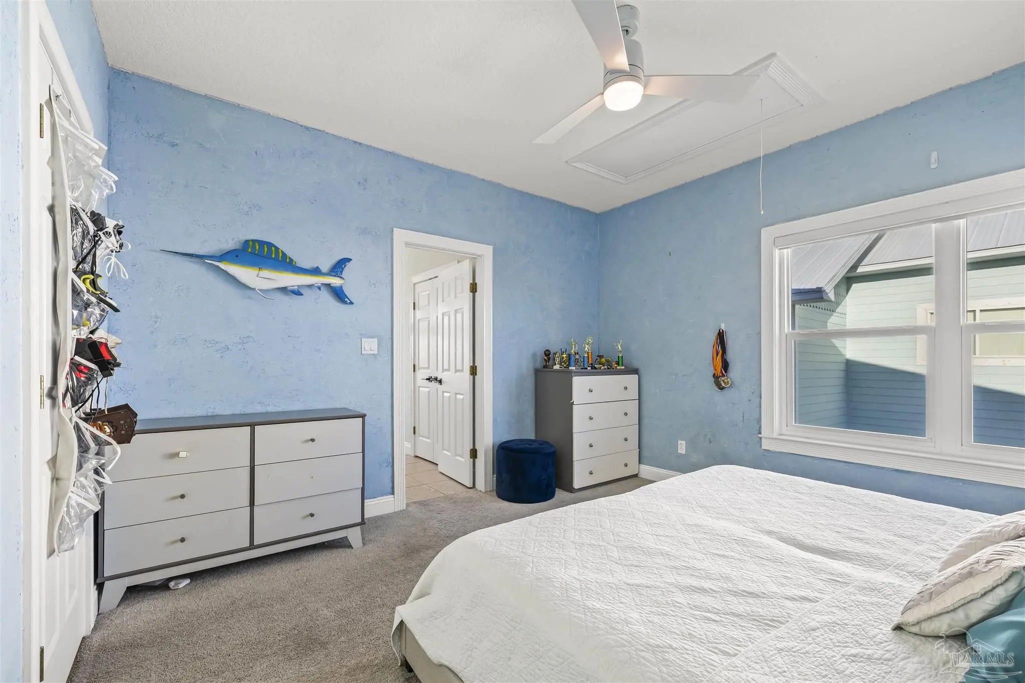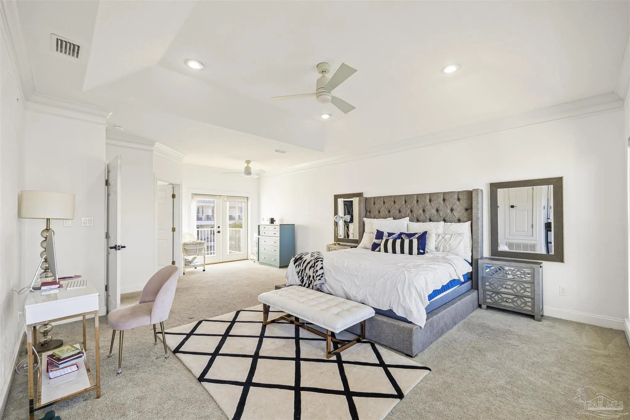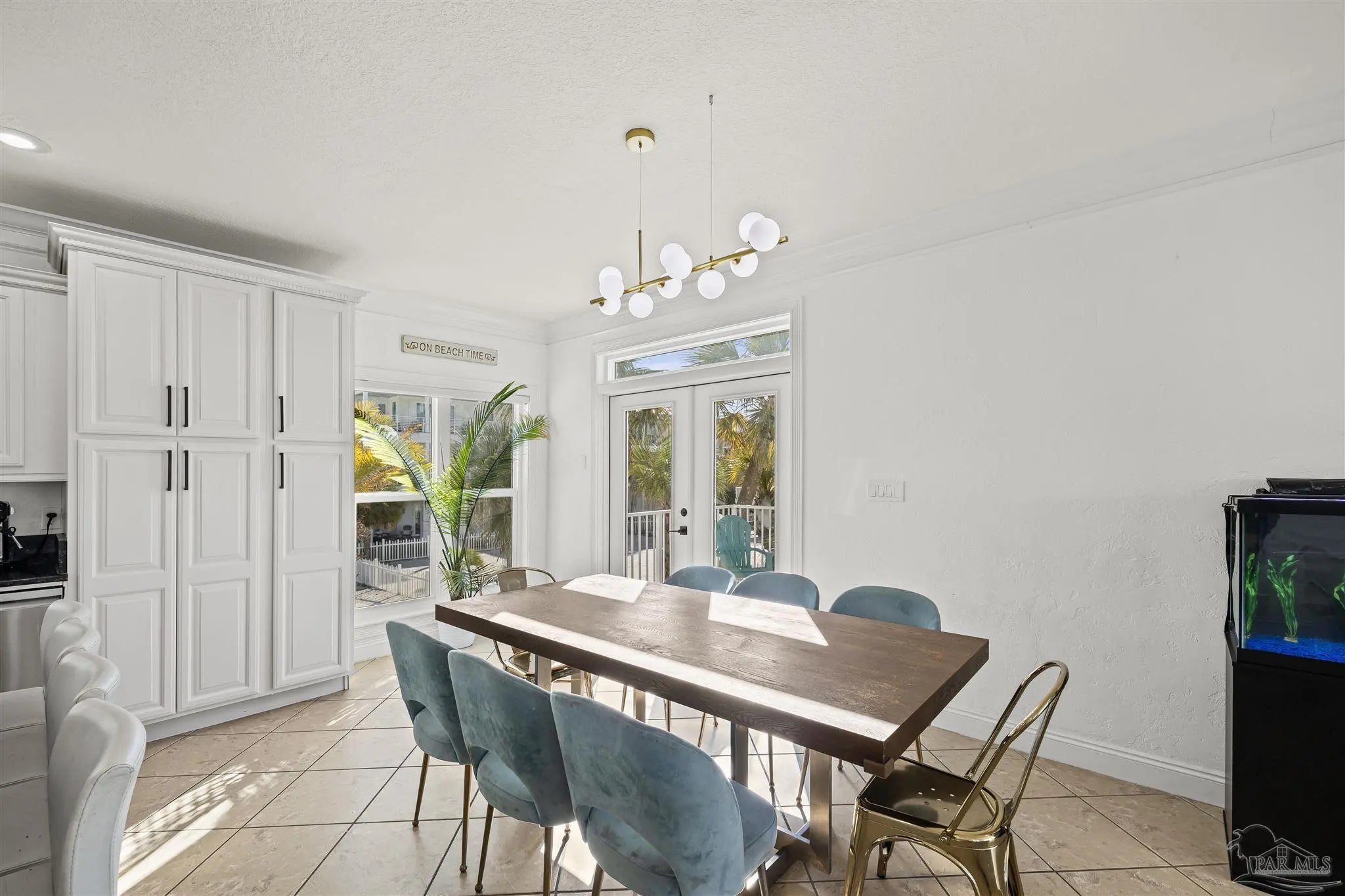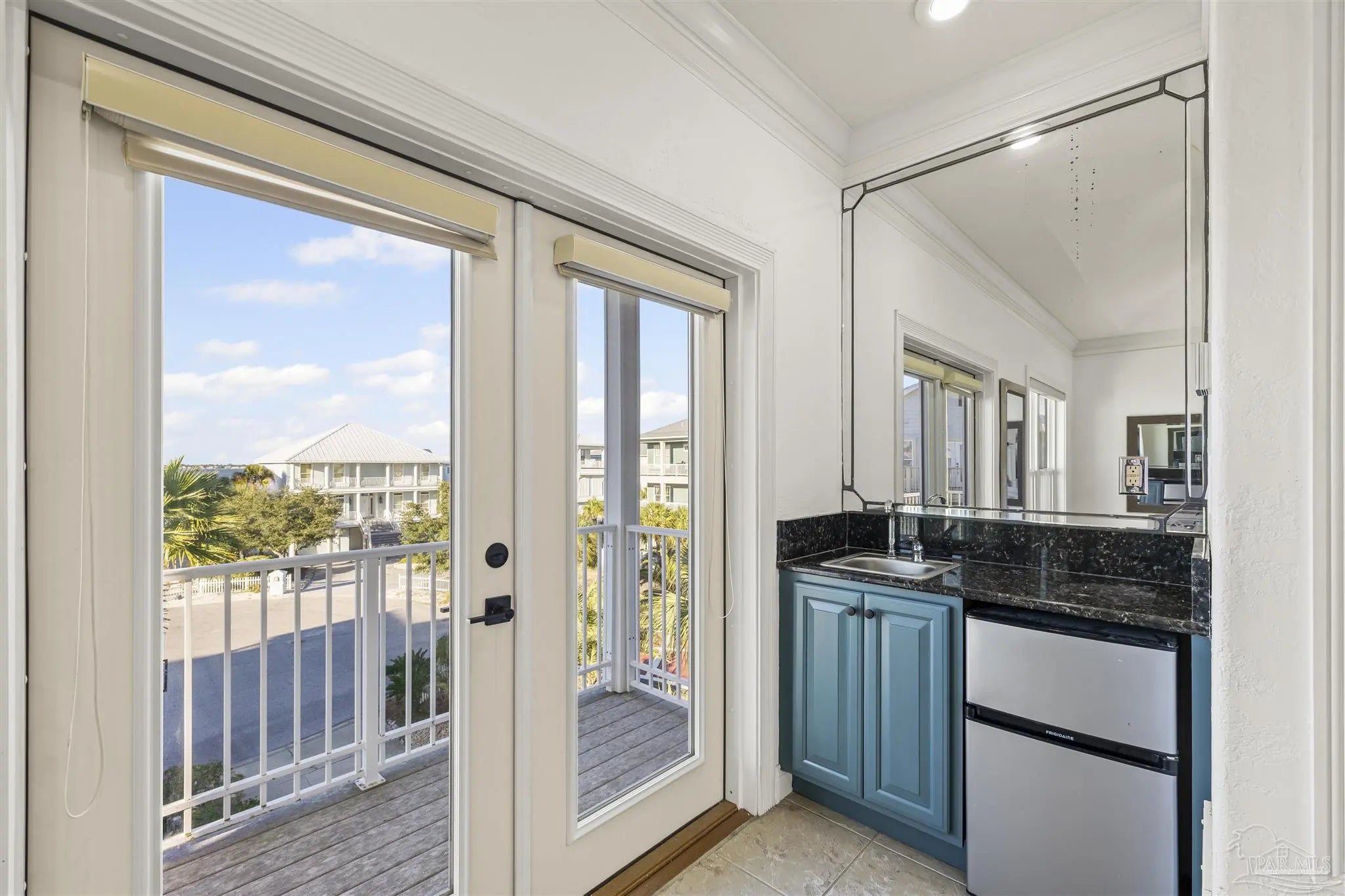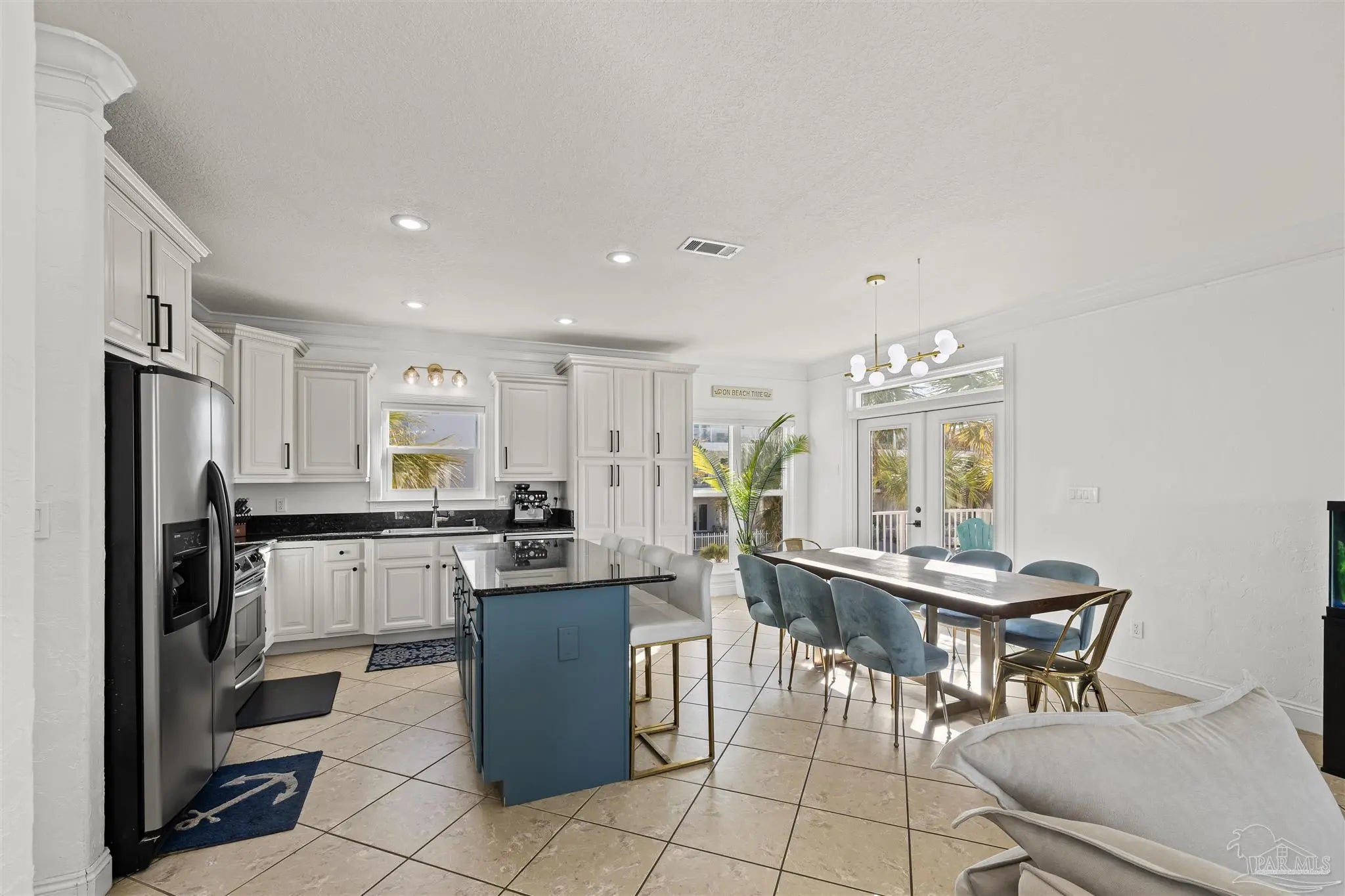 Beautifully updated and move-in ready, 22 Seashore Dr offers a rare opportunity to own a waterview retreat in the exclusive Seashore Village community of Pensacola Beach. Nestled on a quiet cul-de-sac just steps from the Gulf and Santa Rosa Sound, this 4-bedroom, 3-bathroom home blends coastal charm with thoughtful upgrades and panoramic water views. Built in 2002 and meticulously maintained, the home features hurricane-rated windows, a metal roof and a freshwater well for irrigation ensuring peace of mind and low-maintenance living. Step inside to an open-concept main level where the kitchen, dining, and living areas flow seamlessly, all oriented to capture stunning sound and Gulf views. The spacious master suite is a true sanctuary, complete with a private balcony, wet bar, and a spa-like bath with a jetted tub. The third-floor laundry room adds everyday convenience, while the oversized garage has plenty of room for a workshop, ample storage, and a bay large enough for boat and golf cart storage. Outdoor living is elevated with access to a private sound-side beach and dock, all exclusive to Seashore Village residents. Enjoy morning walks across the street to the unobstructed Gulf, or walk along the sound to nearby Portofino Island Resort amenities—optional membership includes five clay tennis courts, indoor and outdoor pools, a state-of-the-art gym, and on-site dining. With a no short-term rental policy, Seashore Village maintains a serene, residential atmosphere ideal for full-time living or a second home. Zoned for one of the nation’s top-rated Blue Ribbon schools, this home offers both luxury and lifestyle in one of Pensacola Beach’s most desirable enclaves.