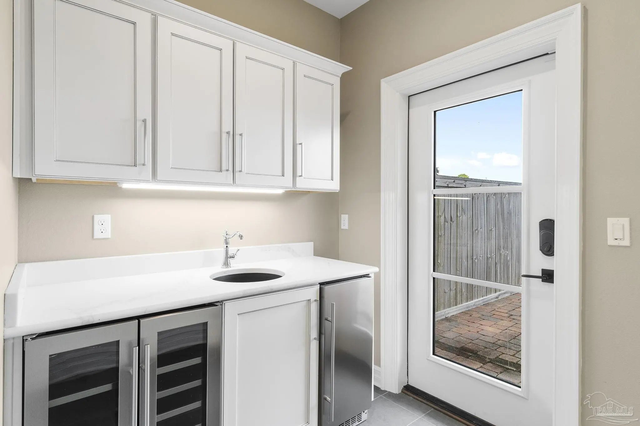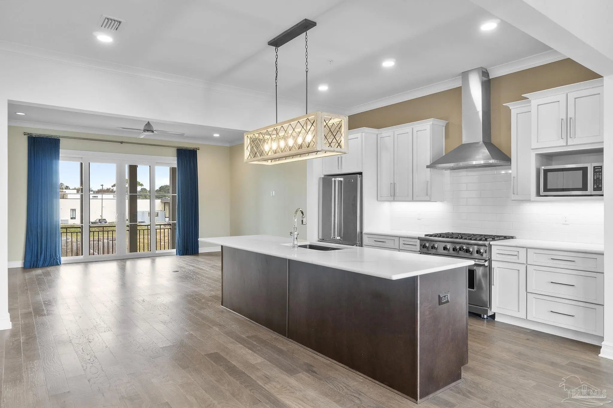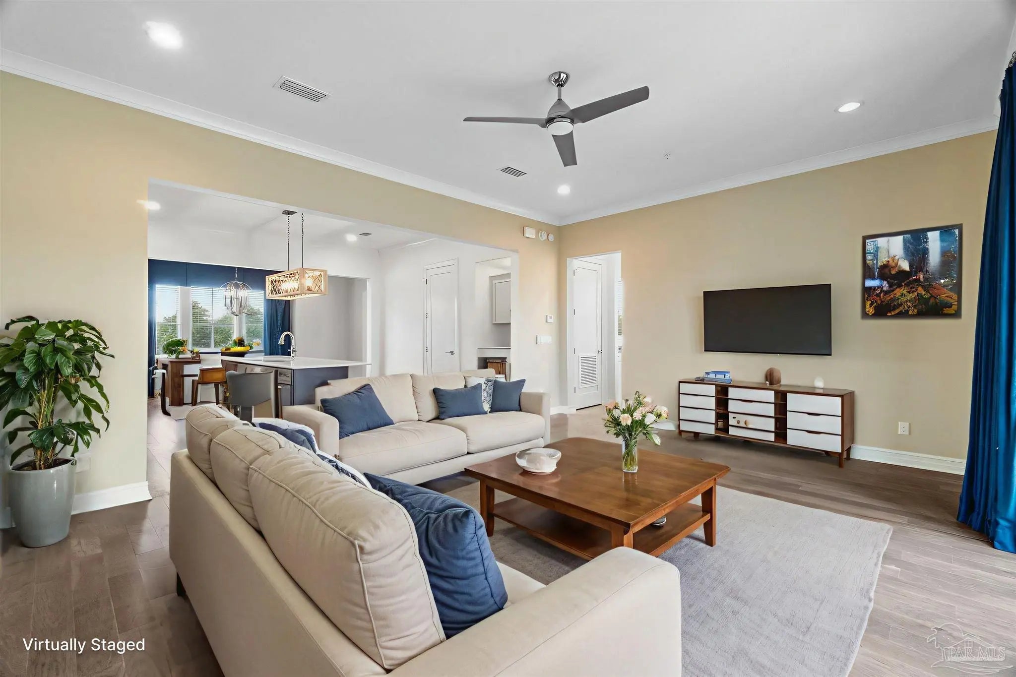 Located in the heart of downtown Pensacola, this beautifully updated three-story residence offers walkable access to the city’s best dining, boutiques, bars, and local markets. Designed for both comfort and convenience, the home showcases refined finishes and intentional design. The first floor opens to a spacious living area that connects to a large enclosed patio, perfect for entertaining or relaxing year-round, with a wet bar that makes indoor-outdoor hosting effortless. On the second floor, the kitchen serves as the centerpiece of the home with a large island that doubles as a breakfast bar. It also includes a gas range and a versatile wine or coffee bar area. Custom shelving in the walk-in pantry provides exceptional storage, while a half bath, dining area, and an additional living space with access to two balconies bring both function and charm to this level. The top floor hosts the primary suite, complete with a custom walk-in closet and a light-filled bathroom featuring dual separated vanities and abundant counter space. Two additional bedrooms on the same level are spacious, each with custom closets and their own access to full baths. The home also offers an elevator, custom window treatments, and decorative lighting throughout, ensuring both comfort and style. A large two-car garage with extra storage adds practicality to this move-in-ready home. Blending modern design with an unbeatable location, 316 W Romana St embodies the best of downtown Pensacola living.