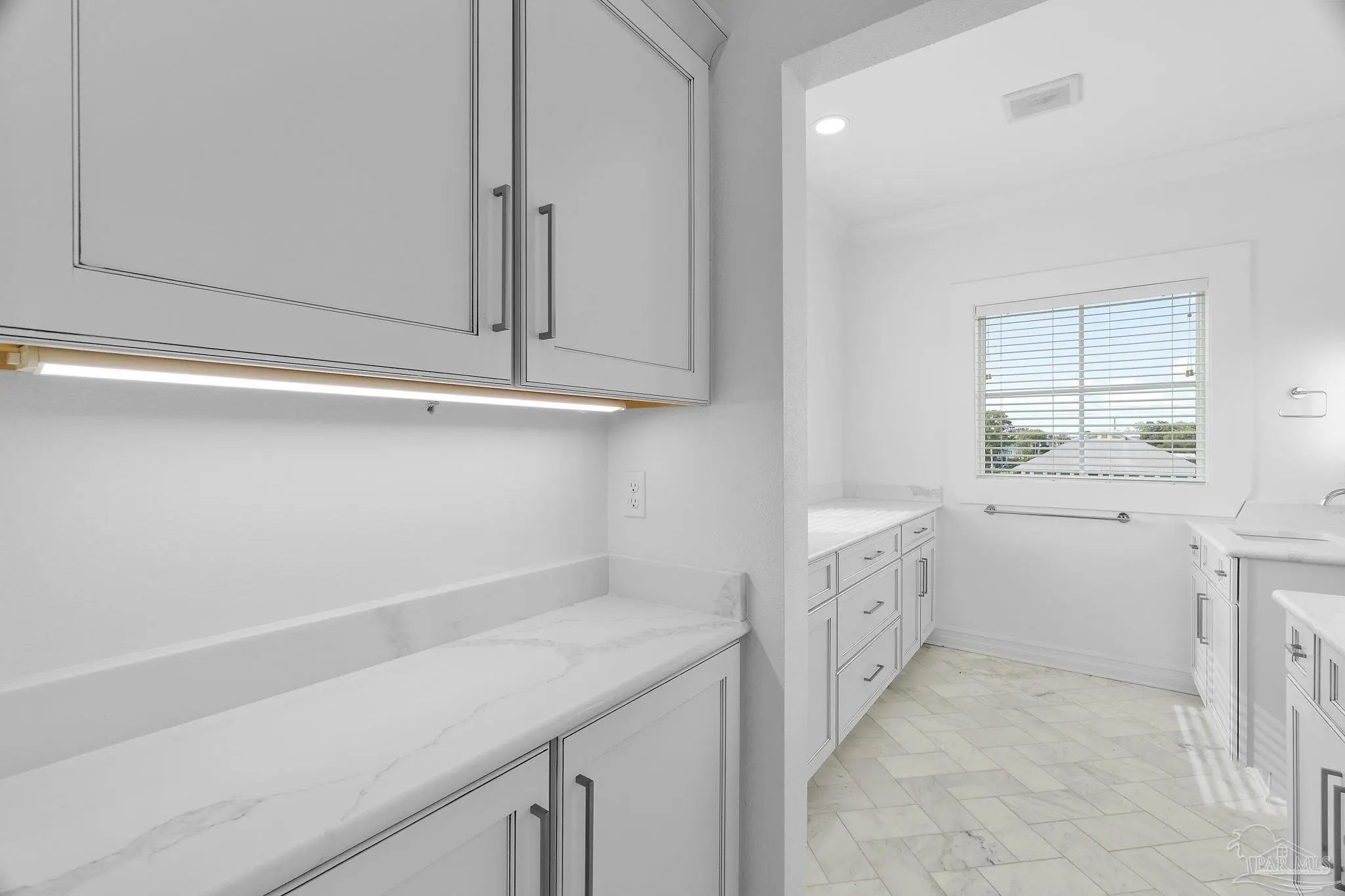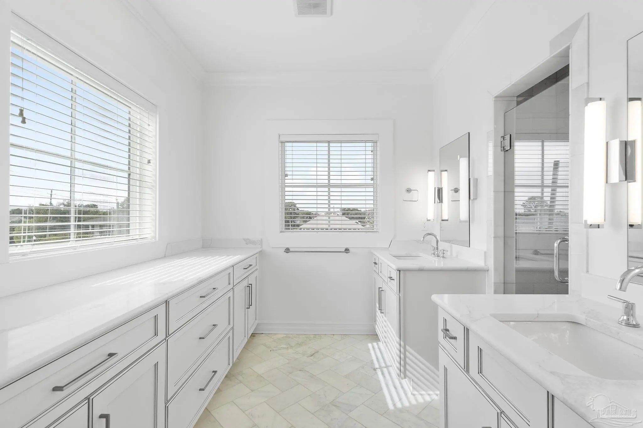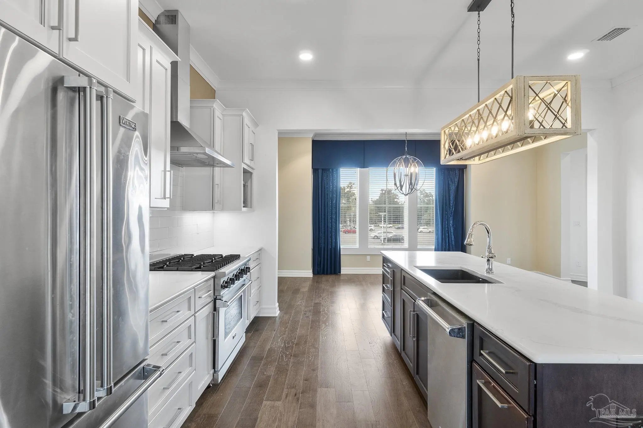 Located in the heart of downtown Pensacola, this beautifully updated three-story residence offers walkable access to the city’s best dining, boutiques, bars, and local markets. Designed for both comfort and convenience, the home showcases refined finishes and intentional design. The first floor opens to a spacious living area that connects to a large enclosed patio, perfect for entertaining or relaxing year-round, with a wet bar that makes indoor-outdoor hosting effortless. On the second floor, the kitchen serves as the centerpiece of the home with a large island that doubles as a breakfast bar. It also includes a gas range and a versatile wine or coffee bar area. Custom shelving in the walk-in pantry provides exceptional storage, while a half bath, dining area, and an additional living space with access to two balconies bring both function and charm to this level. The top floor hosts the primary suite, complete with a custom walk-in closet and a light-filled bathroom featuring dual separated vanities and abundant counter space. Two additional bedrooms on the same level are spacious, each with custom closets and their own access to full baths. The home also offers an elevator, custom window treatments, and decorative lighting throughout, ensuring both comfort and style. A large two-car garage with extra storage adds practicality to this move-in-ready home. Blending modern design with an unbeatable location, 316 W Romana St embodies the best of downtown Pensacola living.