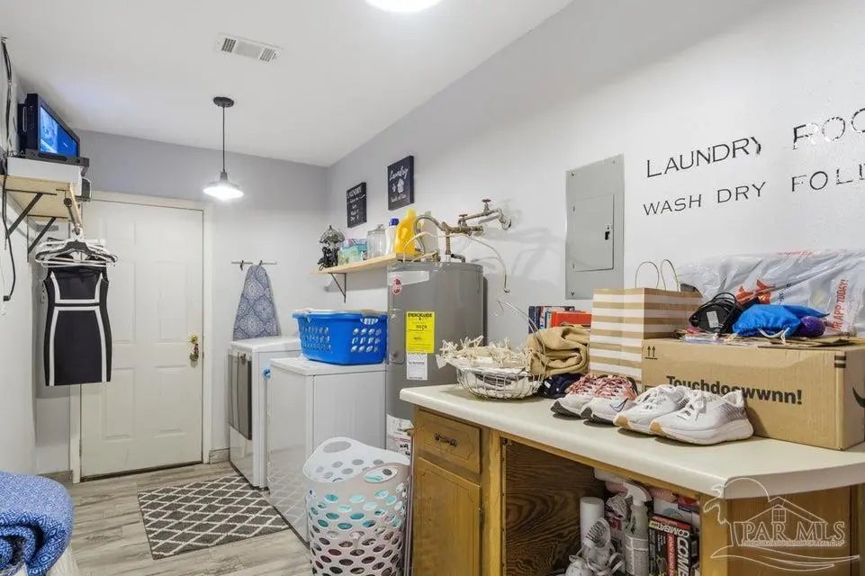 Charming 3-Bedroom Brick Home on a Corner Lot - Prime Location! Welcome to this beautifully maintained three-bedroom, two-bath brick home nestled on a spacious corner lot in a highly desirable area. Just minutes from the base and hospital, and surrounded by a variety of shops, restaurants, and essential services, this home offers both comfort and convenience. Grand foyer featuring an elegant chandelier, setting the tone for the rest of the home. The living room boasts a stunning wood-burning fireplace framed in brick, crown molding, recessed lighting, and a second chandelier for added charm. Enjoy meals in the formal dining room with bay windows that bring in natural light. The kitchen is a chef's dream with granite countertops, a deep sink, stainless steel appliances, wood cabinetry, and a walk-in pantry with a stylish barn door. A spacious laundry room adds functionality, while the sunroom, a recent addition, features vaulted ceilings, a ceiling fan, bay windows, and wood French doors for privacy, making it a perfect retreat. Throughout the home, you'll find tile flooring, ceiling fans in each bedroom, and new doors throughout. The primary bathroom has been fully renovated with a modern shower with jets, tile walls, a quartz sink, and a walk-in closet. Additional upgrades include a new roof, a back porch, a large shed for extra storage, and a surveillance system for peace of mind. BUYER or BUYERS REPRESENTATIVE to verify all measurements