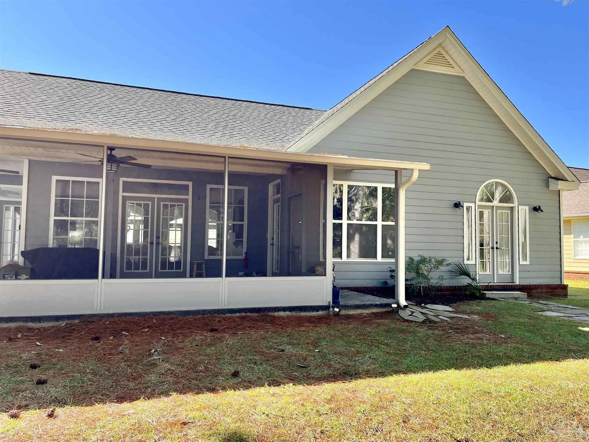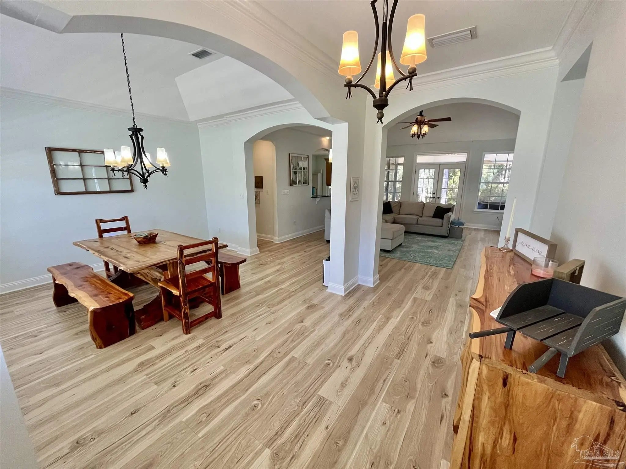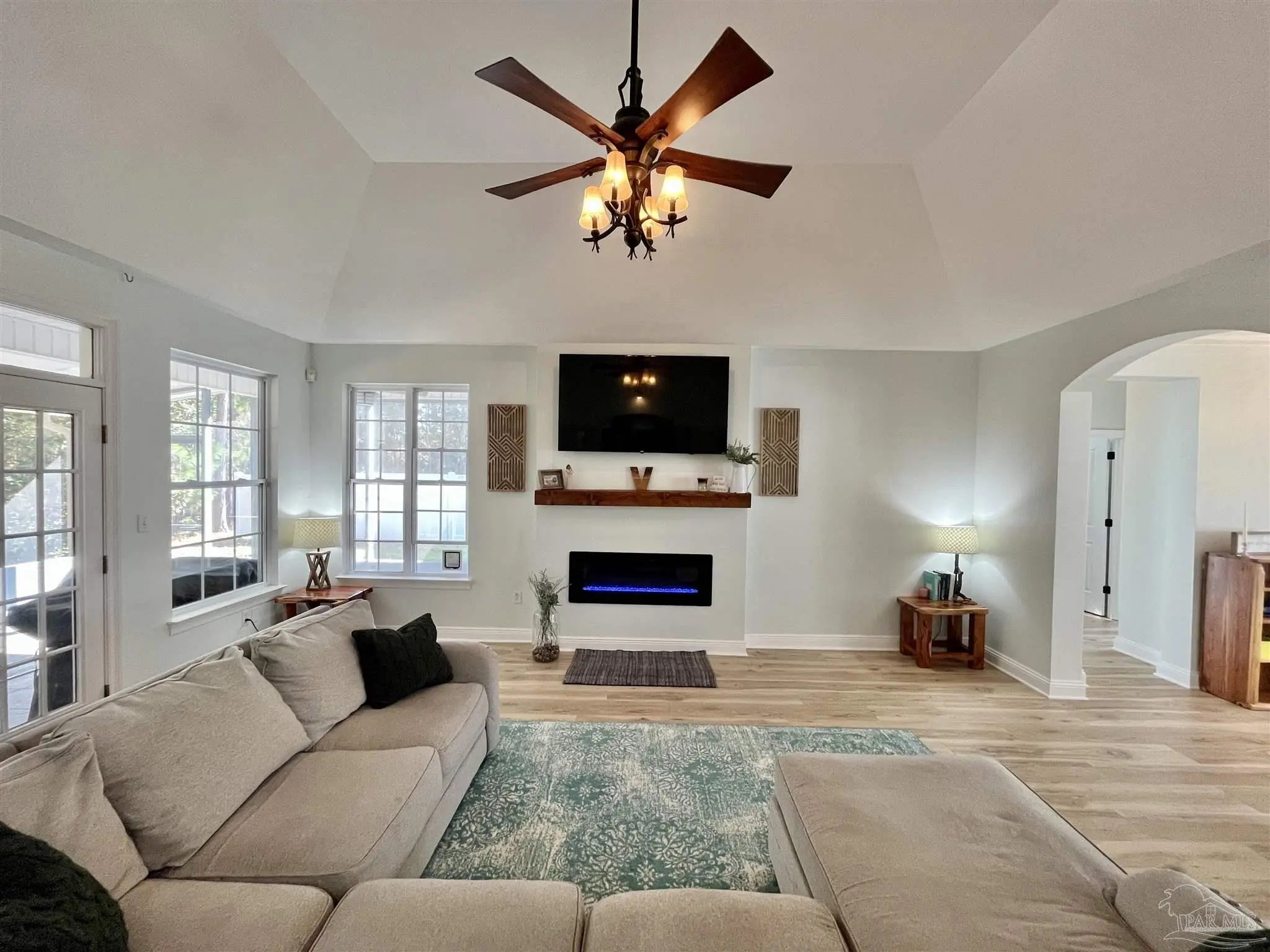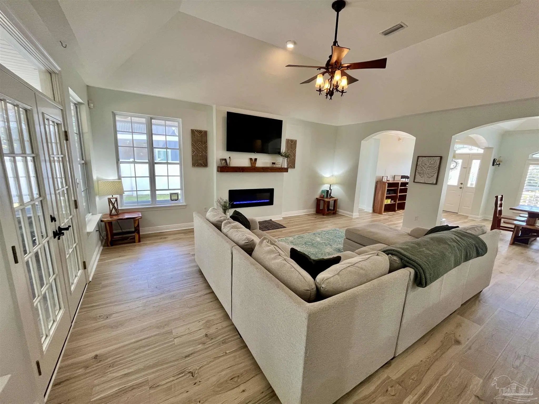 Come see this large, charming home, located near Perdido Key in the highly desired Windward Cove neighborhood. This 4 bedroom, 2 bathroom, 2388 sqft house offers all the space a family needs, from the large gathering rooms to the preserve-lined back yard. Windward Cove is a gated, waterfront community that sits right on Perdido Bay and adjoins the Bayou Tarkiln State Park, offering you a plethora of nature right out your back door and all around the community. The home was built in 2005 and includes many high end finishings throughout, including vaulted ceilings, crown molding, granite counters, upgraded cabinets, and more. In 2024, a new roof was put on, the interior repainted, new vinyl floors installed, and the living was renovated with a brand new electric fireplace and mantle. The HVAC was fully replaced in 2021, and includes a transferable 10 year parts warranty. The home provides a large master suite with double walk-in closets, plus 2 additional bedrooms and full bathroom across the home, AND a large bonus room over the garage, perfect for a guest bedroom, office, game room, etc. The home also offers a large 2 car garage and a sweeping, expanded back porch, looking out to the woods. Watch from the comfort of your porch or dinette windows as birds, deer, and more pass by. When you're ready to venture out, the neighborhood offers several fun options. Fish in the stocked neighborhood ponds, meet up with neighbors at the community pool, or go watch the sunset on the pier! The pier is accessible to all residents, offering steps down to the water, a kayak launch, and benches at the end for relaxing or fishing. Boats slips are private and can be purchased separately as they become available. Of course, just outside the Windward Gates, you are minutes from Perdido Key Beaches, the Naval Base, and many wonderful dining locations, groceries, and more. Don't miss this one of a kind home!