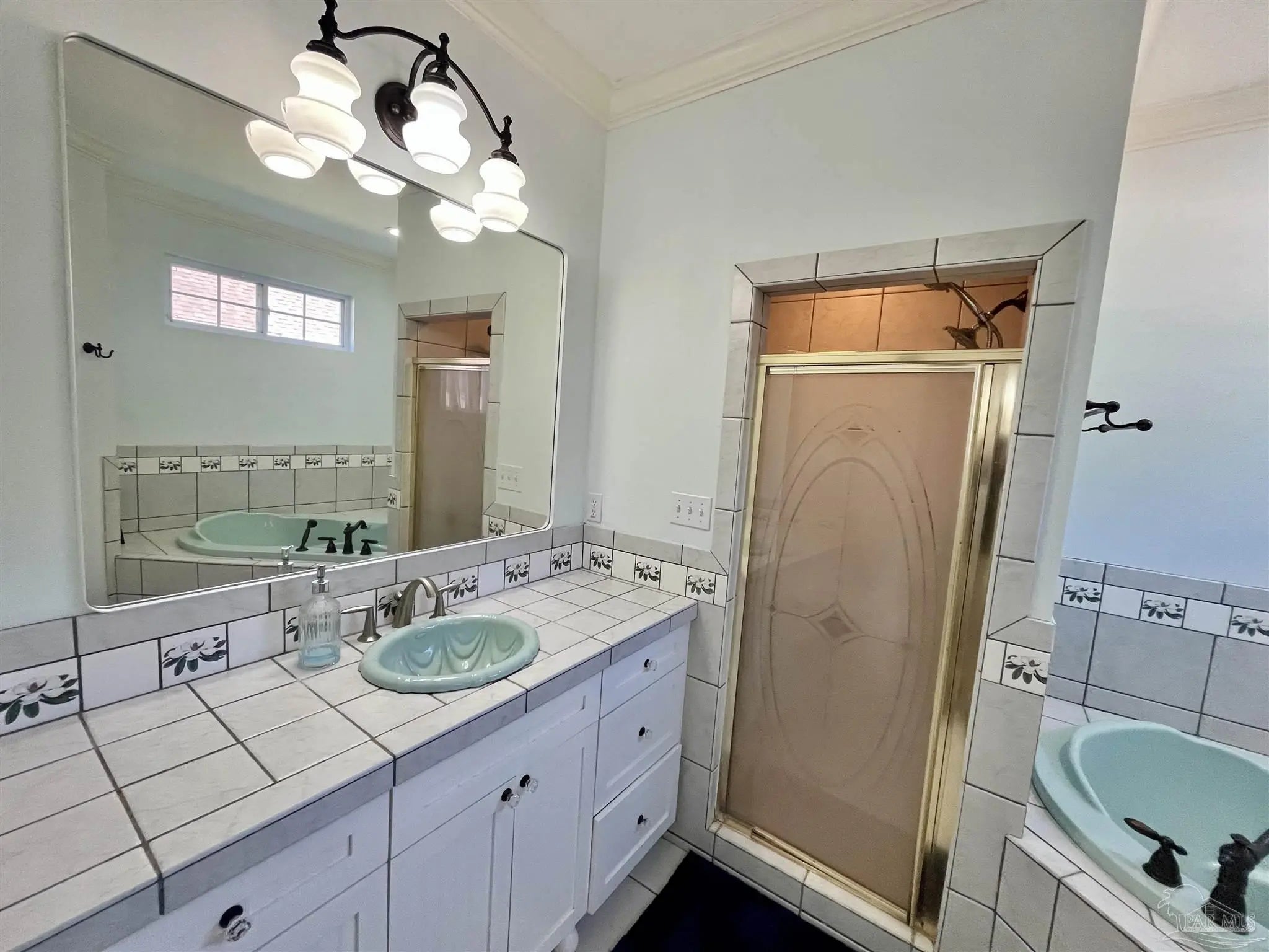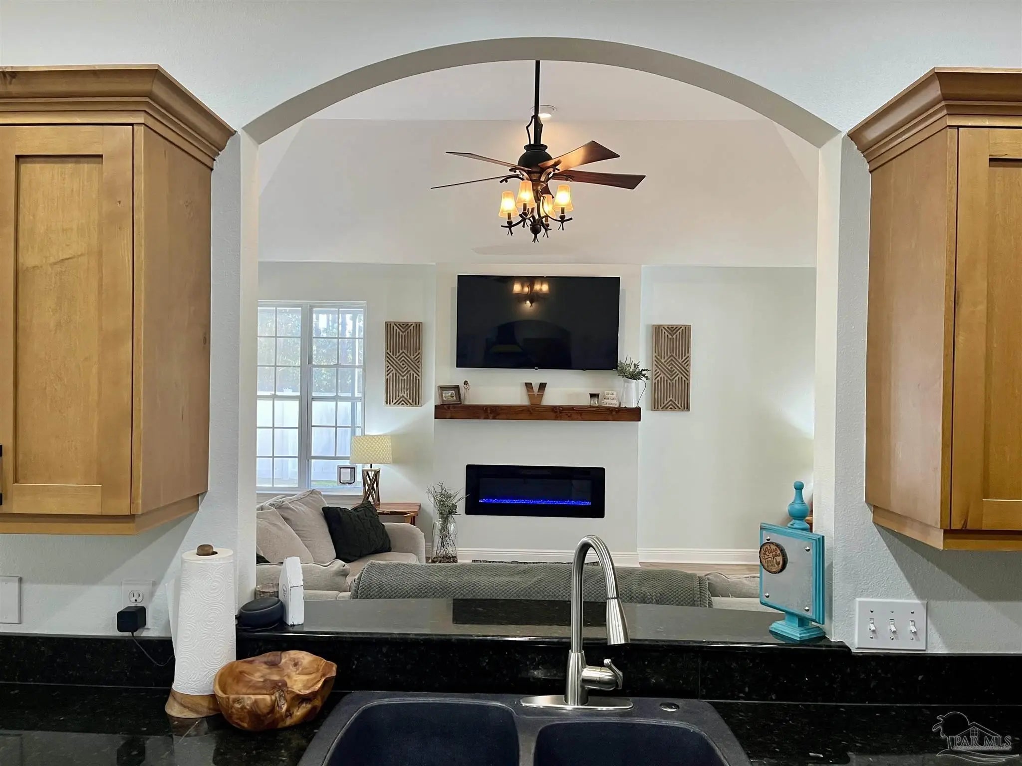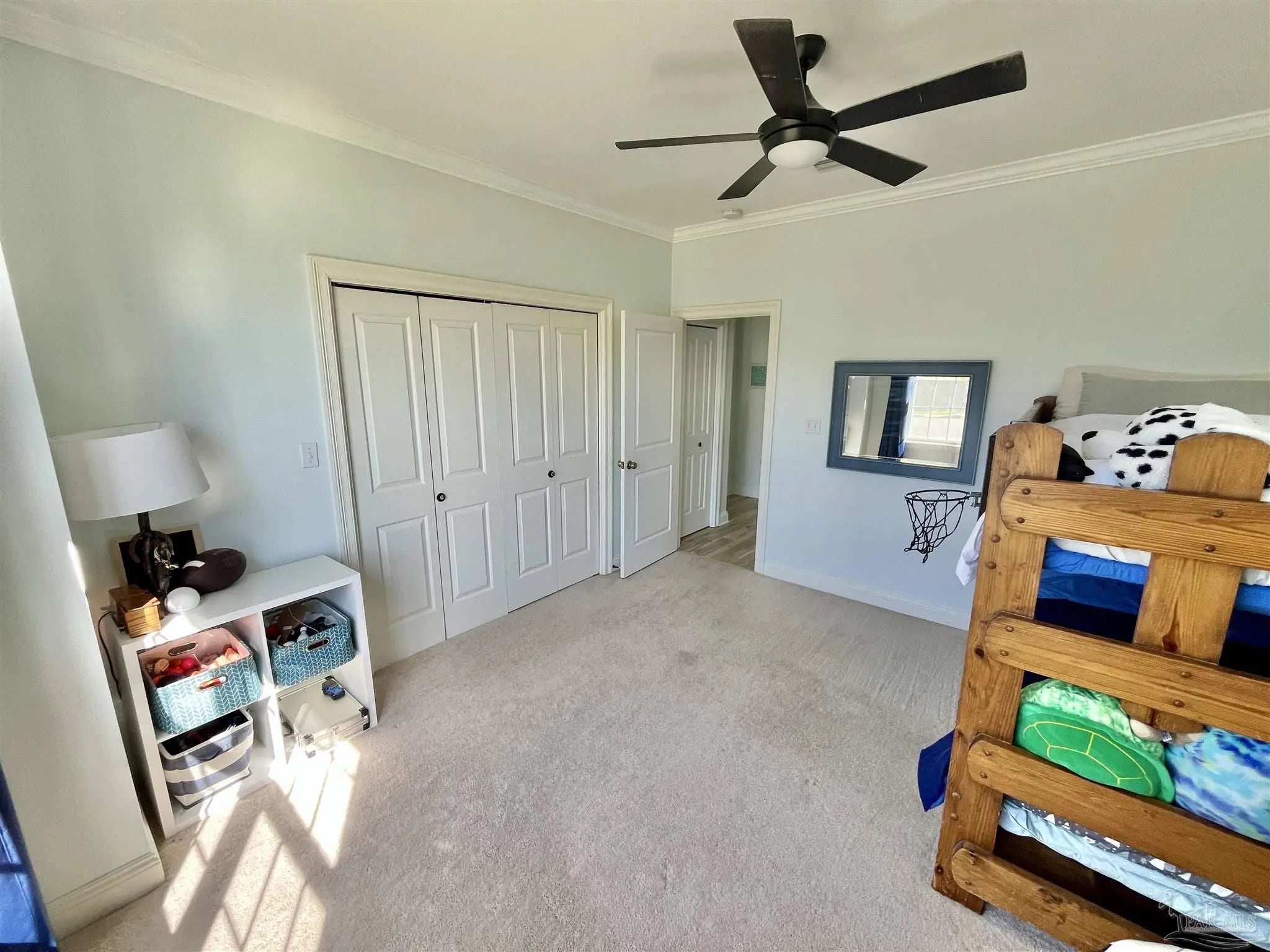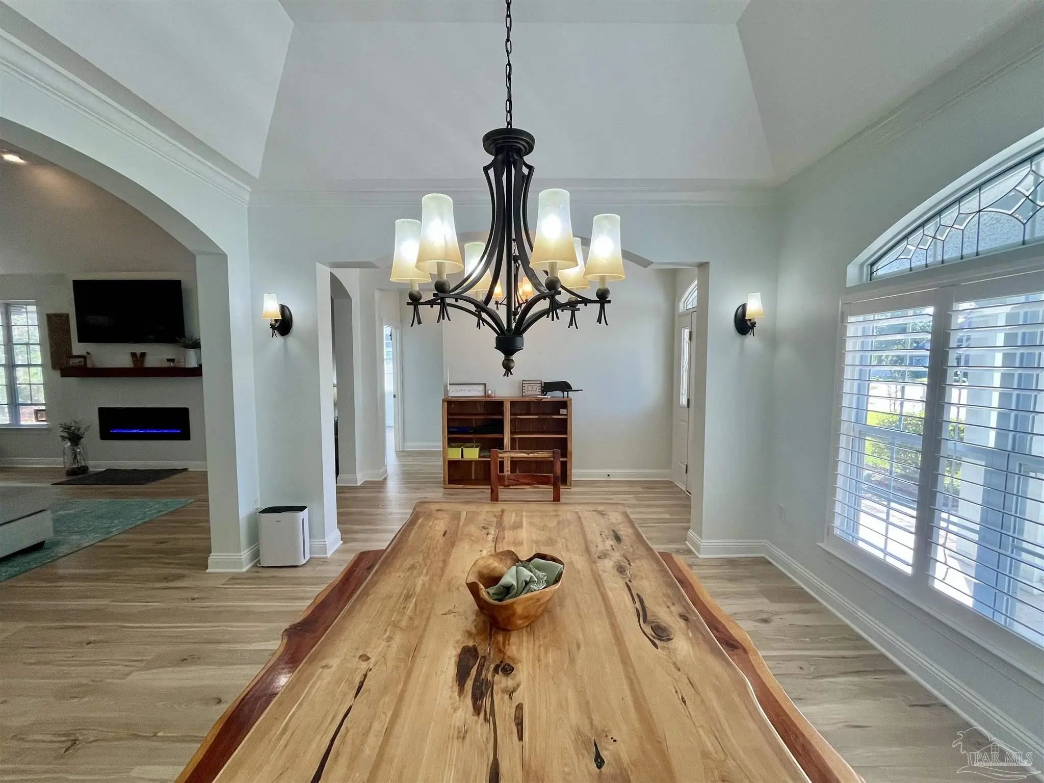 Come see this large, charming home, located near Perdido Key in the highly desired Windward Cove neighborhood. This 4 bedroom, 2 bathroom, 2388 sqft house offers all the space a family needs, from the large gathering rooms to the preserve-lined back yard. Windward Cove is a gated, waterfront community that sits right on Perdido Bay and adjoins the Bayou Tarkiln State Park, offering you a plethora of nature right out your back door and all around the community. The home was built in 2005 and includes many high end finishings throughout, including vaulted ceilings, crown molding, granite counters, upgraded cabinets, and more. In 2024, a new roof was put on, the interior repainted, new vinyl floors installed, and the living was renovated with a brand new electric fireplace and mantle. The HVAC was fully replaced in 2021, and includes a transferable 10 year parts warranty. The home provides a large master suite with double walk-in closets, plus 2 additional bedrooms and full bathroom across the home, AND a large bonus room over the garage, perfect for a guest bedroom, office, game room, etc. The home also offers a large 2 car garage and a sweeping, expanded back porch, looking out to the woods. Watch from the comfort of your porch or dinette windows as birds, deer, and more pass by. When you're ready to venture out, the neighborhood offers several fun options. Fish in the stocked neighborhood ponds, meet up with neighbors at the community pool, or go watch the sunset on the pier! The pier is accessible to all residents, offering steps down to the water, a kayak launch, and benches at the end for relaxing or fishing. Boats slips are private and can be purchased separately as they become available. Of course, just outside the Windward Gates, you are minutes from Perdido Key Beaches, the Naval Base, and many wonderful dining locations, groceries, and more. Don't miss this one of a kind home!