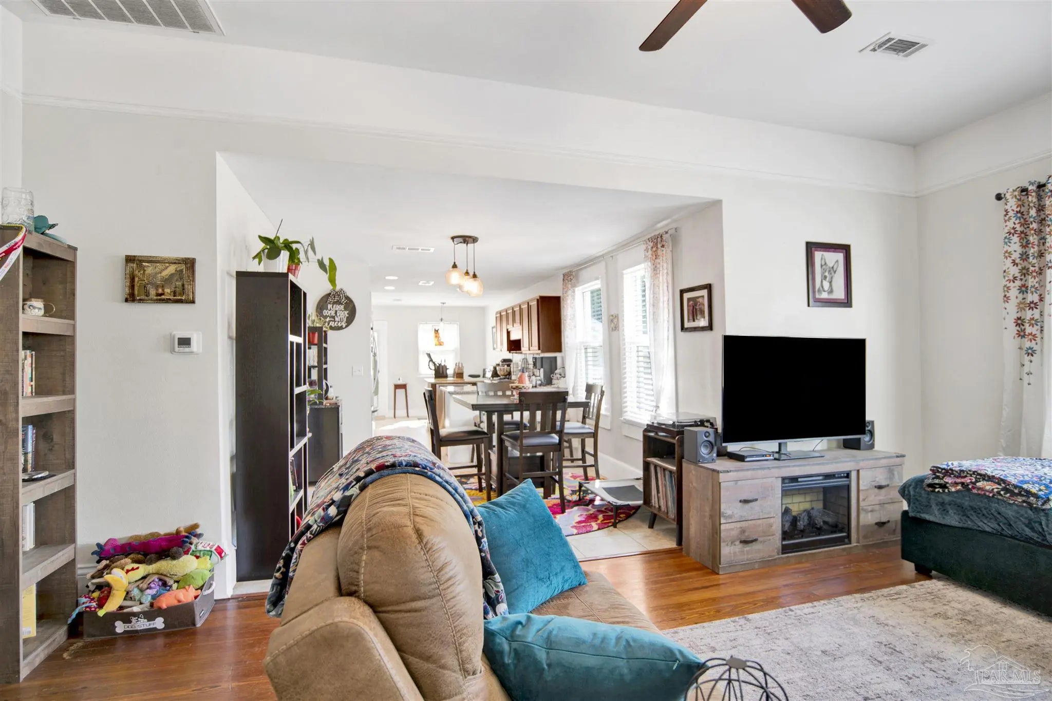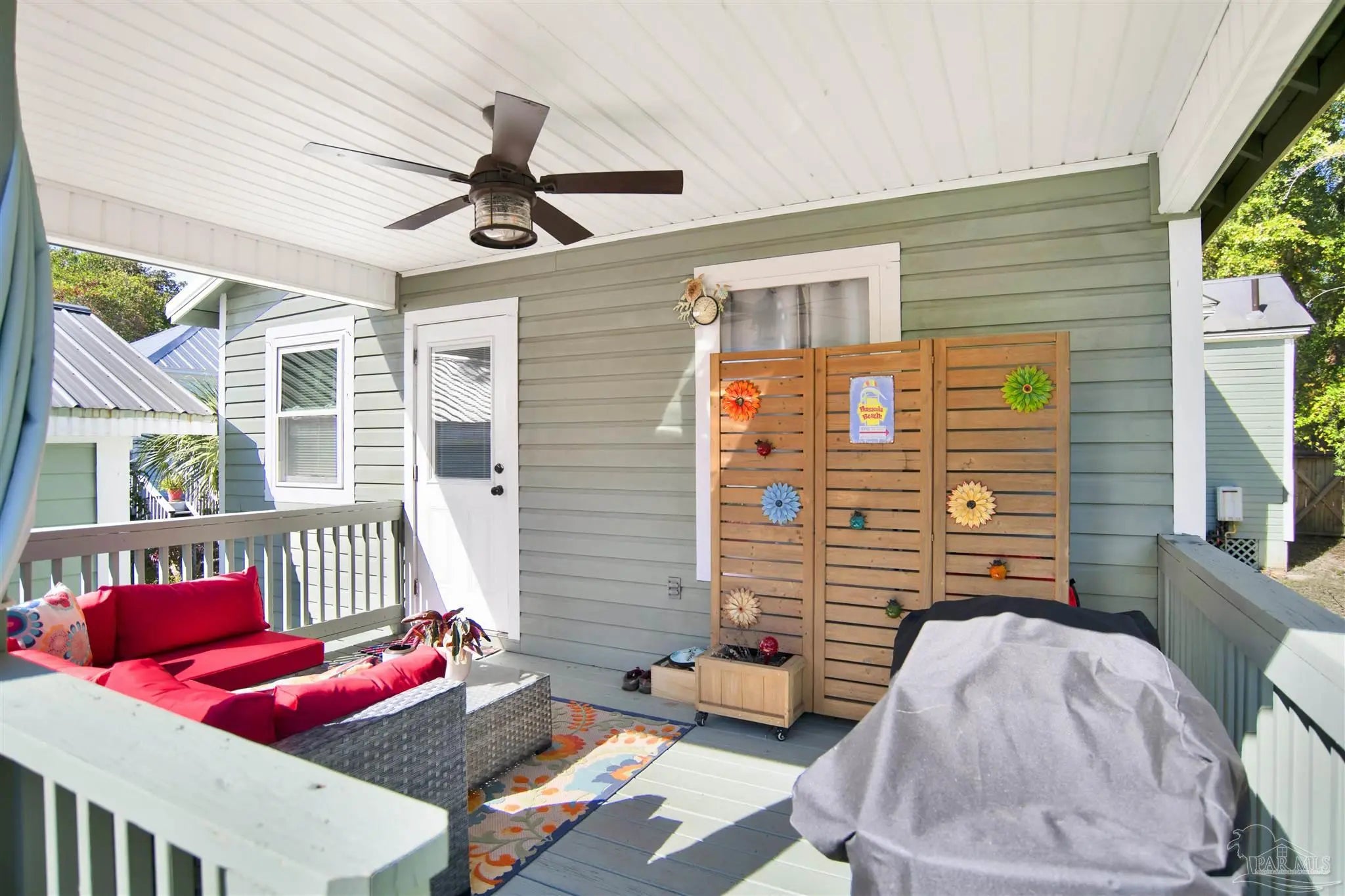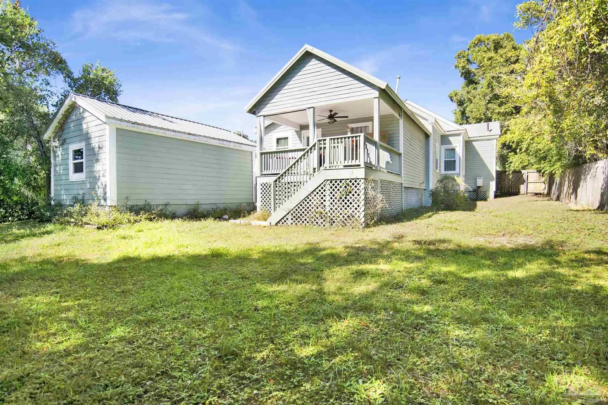 Step back in time while enjoying modern comforts in this beautifully remodeled East Hill home. Built in 1916 and thoughtfully updated in 2015, this 3-bedroom, 2-bath residence exudes timeless charm and character. From the deep wrap-around front porch—perfect for relaxing and greeting neighbors—you enter a welcoming foyer featuring high ceilings and stunning hardwood floors that flow throughout much of the home. The spacious living room is filled with natural light from an abundance of windows and opens seamlessly into the dining area, which features tile flooring and connects to the updated kitchen. A true cook’s delight, the kitchen boasts granite countertops, a breakfast bar, pantry, and stainless steel appliances—including a gas stove. The split bedroom floor plan ensures privacy for the primary suite, which features cozy carpeted floors. The primary bath offers modern tile finishes, a walk-in shower, and direct access to the spacious laundry room. The two additional bedrooms are generously sized and share a charming Jack-and-Jill bath complete with tile flooring, a pedestal sink, and a classic claw-foot tub. Enjoy outdoor living on the large covered back deck overlooking a privacy-fenced backyard shaded by mature trees along the perimeter. A detached single-car garage provides extra storage and functionality. Blending vintage charm with modern updates, this East Hill treasure is move-in ready and waiting for its next lucky owner.