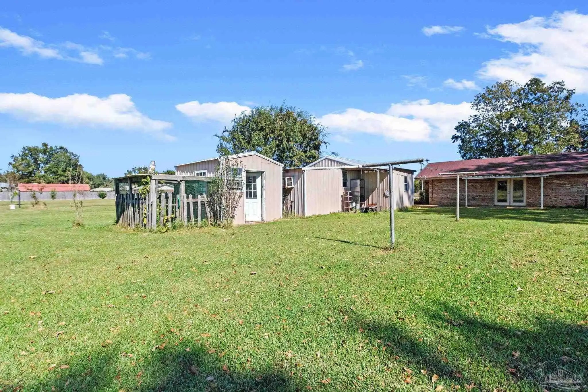 Tucked at the very end of a quiet dead-end road, this 3-bedroom, 2-bath brick home sits on about 2.5 acres of peaceful, open land surrounded by fruit trees—pecans, apples, muscadines, and scuppernongs. It’s the kind of place where mornings start with coffee on the porch and end with sunset views and the sound of crickets. Inside, you’ll find over 1,600 sq ft of comfortable living space with a warm, welcoming feel. The layout includes a formal dining room, an electric fireplace insert for cozy nights, and durable bamboo laminate flooring installed in 2019. Big upgrades have already been handled, too—new roof (2021), HVAC (2021), water heater (2021), windows (2017), and a brand-new septic system (2024)—so you can move right in and focus on enjoying your space instead of fixing it up. Out back, there’s plenty of room for your hobbies, projects, or small farm setup. The 16x38 detached garage has power and water—perfect for a workshop or extra storage—and the 30x40 pole barn offers space for a tractor, boat, or equipment. Even the chicken coop is ready and waiting if you’ve dreamed of collecting your own fresh eggs. If you’ve been searching for a home that feels private, peaceful, and still close to town, this is the one. Homes with this much land and so many updates don’t come along often. Come take a look—you’ll see why this little slice of country living is worth the wait.