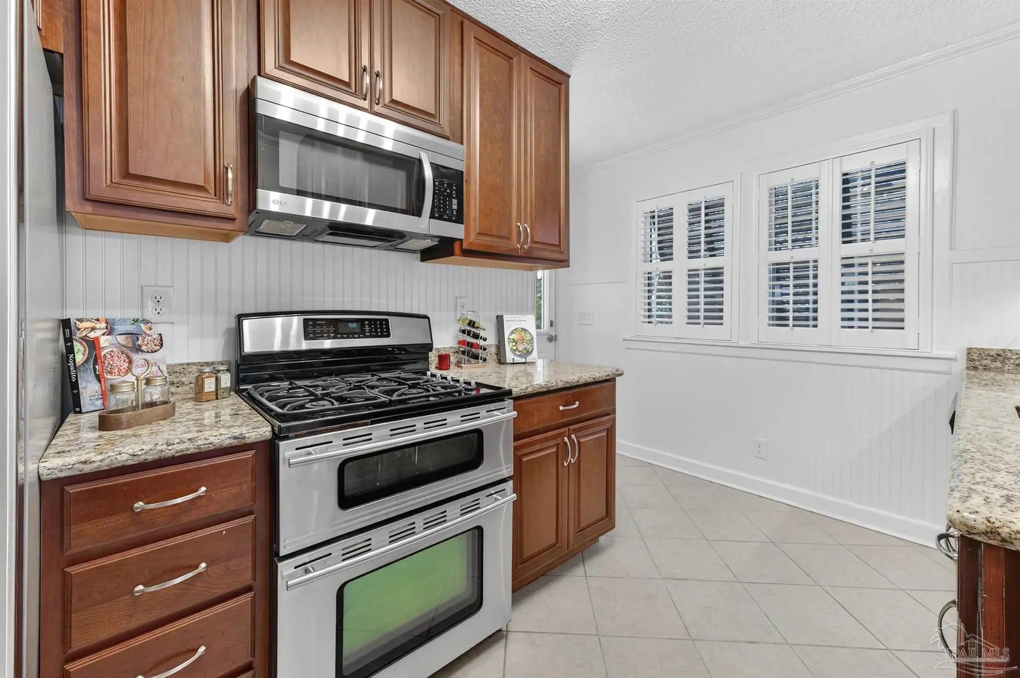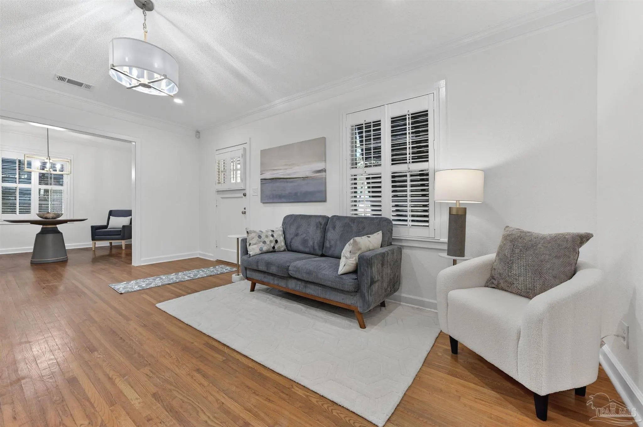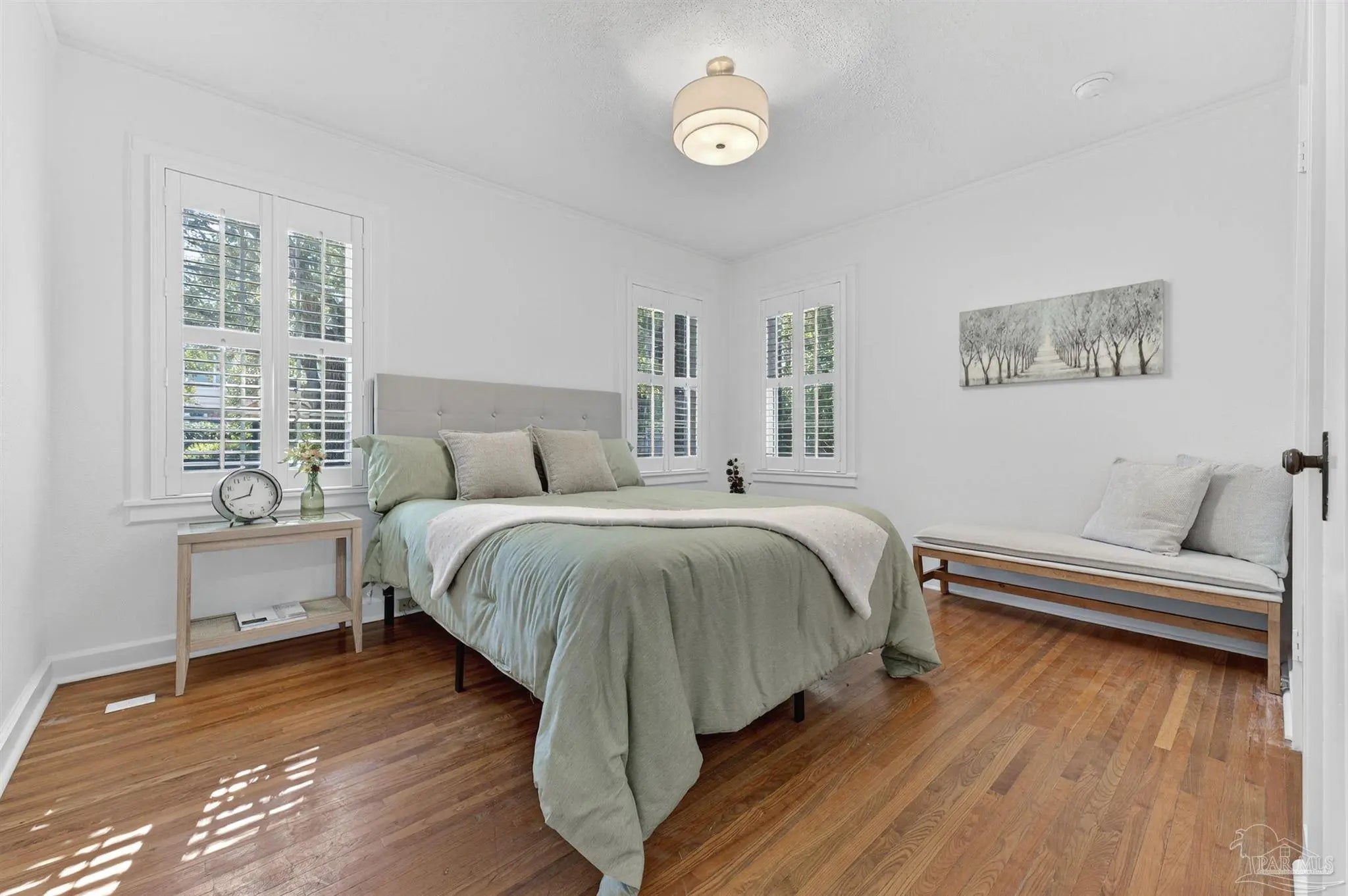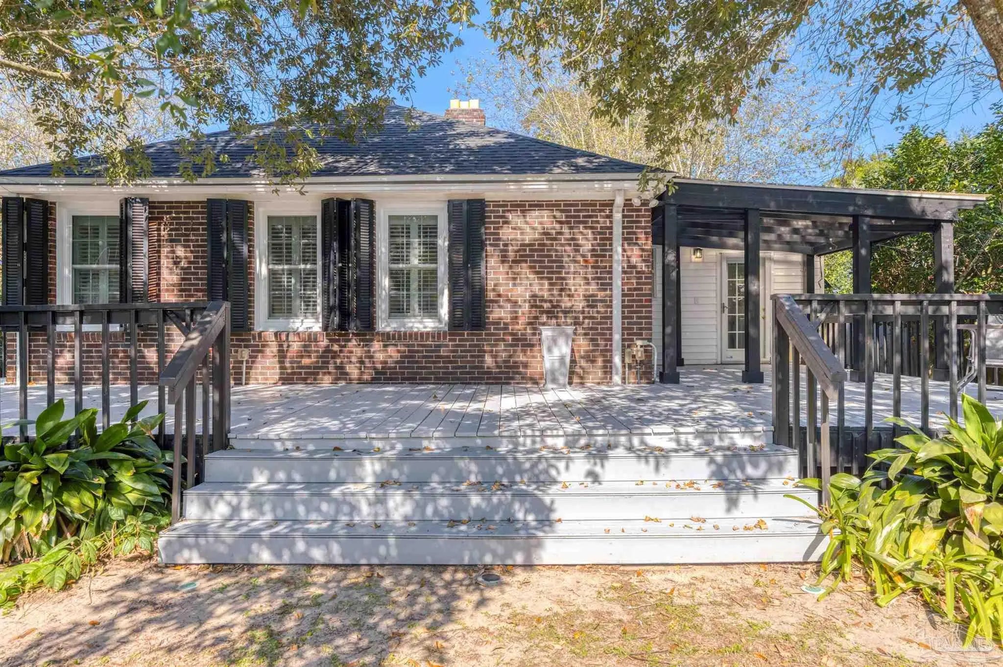 Timeless East Hill Brick Home! This beautifully maintained 1941 brick home is located in the highly sought-after East Hill neighborhood, just a short walk from Bayou Texar and Bayview Park. Offering 3 bedrooms and 2 full baths, this residence combines classic charm with thoughtful modern updates. This home features original hardwood flooring, a cozy gas fireplace, and an updated kitchen with granite countertops, a 6-burner Jenn-Air gas range, and a brand-new dishwasher. Fresh interior paint enhances every room, while the exterior has been refreshed with newly painted doors, windows, and decking. Additional improvements include new light fixtures, a complete electrical rewire, and a 1-car (269 sq. ft.) garage with electric and water, complemented by an attached carport. Outdoor living is easy to enjoy on the expansive 680 sq. ft. back deck—freshly painted and wired for a hot tub—overlooking the backyard while birdwatching. If you need more interior space, consider an addition to the back of the home or transforming the garage into an apartment. Notable upgrades include a Briggs & Stratton natural gas generator (installed 2022), new Lexon windows, and a new roof on both the home and garage (installed December 2023). For added protection and efficiency, Bahama shutters and Therma-Tru storm doors were installed in 2016, along with a Rain Bird sprinkler system. A transferable Sentricon pest control contract is paid through November 2026. Ideally located just blocks from Bayview Park and Bayou Texar, residents can enjoy tennis, kayaking, paddleboarding, or launching a boat just minutes from home. A short drive to the beautiful beaches at Pensacola Beach, while having the convenience of being close to shopping, amenities, & the airport.
