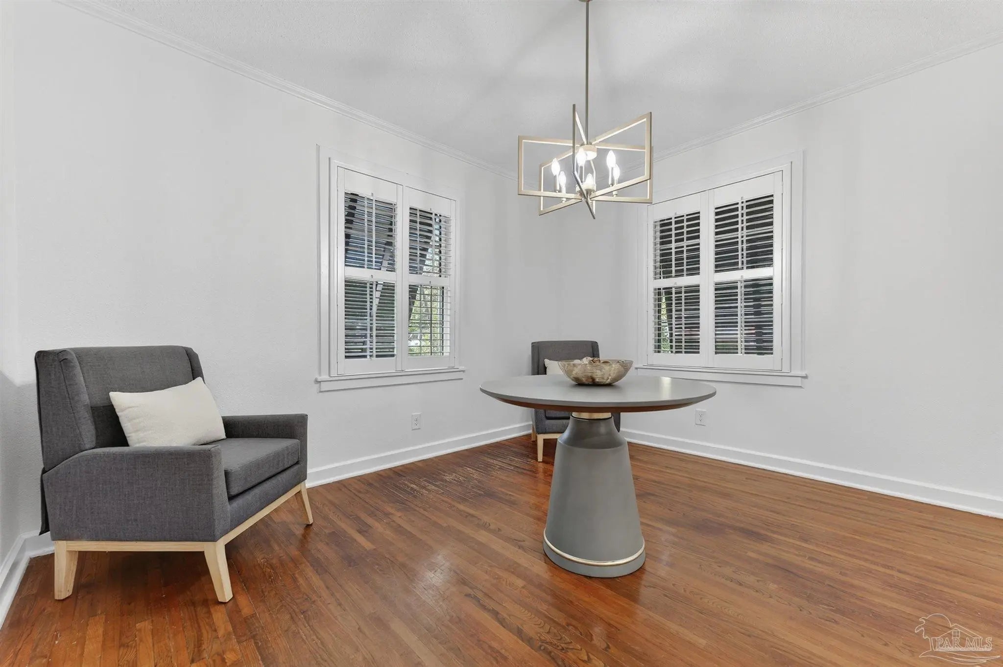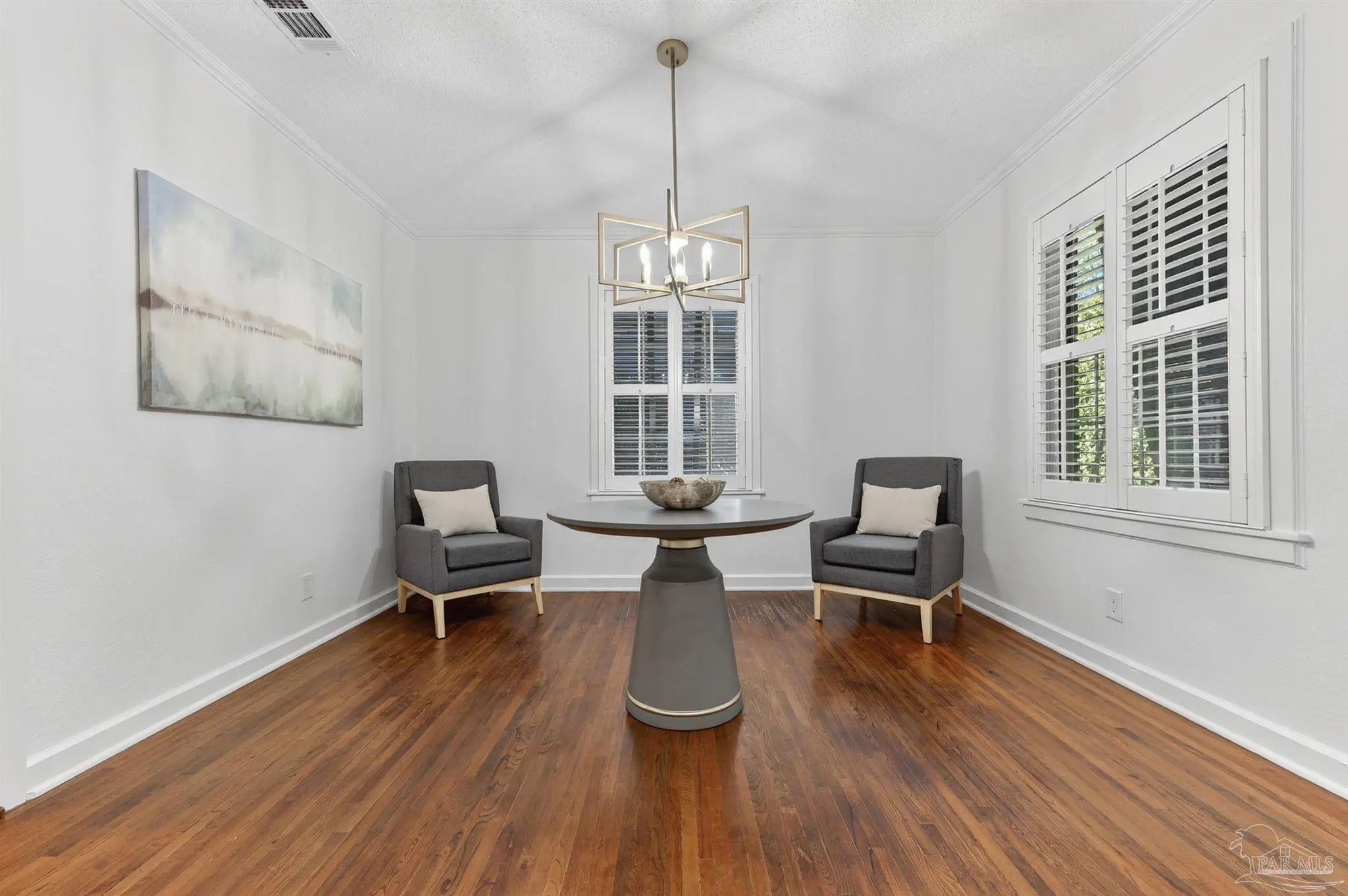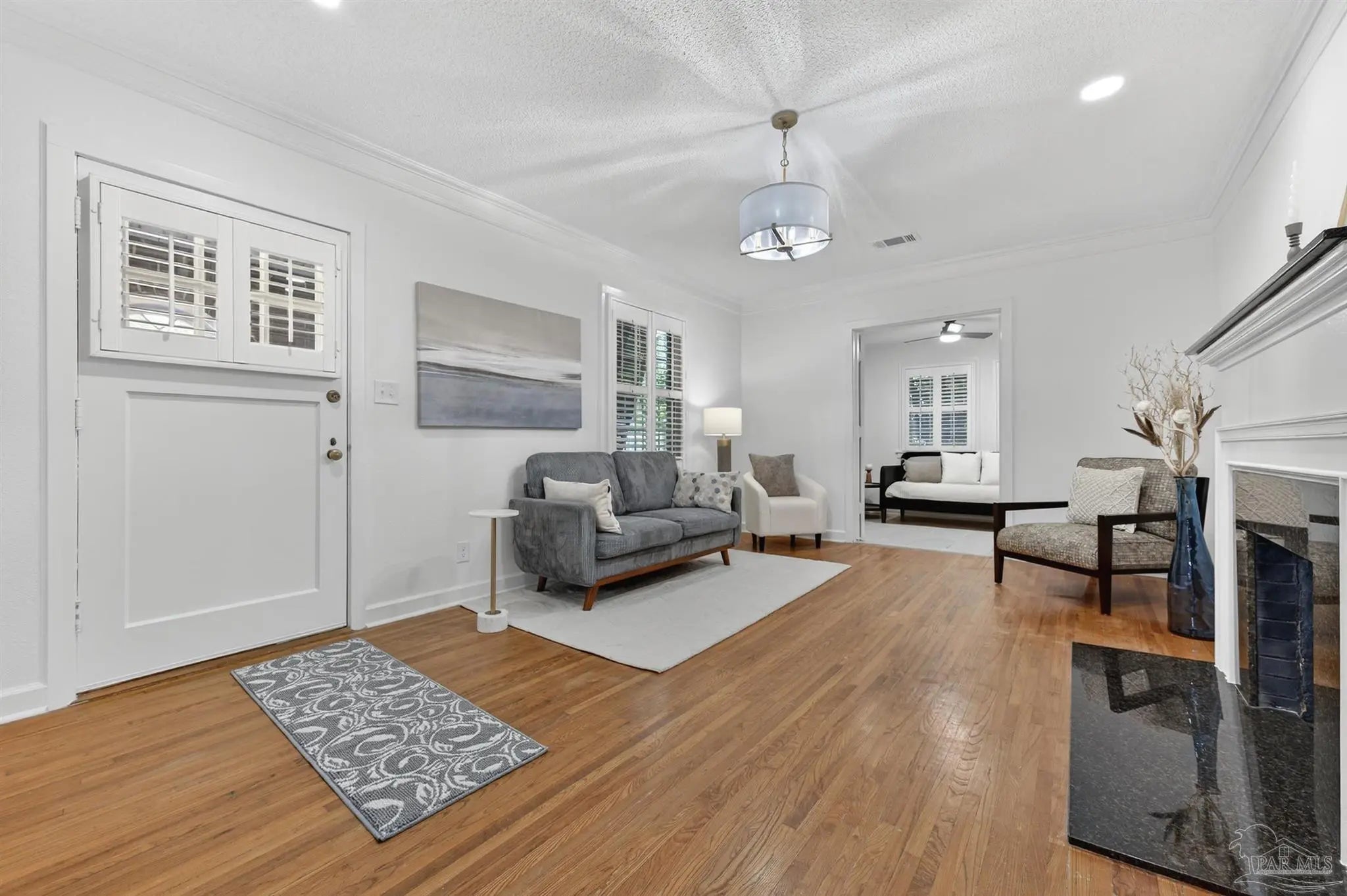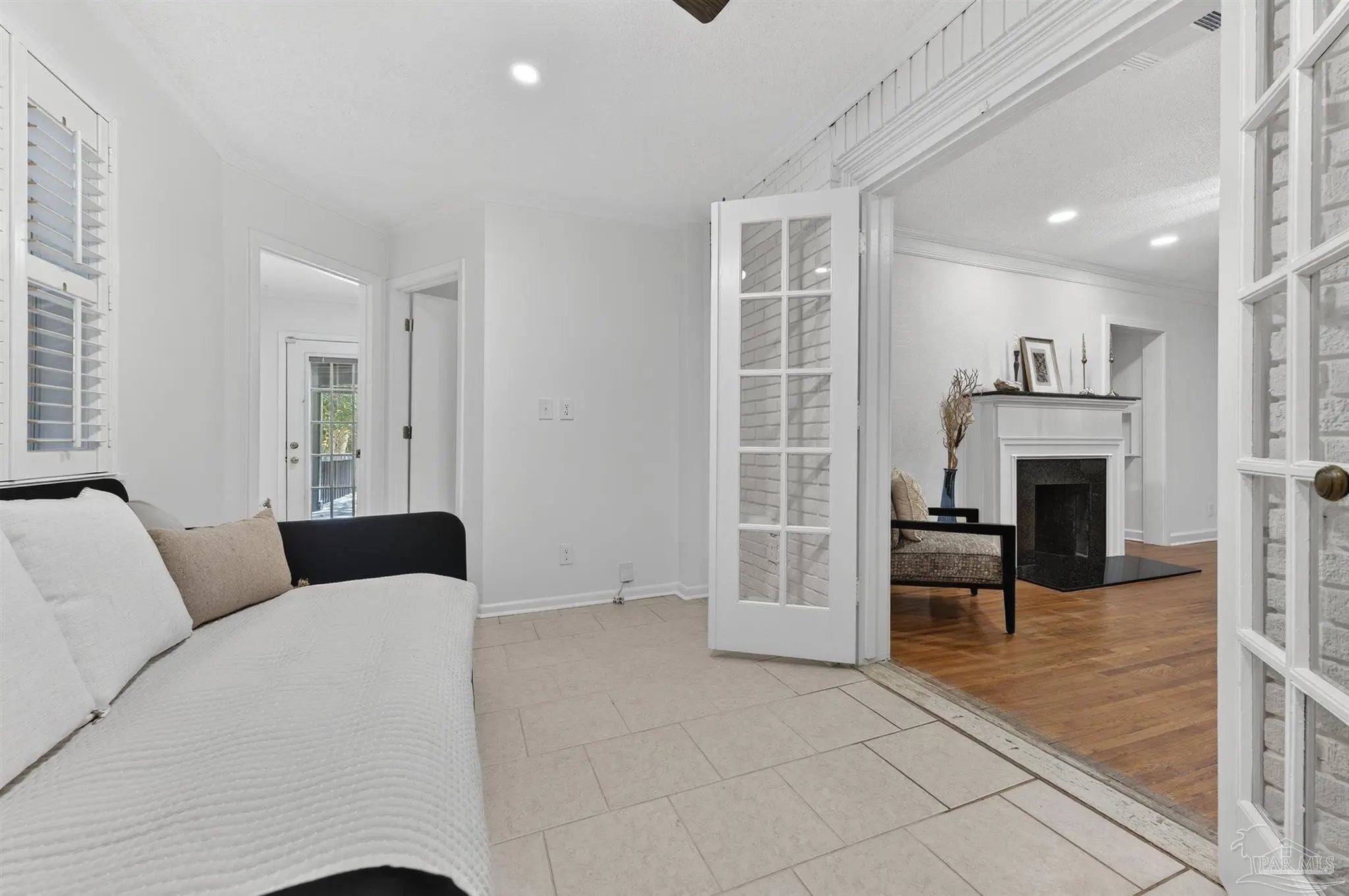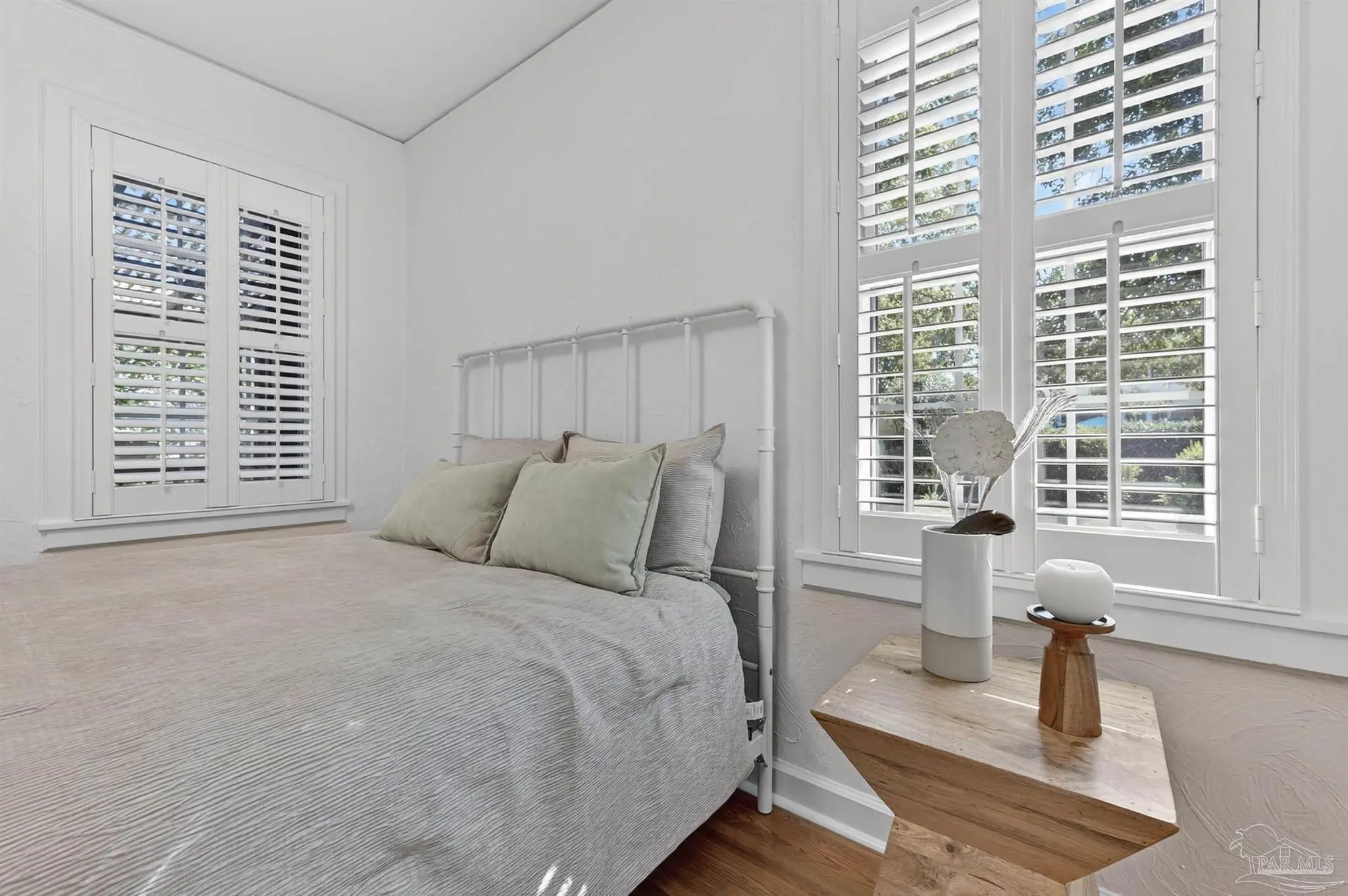 Timeless East Hill Brick Home! This beautifully maintained 1941 brick home is located in the highly sought-after East Hill neighborhood, just a short walk from Bayou Texar and Bayview Park. Offering 3 bedrooms and 2 full baths, this residence combines classic charm with thoughtful modern updates. This home features original hardwood flooring, a cozy gas fireplace, and an updated kitchen with granite countertops, a 6-burner Jenn-Air gas range, and a brand-new dishwasher. Fresh interior paint enhances every room, while the exterior has been refreshed with newly painted doors, windows, and decking. Additional improvements include new light fixtures, a complete electrical rewire, and a 1-car (269 sq. ft.) garage with electric and water, complemented by an attached carport. Outdoor living is easy to enjoy on the expansive 680 sq. ft. back deck—freshly painted and wired for a hot tub—overlooking the backyard while birdwatching. If you need more interior space, consider an addition to the back of the home or transforming the garage into an apartment. Notable upgrades include a Briggs & Stratton natural gas generator (installed 2022), new Lexon windows, and a new roof on both the home and garage (installed December 2023). For added protection and efficiency, Bahama shutters and Therma-Tru storm doors were installed in 2016, along with a Rain Bird sprinkler system. A transferable Sentricon pest control contract is paid through November 2026. Ideally located just blocks from Bayview Park and Bayou Texar, residents can enjoy tennis, kayaking, paddleboarding, or launching a boat just minutes from home. A short drive to the beautiful beaches at Pensacola Beach, while having the convenience of being close to shopping, amenities, & the airport.