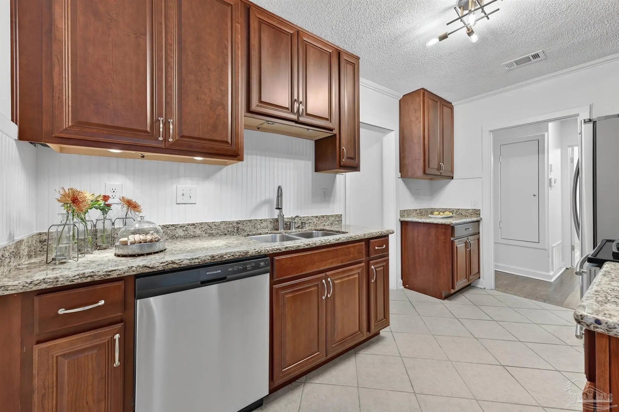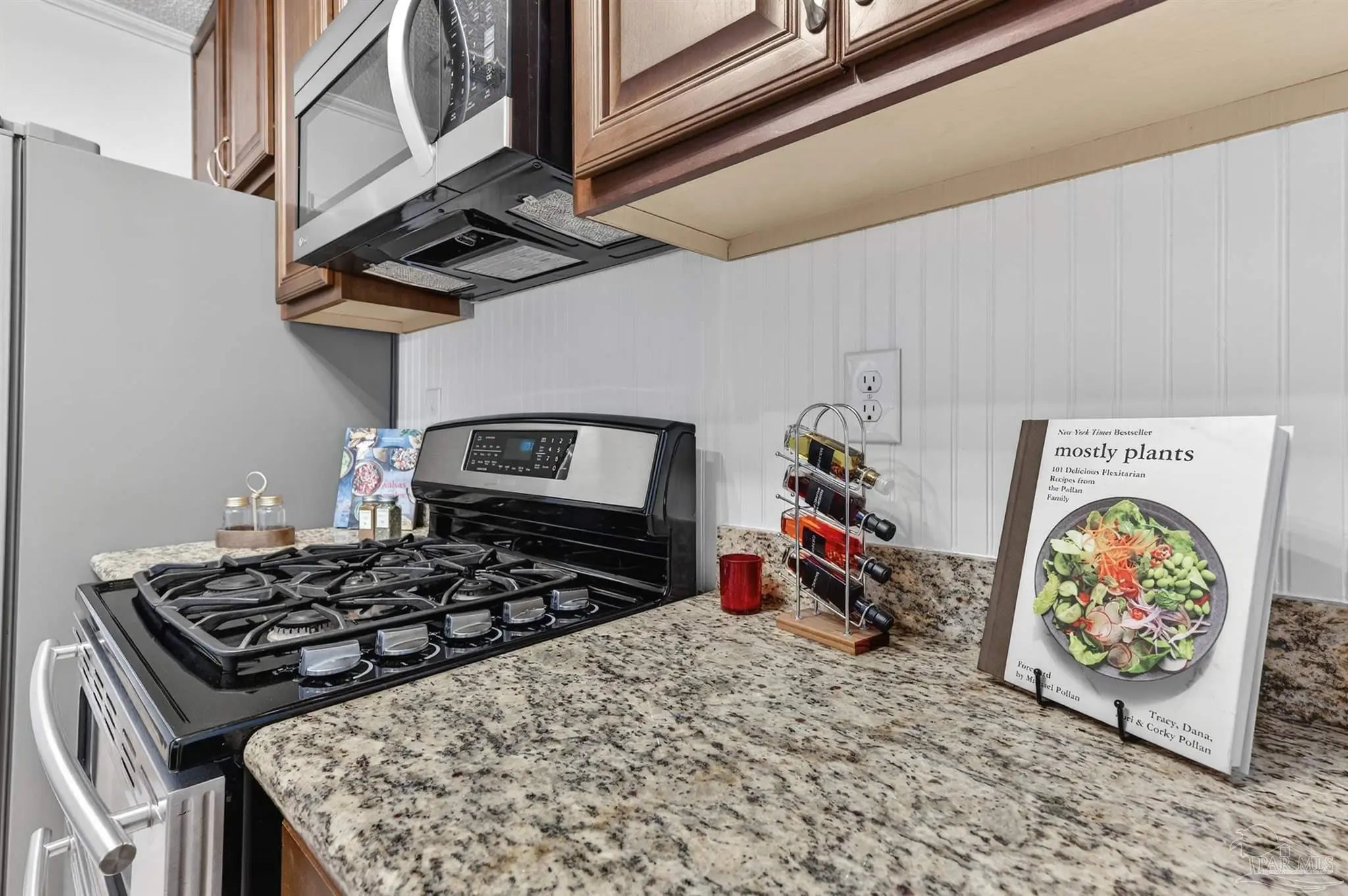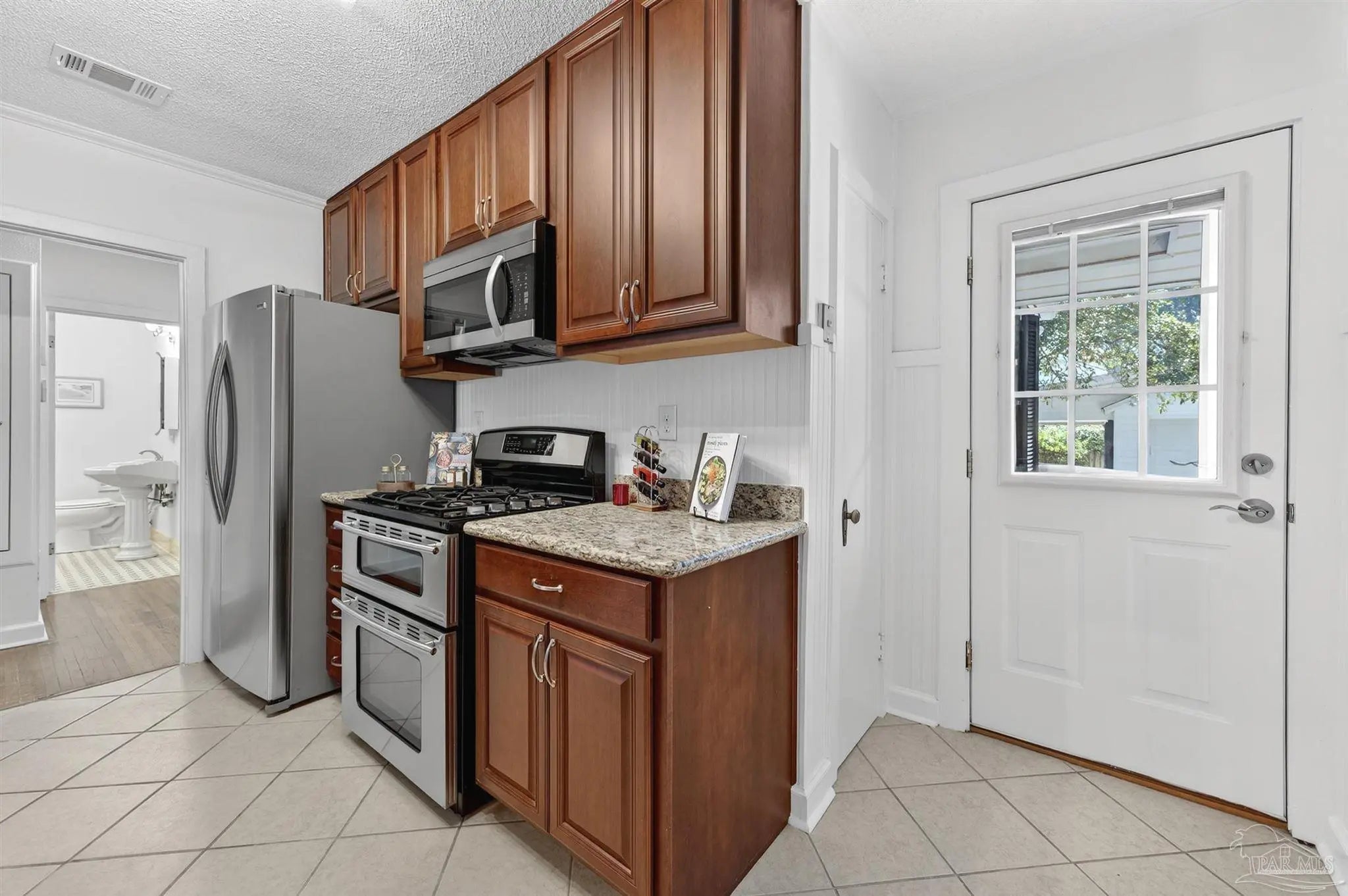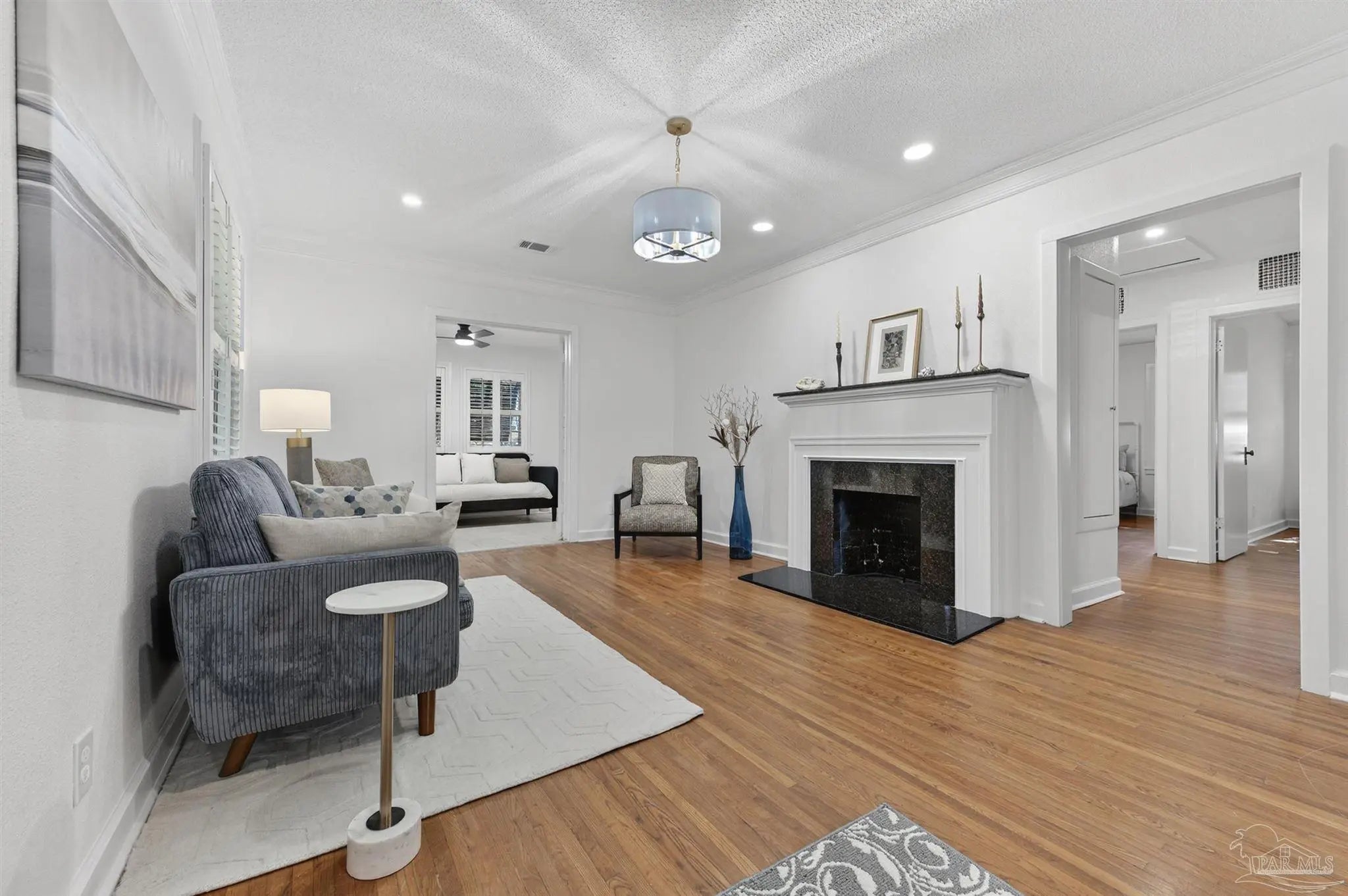 Timeless East Hill Brick Home! This beautifully maintained 1941 brick home is located in the highly sought-after East Hill neighborhood, just a short walk from Bayou Texar and Bayview Park. Offering 3 bedrooms and 2 full baths, this residence combines classic charm with thoughtful modern updates. This home features original hardwood flooring, a cozy gas fireplace, and an updated kitchen with granite countertops, a 6-burner Jenn-Air gas range, and a brand-new dishwasher. Fresh interior paint enhances every room, while the exterior has been refreshed with newly painted doors, windows, and decking. Additional improvements include new light fixtures, a complete electrical rewire, and a 1-car (269 sq. ft.) garage with electric and water, complemented by an attached carport. Outdoor living is easy to enjoy on the expansive 680 sq. ft. back deck—freshly painted and wired for a hot tub—overlooking the backyard while birdwatching. If you need more interior space, consider an addition to the back of the home or transforming the garage into an apartment. Notable upgrades include a Briggs & Stratton natural gas generator (installed 2022), new Lexon windows, and a new roof on both the home and garage (installed December 2023). For added protection and efficiency, Bahama shutters and Therma-Tru storm doors were installed in 2016, along with a Rain Bird sprinkler system. A transferable Sentricon pest control contract is paid through November 2026. Ideally located just blocks from Bayview Park and Bayou Texar, residents can enjoy tennis, kayaking, paddleboarding, or launching a boat just minutes from home. A short drive to the beautiful beaches at Pensacola Beach, while having the convenience of being close to shopping, amenities, & the airport.