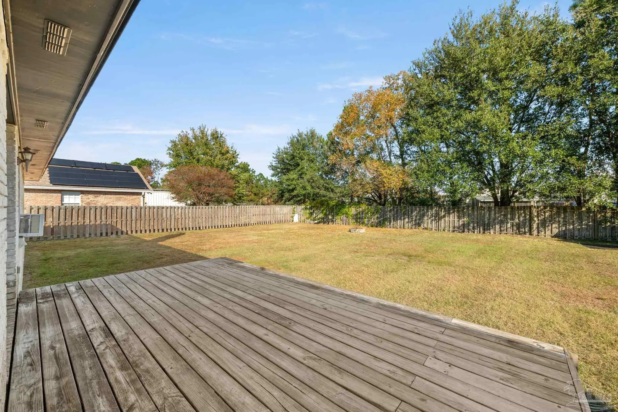 Welcome to Fox Den Villages in east Navarre, where this well-maintained ranch-style home blends everyday comfort with recent upgrades. Offering 3 bedrooms, 2 baths, and 1,601 square feet, the semi-open floorplan features a spacious galley kitchen, engineered hardwood floors in the living room and bedrooms, and tile in the kitchen and baths for easy care. A versatile flex room adds value and options; it can serve as a dining room, home office, playroom, or even be converted into a true fourth bedroom to fit your needs. What's new? This home now includes a full set of new appliances (stove, refrigerator, washer, and dryer), a new HVAC system, and a new 40-gallon water heater in the garage; all updates that provide lasting peace of mind. Out back, you'll find a private yard with an open deck and a storage shed, perfect for relaxing or entertaining. The quarter-acre lot and two-car garage round out the property's appeal. Its location makes commuting a breeze, just minutes to Hurlburt Field and about a half-hour to Eglin AFB.