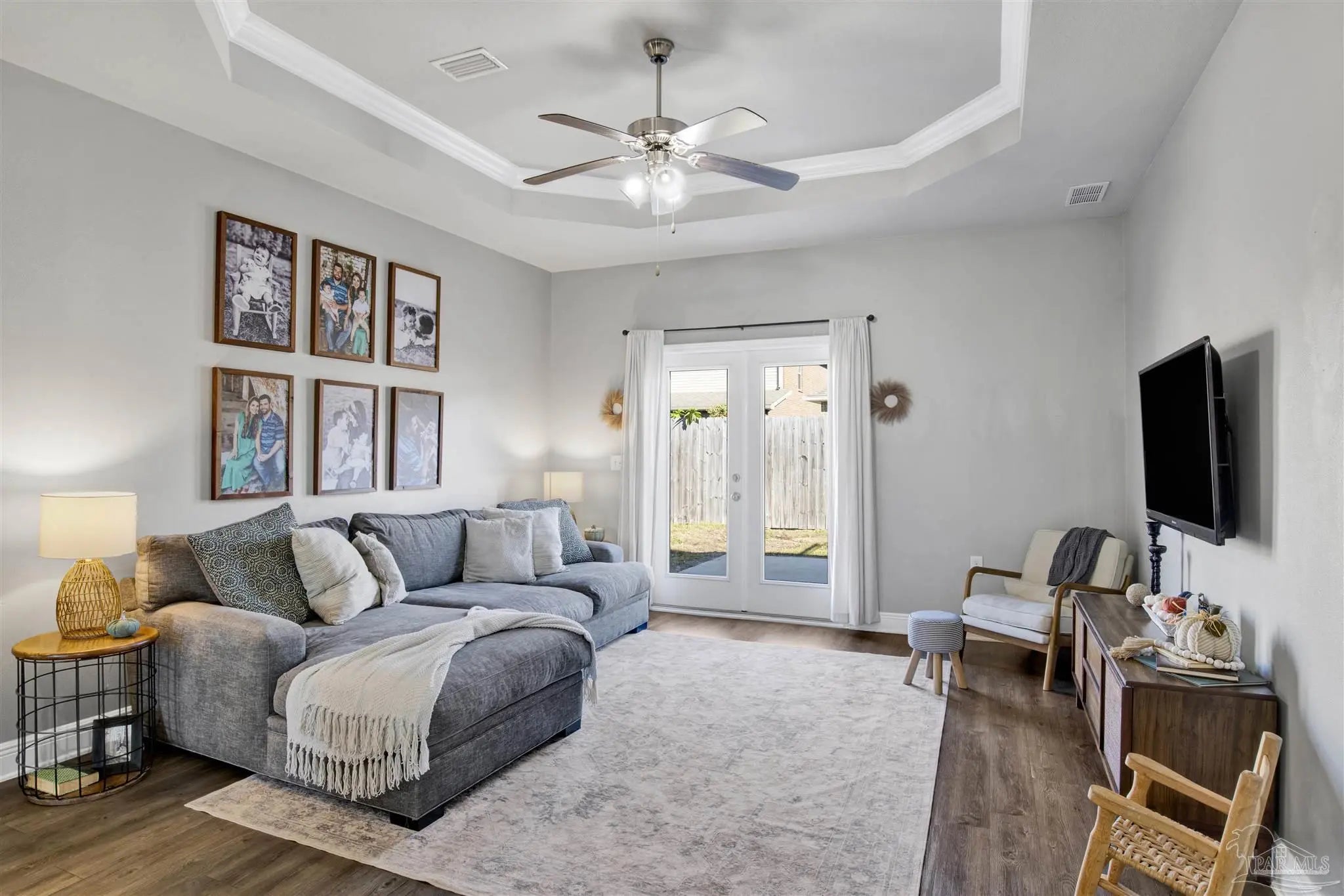 Welcome to this beautifully situated cul-de-sac home in the desirable Hawks Landing community. The neighborhood offers sidewalks and convenient proximity to local schools and nearby businesses, enhancing everyday ease and accessibility. Inside, you’ll discover an open, spacious floor plan anchored by a wrap-around granite kitchen with abundant cabinetry, stainless steel appliances, and a true pantry. The primary suite provides refined comfort with a tray ceiling enhanced by elegant crown molding, a walk-in closet, dual granite vanities, a separate garden tub and shower, and a private water closet. The versatile formal dining room can seamlessly function as a den, home office, study, playroom, or hobby space—tailored to your lifestyle. This all-brick home also includes Fabric Shield hurricane protection for added peace of mind. Schedule your private showing today.