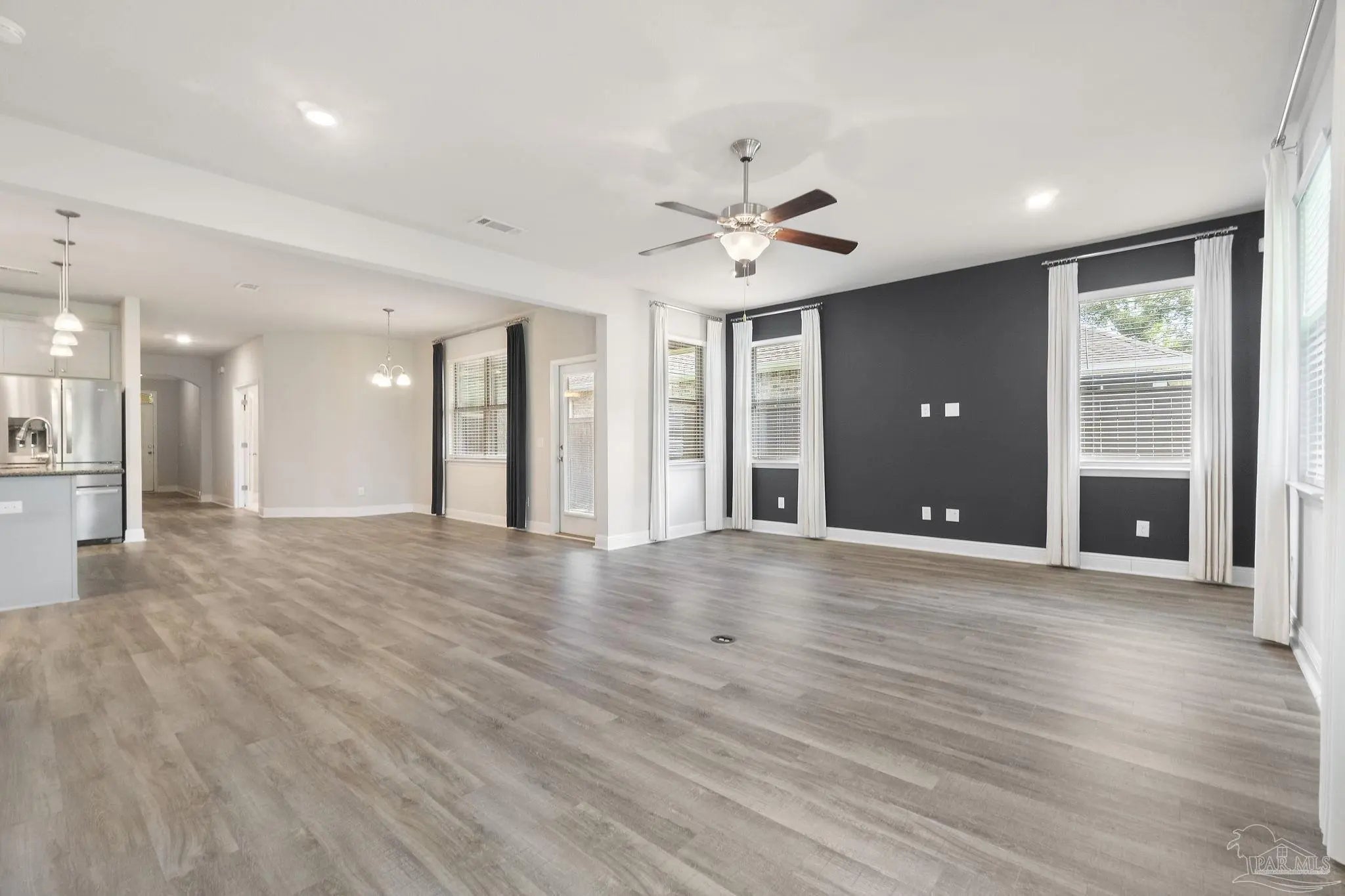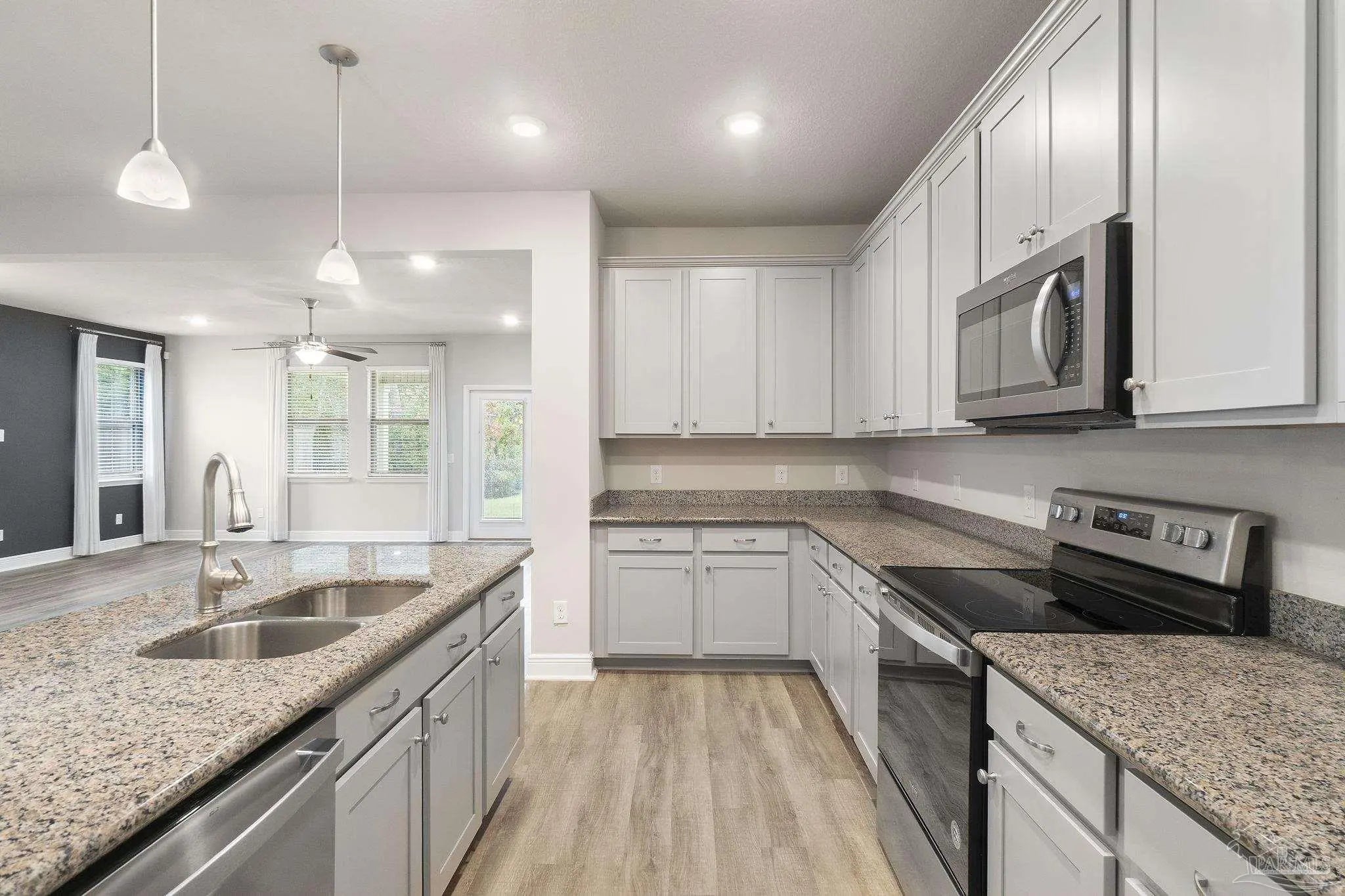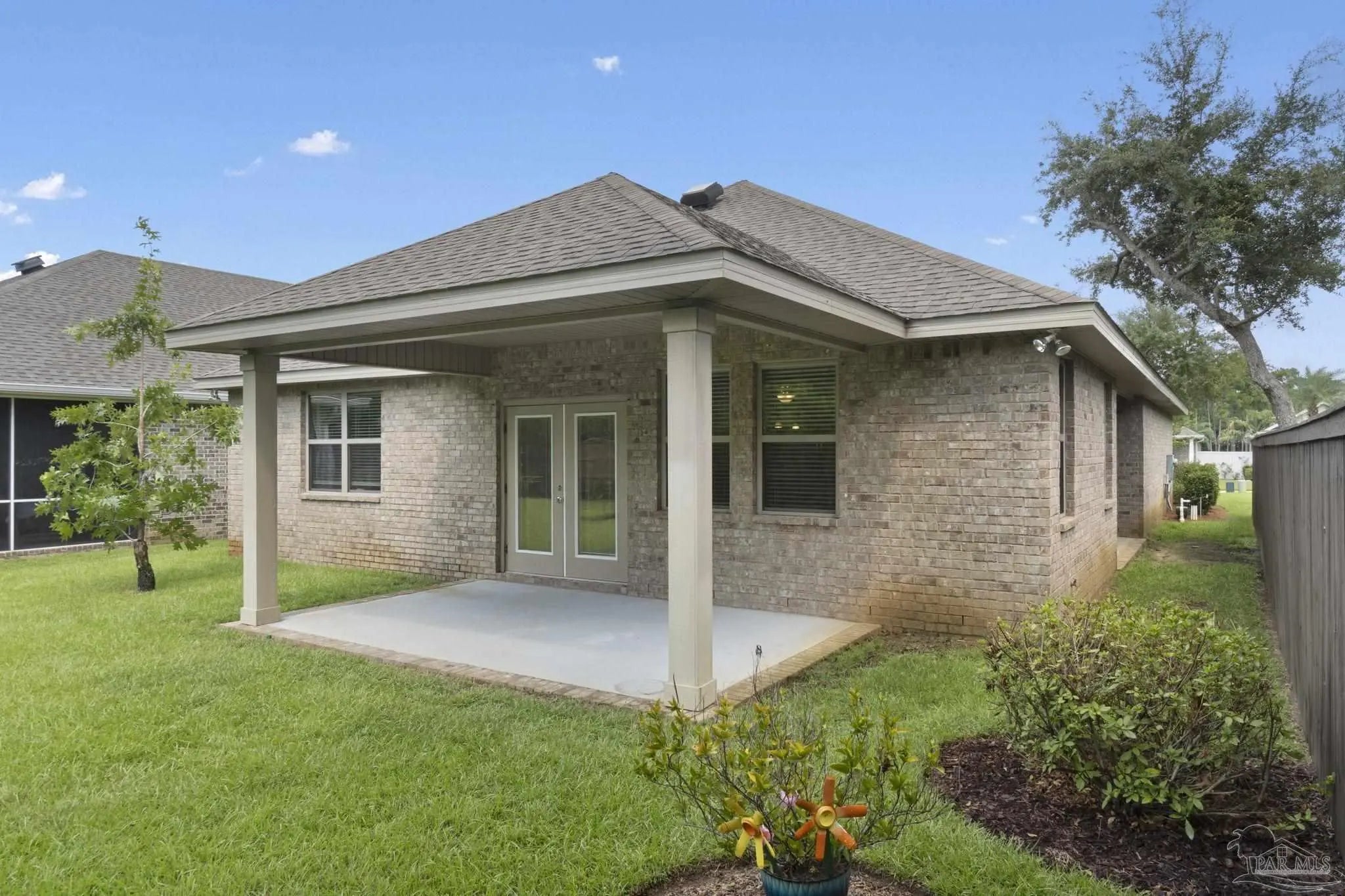 This former model home offers 3 bedrooms, 2 bathrooms, a versatile flex space, and 2,178 square feet of thoughtfully designed living space in the sought-after gated community of Sunrise. From the moment you arrive, you’ll feel the easygoing charm of coastal Florida living, with wide front and back porches and bonus courtyard porch perfect for relaxing with a morning coffee or catching evening breezes. Inside, you'll find luxury vinyl plank flooring throughout the main living areas and kitchen, with plush carpet in the bedrooms for added comfort. The open-concept layout makes entertaining easy, and the chef’s kitchen is the centerpiece of the home. It features granite countertops, stainless steel appliances, ample cabinet storage, and a large island that connects seamlessly to the dining and living areas. The flex space adds an extra layer of functionality, ideal for a home office, media room, playroom, or creative studio. Whether you work from home, need a quiet study space, or want a dedicated spot for movie nights or gaming, this room adapts to your lifestyle. The spacious primary suite features a boxed tray ceiling and a luxurious en suite bath with a double vanity, garden tub, tiled walk-in shower, private water closet, linen closet, and a large walk-in closet. Guest bedrooms are generously sized and offer plenty of natural light. Located just a minute from the back gate to NAS and right next to a large park and playground, this home offers convenience as well as community. Beaches, restaurants, shopping, and grocery stores are all just a short drive away. Newer construction is hard to find in this area, making this a rare opportunity to enjoy the comfort, charm, and convenience of Gulf Coast living in Sunrise.