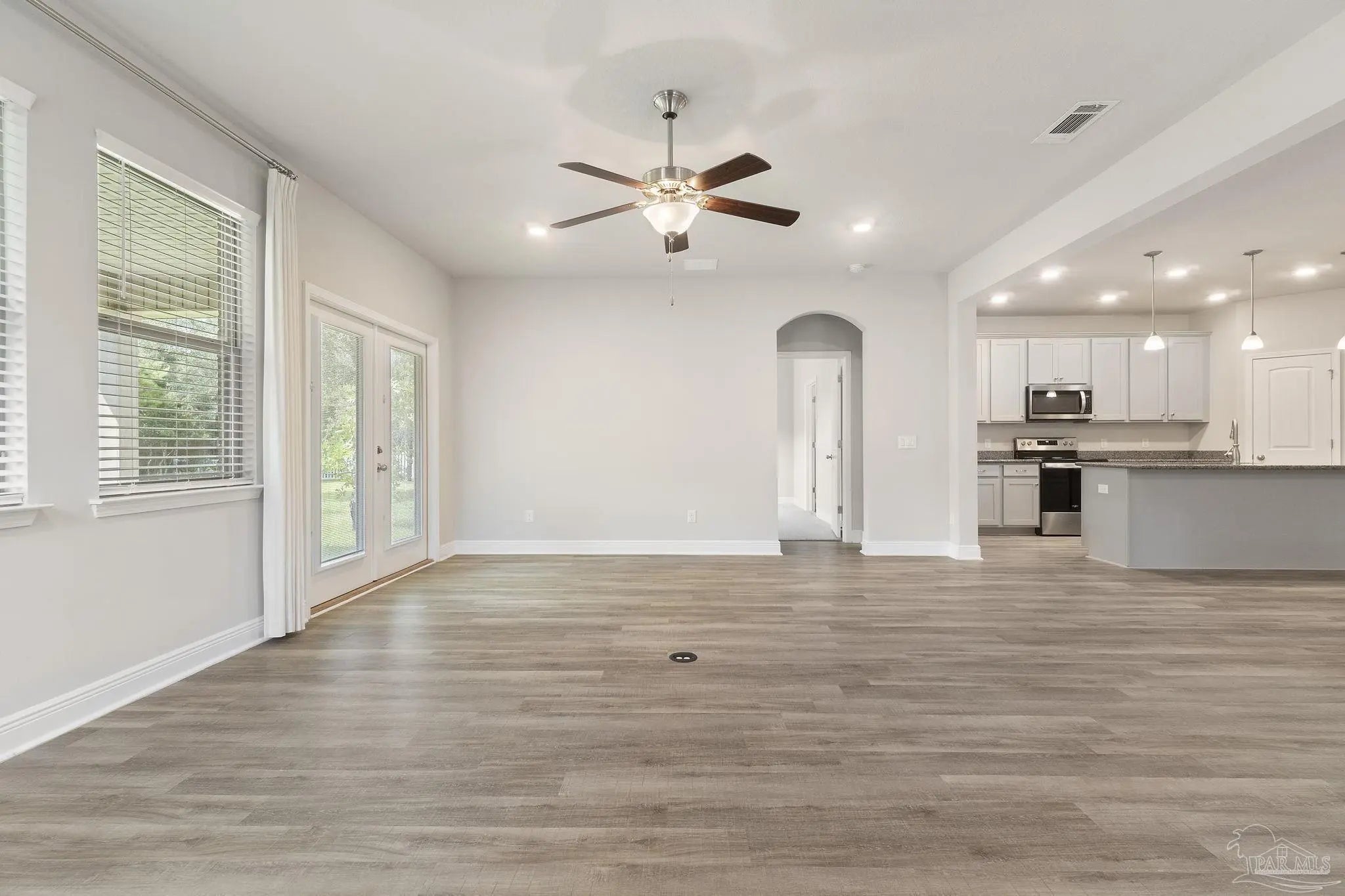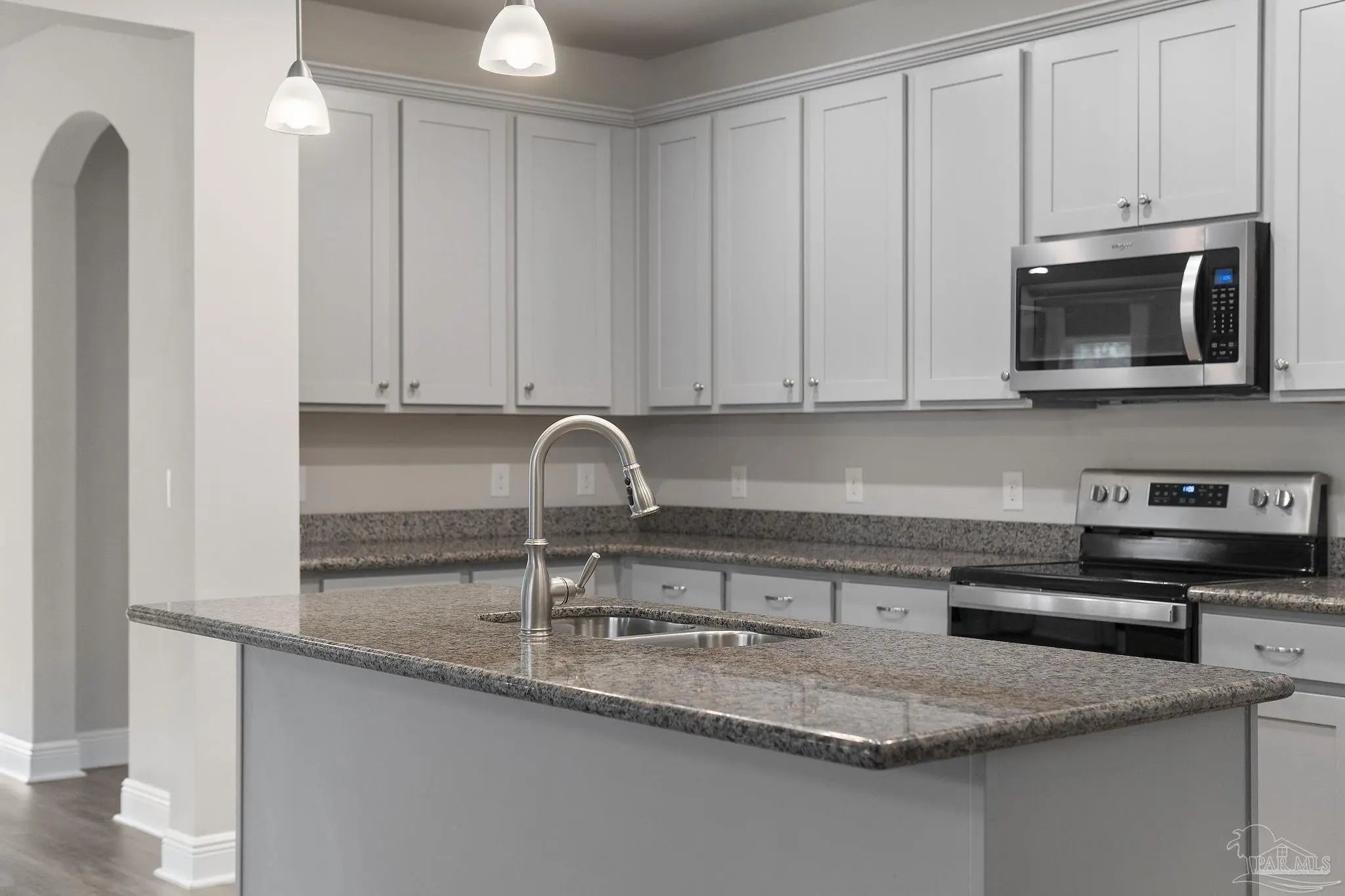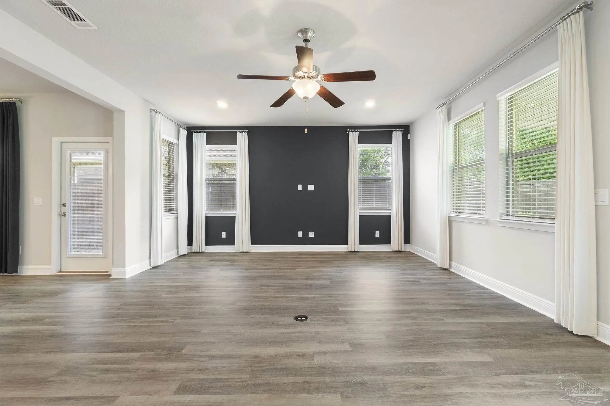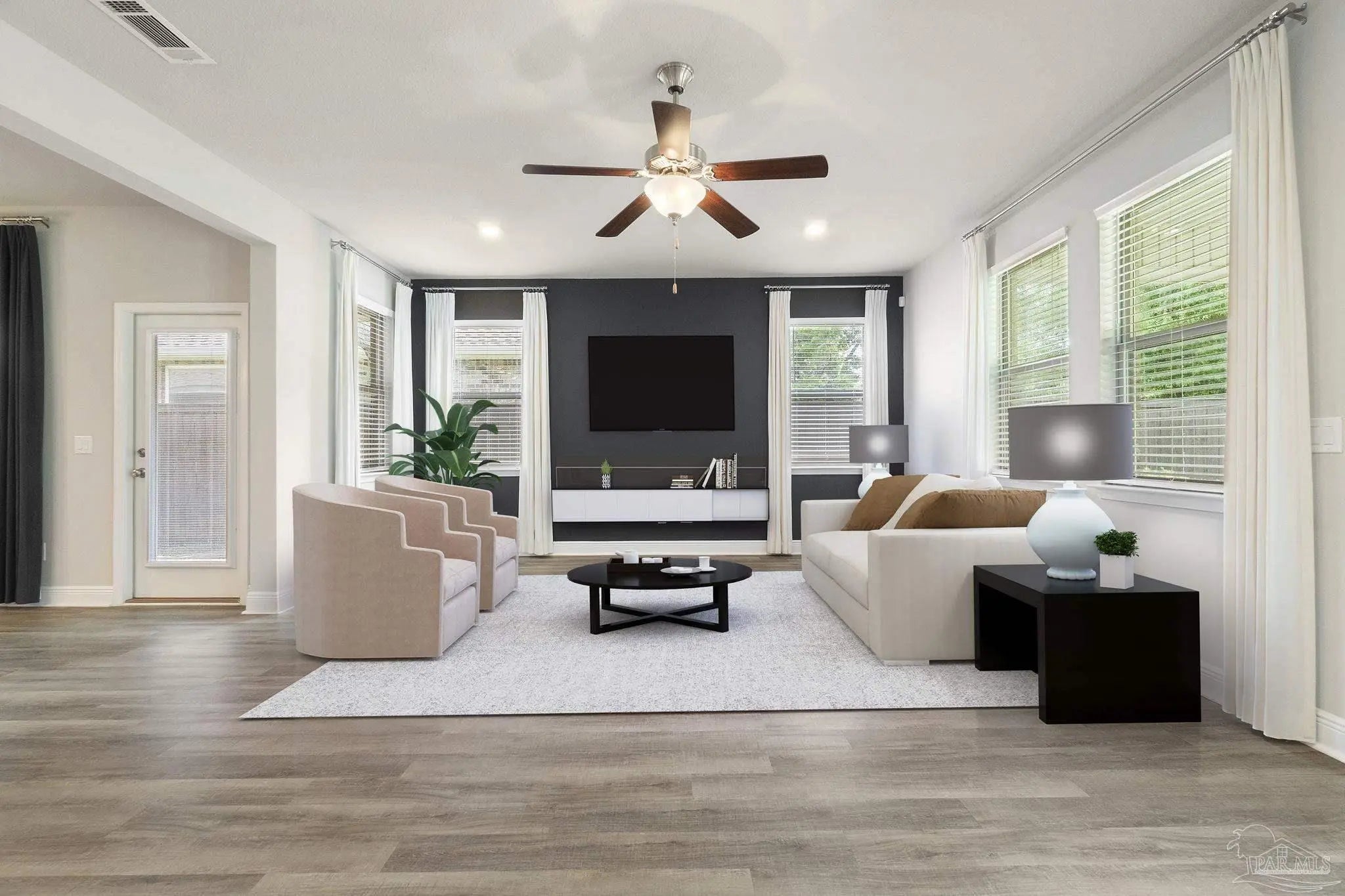 This former model home offers 3 bedrooms, 2 bathrooms, a versatile flex space, and 2,178 square feet of thoughtfully designed living space in the sought-after gated community of Sunrise. From the moment you arrive, you’ll feel the easygoing charm of coastal Florida living, with wide front and back porches and bonus courtyard porch perfect for relaxing with a morning coffee or catching evening breezes. Inside, you'll find luxury vinyl plank flooring throughout the main living areas and kitchen, with plush carpet in the bedrooms for added comfort. The open-concept layout makes entertaining easy, and the chef’s kitchen is the centerpiece of the home. It features granite countertops, stainless steel appliances, ample cabinet storage, and a large island that connects seamlessly to the dining and living areas. The flex space adds an extra layer of functionality, ideal for a home office, media room, playroom, or creative studio. Whether you work from home, need a quiet study space, or want a dedicated spot for movie nights or gaming, this room adapts to your lifestyle. The spacious primary suite features a boxed tray ceiling and a luxurious en suite bath with a double vanity, garden tub, tiled walk-in shower, private water closet, linen closet, and a large walk-in closet. Guest bedrooms are generously sized and offer plenty of natural light. Located just a minute from the back gate to NAS and right next to a large park and playground, this home offers convenience as well as community. Beaches, restaurants, shopping, and grocery stores are all just a short drive away. Newer construction is hard to find in this area, making this a rare opportunity to enjoy the comfort, charm, and convenience of Gulf Coast living in Sunrise.