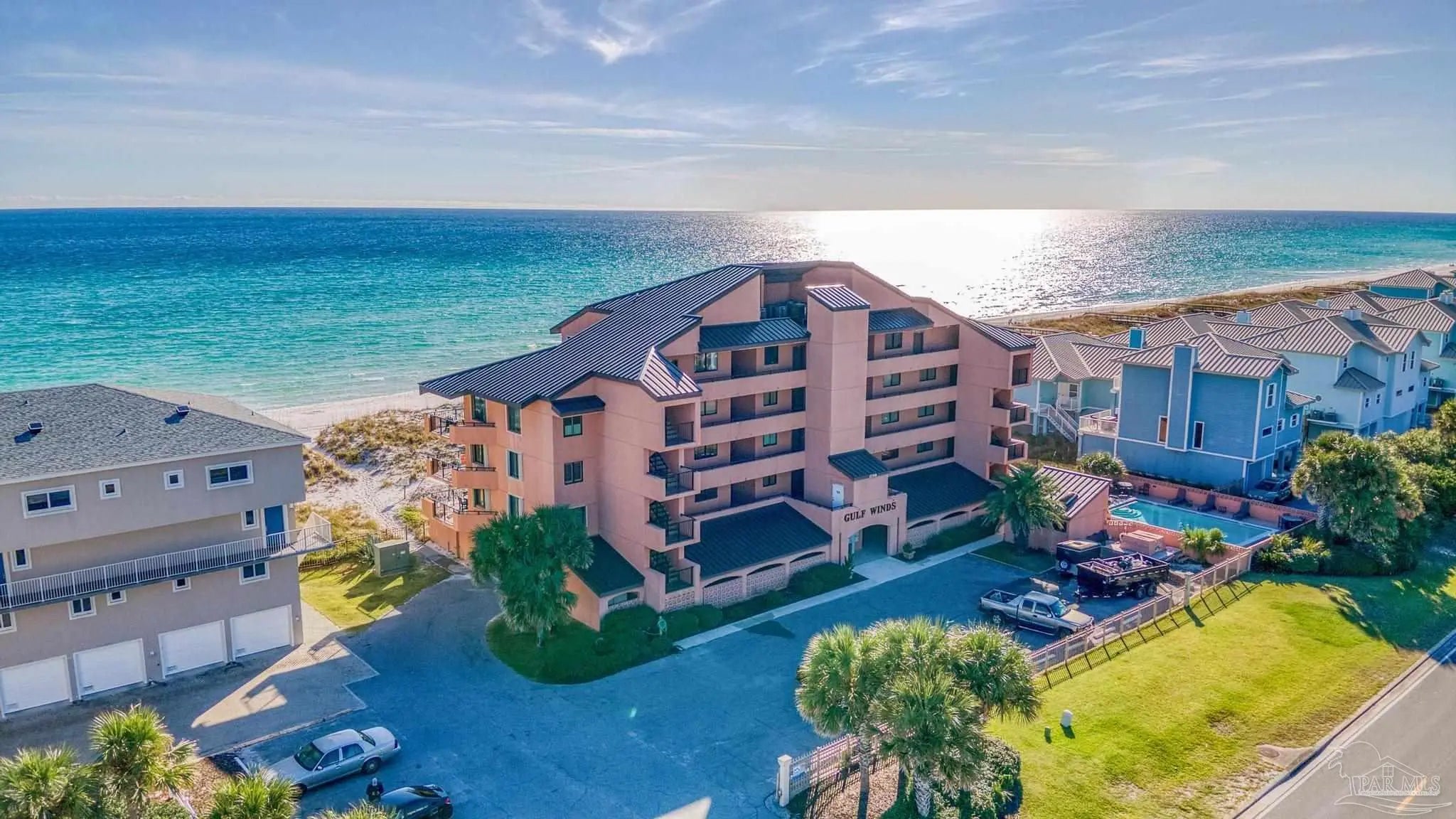 Welcome to your luxury Gulf-front escape at 1199 Fort Pickens Road, Unit 402, perfectly positioned along the sugar-white sands of Pensacola Beach. This top-floor, loft-style residence captures sweeping views of the Gulf of Mexico from nearly every angle and offers the ideal blend of personal retreat and investment performance. Step inside to an airy open-concept living space with soaring ceilings, walls of glass, and a private balcony where you can watch dolphins play and sunsets paint the horizon. The updated kitchen features stainless steel appliances, new stone countertops, and bar seating, seamlessly connecting to the dining and living areas for effortless entertaining. Upstairs, the lofted primary suite serves as a tranquil retreat with a spacious en-suite bath and dual vanities. A comfortable guest bedroom and full bath on the main level provide privacy and flexibility for family or guests. Offered fully furnished and turn-key, this residence is an established short-term rental generating over $90,000 in annual gross income, making it an exceptional opportunity for those seeking both lifestyle and return. Guests love the split-level design, high ceilings, and panoramic Gulf views that make every stay unforgettable. The Gulf Winds community offers resort-style amenities including a sparkling beachfront pool, sundeck, elevator, and private beach access directly to the Gulf of Mexico. A dedicated covered parking space, additional guest parking, metal roof, newer sliding glass doors, and hurricane shutters provide added peace of mind. Located just minutes from Casino Beach, Peg Leg Pete’s, and historic downtown Pensacola, this residence offers the ultimate coastal lifestyle. Whether a private beachfront haven or proven investment property, Unit 402 delivers the best of Gulf-front living—where every sunrise feels like your own private escape. MORE PICTURES TO BE UPLOADED. LENDER PAID BUY-DOWN AVAILABLE