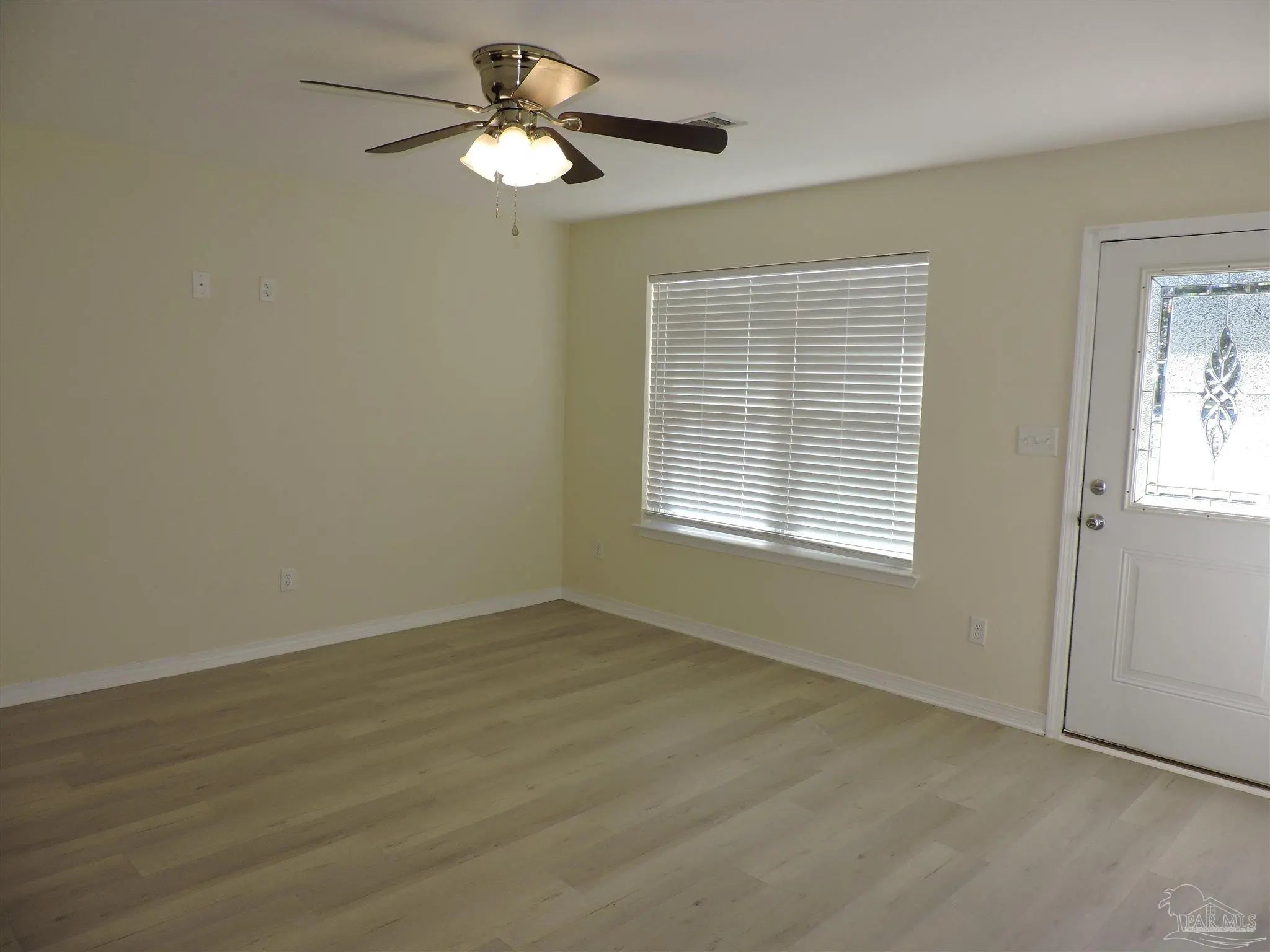 Convenient to bases, shopping & beaches! Almost new home in excellent condition. Wood-look vinyl plank flooring throughout. Living room with ceiling fan. Kitchen/dining combination. Fully equipped kitchen with stainless steel appliances, granite countertops & pantry. Split bedroom floor plan. Ceiling fans in all bedrooms. Inside laundry. Large privacy fenced backyard with open patio. Pets considered with owner approval & monthly pet rent.