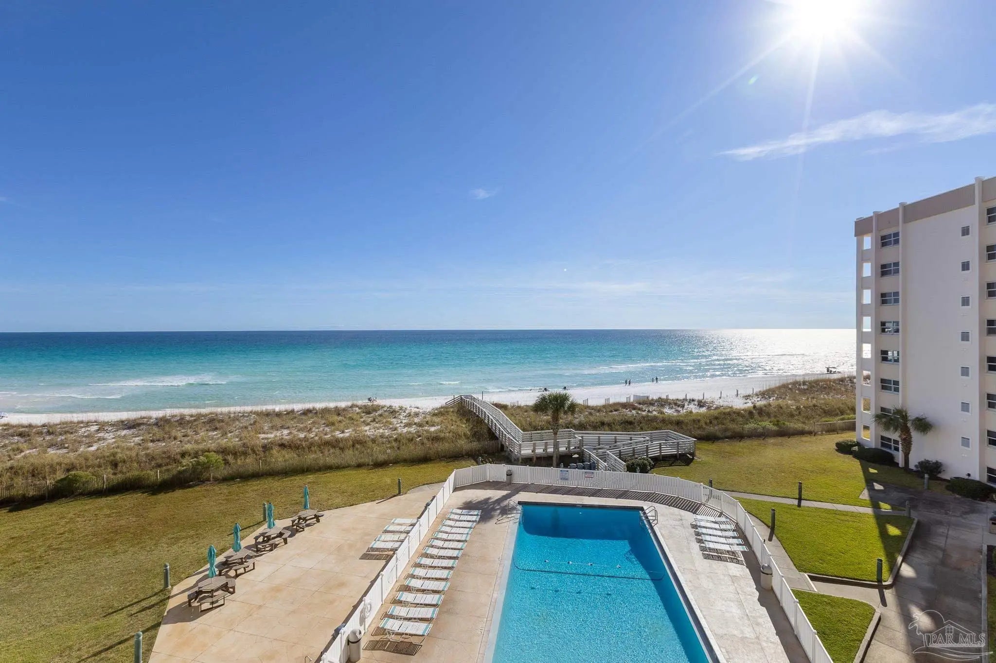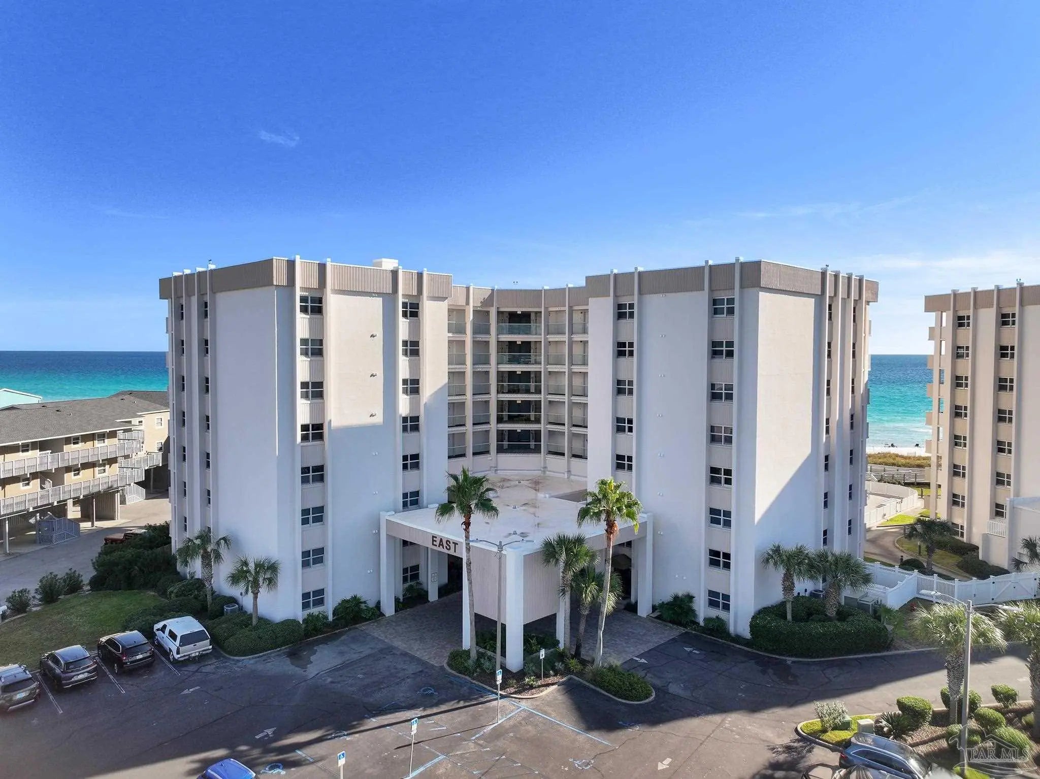 One of the most sought after locations on Pensacola Beach. Looking out your windows or relaxing on your private balcony, you will be captivated by the sweeping beauty of the Gulf of Mexico. From soaring seabirds and peaceful beach life to the iconic Blue Angels tipping their wings overhead, the view alone makes this 2-bedroom, 2-bath condo unforgettable. Perfectly positioned in the interior of the building, this residence offers enhanced comfort and quiet while still delivering the stunning gulf vistas you came for. Step inside and discover a fully furnished, thoughtfully designed layout with an open living area that maximizes space for gathering, unwinding, and taking in the scenery. The fully stocked kitchen leads right into the dining/living room creating more room in the main living area for relaxation or play. Both bedrooms feature private en-suite baths and picturesque views, making each space feel like its own retreat. The private balcony includes a convenient storage room—ideal for keeping beach toys, chairs, and gear close at hand. Regency Towers surrounds you with a resort-style atmosphere, offering a host of amenities including a fitness center, tennis courts, a clubhouse overlooking a tranquil lagoon, and a large community pool with front-row views of the beach. Located on the quieter side of the beach, the condo is just a free trolley ride or easy bike cruise to beachside dining, shopping, and entertainment—and only a short drive over the bridge to the charm and culture of Pensacola. Whether you’re seeking an investment, a vacation haven, or a full time living by the sea, this gulf-view gem has everything you’ve been looking for.