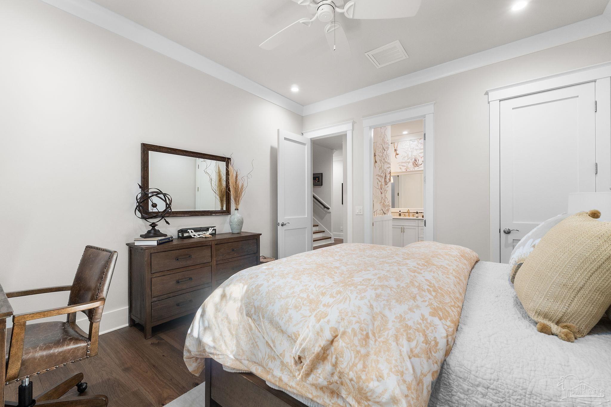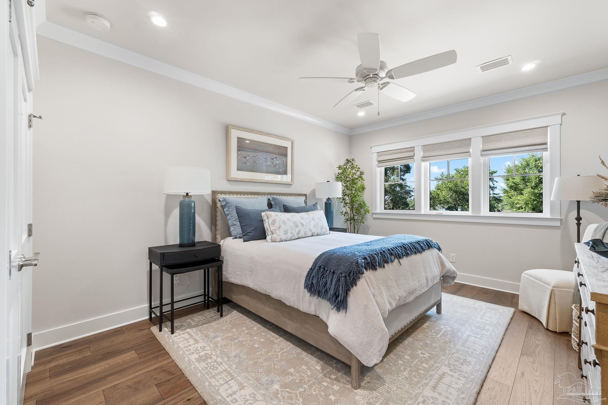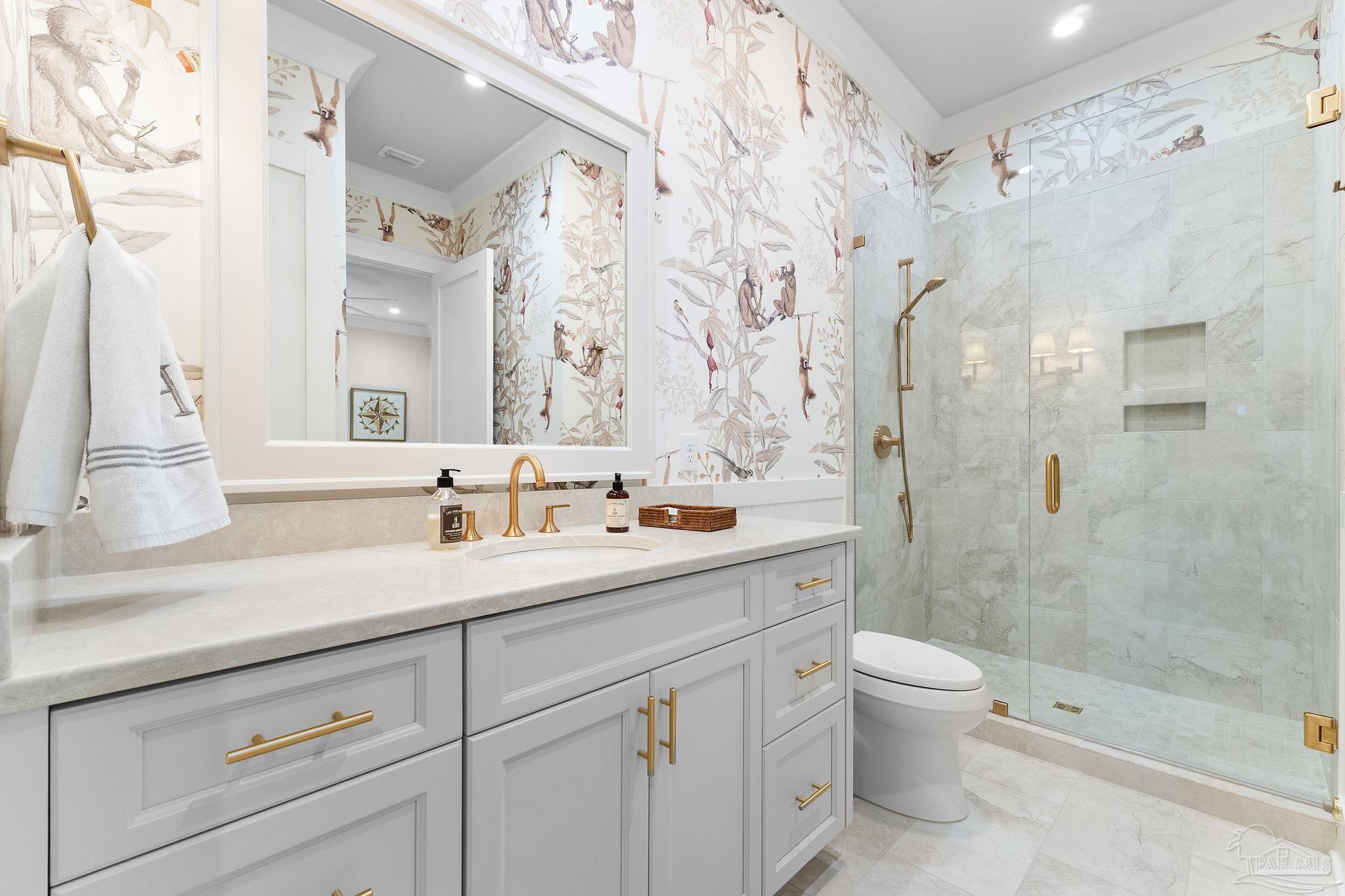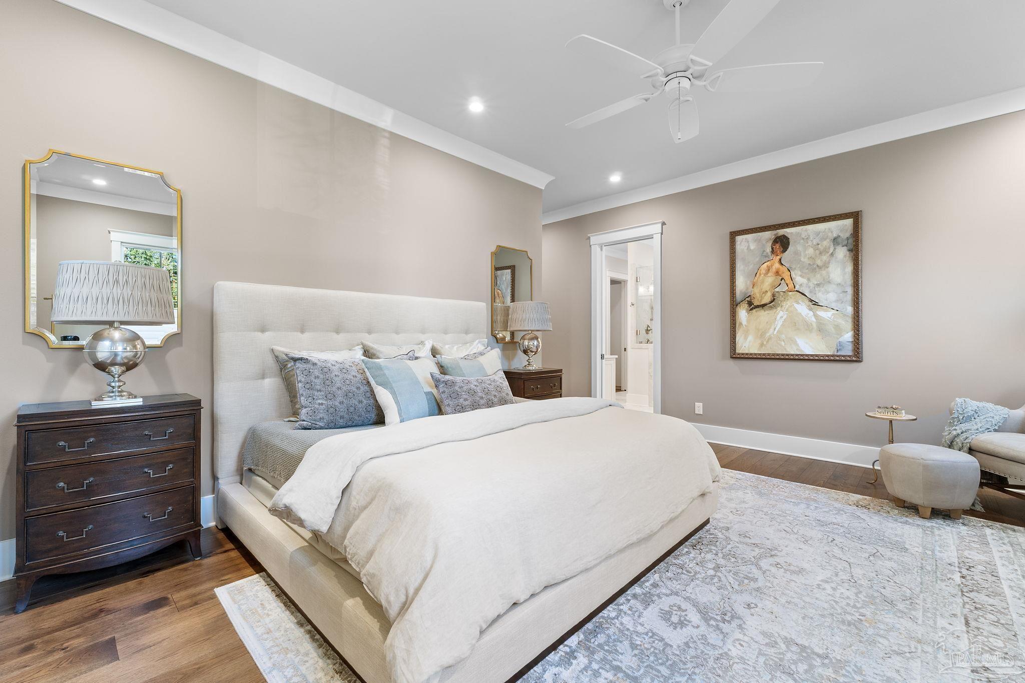 Experience the best of coastal luxury living in this stunning 2023 custom-built home by renowned builder Rick Sprague. Perfectly positioned to capture peaceful bayou and bay views, this residence combines timeless architecture, superior craftsmanship, and modern efficiency for a truly elevated lifestyle. The open-concept floor plan showcases a gourmet kitchen with Silas stone countertops, Wolf double ovens, a Thermador gas cooktop, a JennAir built-in refrigerator, a spacious island, and custom cabinetry throughout. A hidden walk-in pantry and wet bar with beverage cooler make entertaining effortless. Elegant crown moulding, wide baseboards, and thoughtfully placed under-cabinet outlets highlight the attention to detail in every room. The primary suite on the main level offers a serene retreat with his and hers closets and a spa-inspired bath featuring a soaking tub, Silas stone countertops, and garden views that provide natural privacy. A guest bedroom and full bathroom on the main level share the same tranquil setting. Upstairs, you’ll find two spacious ensuite bedrooms, including one with breathtaking bayou views. Ample walk-in attic access with spray foam insulation ensures exceptional storage and energy efficiency, with the possibility to expand one of the attics to increase the home’s overall square footage. Additional highlights include beautiful hardwood floors, a functional mudroom off the three-car garage, and a whole-house generator for added peace of mind. The garage features an epoxy floor finish and a mini-split unit, creating a climate-controlled space ideal for hobbies or additional storage. Outdoor living truly shines with a large front porch featuring tongue-and-groove ceilings and a charming swing, the perfect place to relax and enjoy bayou sunsets. The grilling porch with gas hookups extends your living space outdoors, perfect for entertaining. Mature landscaping and a built-in bug misting system enhance comfort and privacy, while the privat