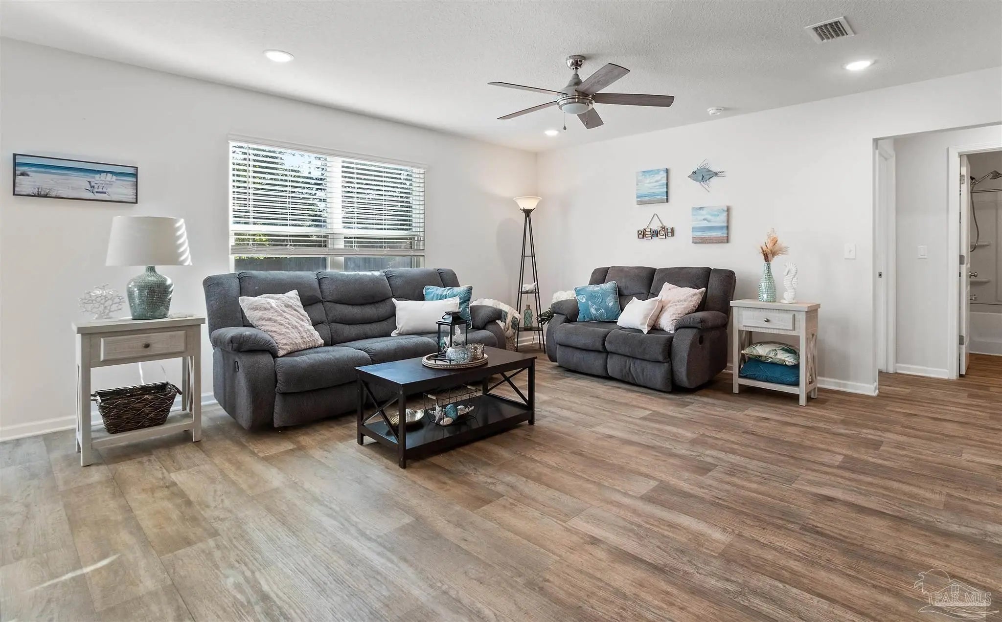 Discover the perfect blend of comfort and convenience in this well-maintained 5-bedroom, 3-bathroom home, located in the heart of Pensacola. Enjoy unmatched proximity to pristine beaches, vibrant shopping, military bases, and the airport—everything you need is just moments away. Step inside to an expansive open-concept floor plan crafted for seamless entertaining. Dual living rooms—one on each level—offers abundant space, complemented by another versatile bonus room perfect for a home office, playroom, or media center. Host unforgettable game days: whip up snacks in the gourmet kitchen while staying fully engaged with guests and the action. The kitchen boasts modern updated lighting, a spacious center island, large corner pantry, sleek stainless-steel appliances, and ample storage. Escape to the outdoors in your private backyard oasis, designed for year-round enjoyment of Florida’s sunshine. Fire up the grill, challenge friends to corn hole, and gather on the expanded patio, all within the security of a fully enclosed privacy fence. Unwind in the luxurious primary suite—your personal retreat—featuring an en-suite bath with double vanity, separate shower, and generous walk-in closet. Four additional bedrooms provide flexibility for family, guests, or home gyms, including one conveniently located on the main floor for easy accessibility. This exceptional home won’t last—schedule your private showing today and step into your Pensacola dream!
