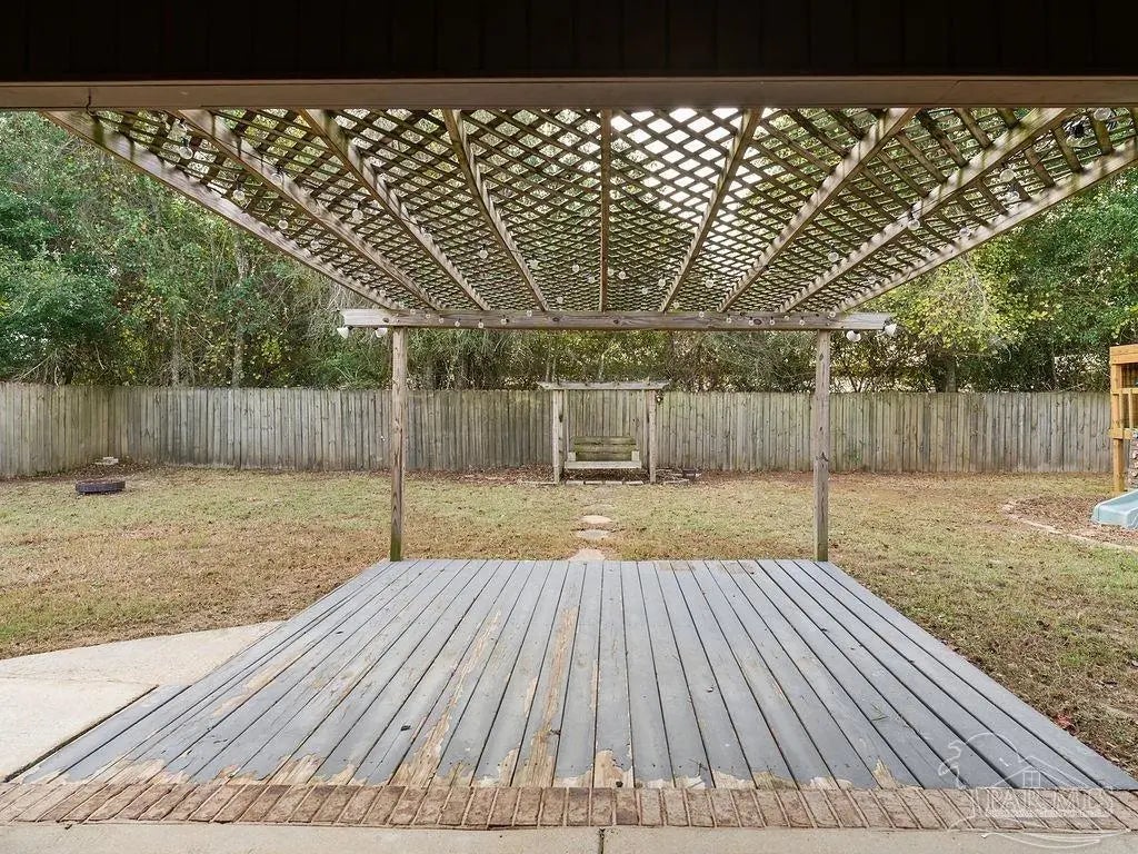 Welcome to this beautifully maintained 4-bedroom, 2-bath all-brick home offering 1,976 square feet of comfortable, thoughtfully designed living space in a convenient Pace location. Inside, you'll find fresh interior paint and brand-new carpet in all bedrooms, creating a bright and inviting atmosphere. The open-concept kitchen flows seamlessly into the living area, making the home ideal for both easy everyday living and effortless entertaining. A new roof installed in 2021, paired with the long-lasting durability of an all-brick exterior, provides excellent peace of mind. The fenced backyard offers a private outdoor escape with plenty of room to relax, host gatherings, or let pets enjoy the space — complete with an existing playset for added convenience. Situated on a spacious lot within a small HOA community, this home offers the perfect balance of privacy and accessibility. You’re just minutes from Publix, Target, dining, shopping, and highly rated local schools. A two-car garage and a series of thoughtful updates make the home move-in ready from day one. With its solid construction, larger lot, and welcoming neighborhood atmosphere, this property delivers exceptional value and everyday comfort in a prime Pace location.