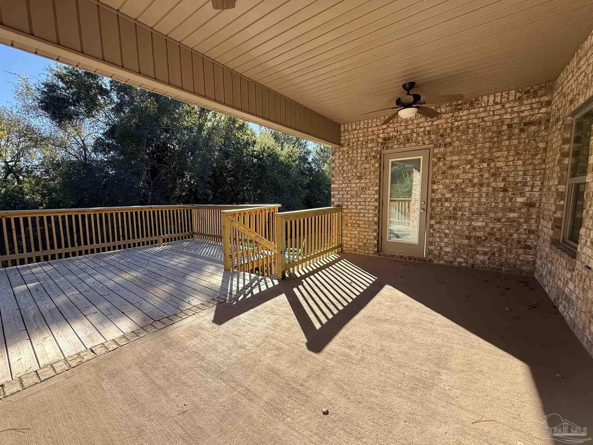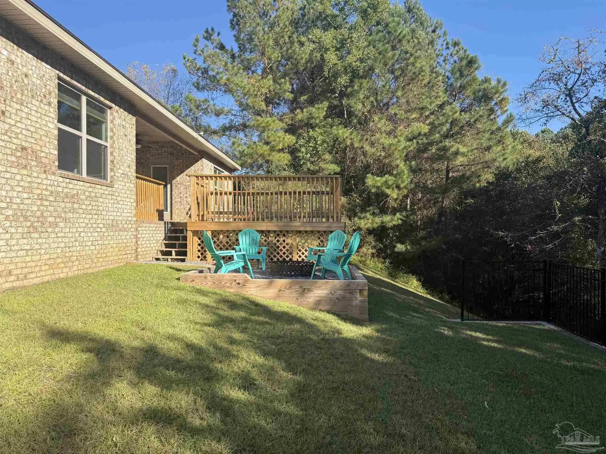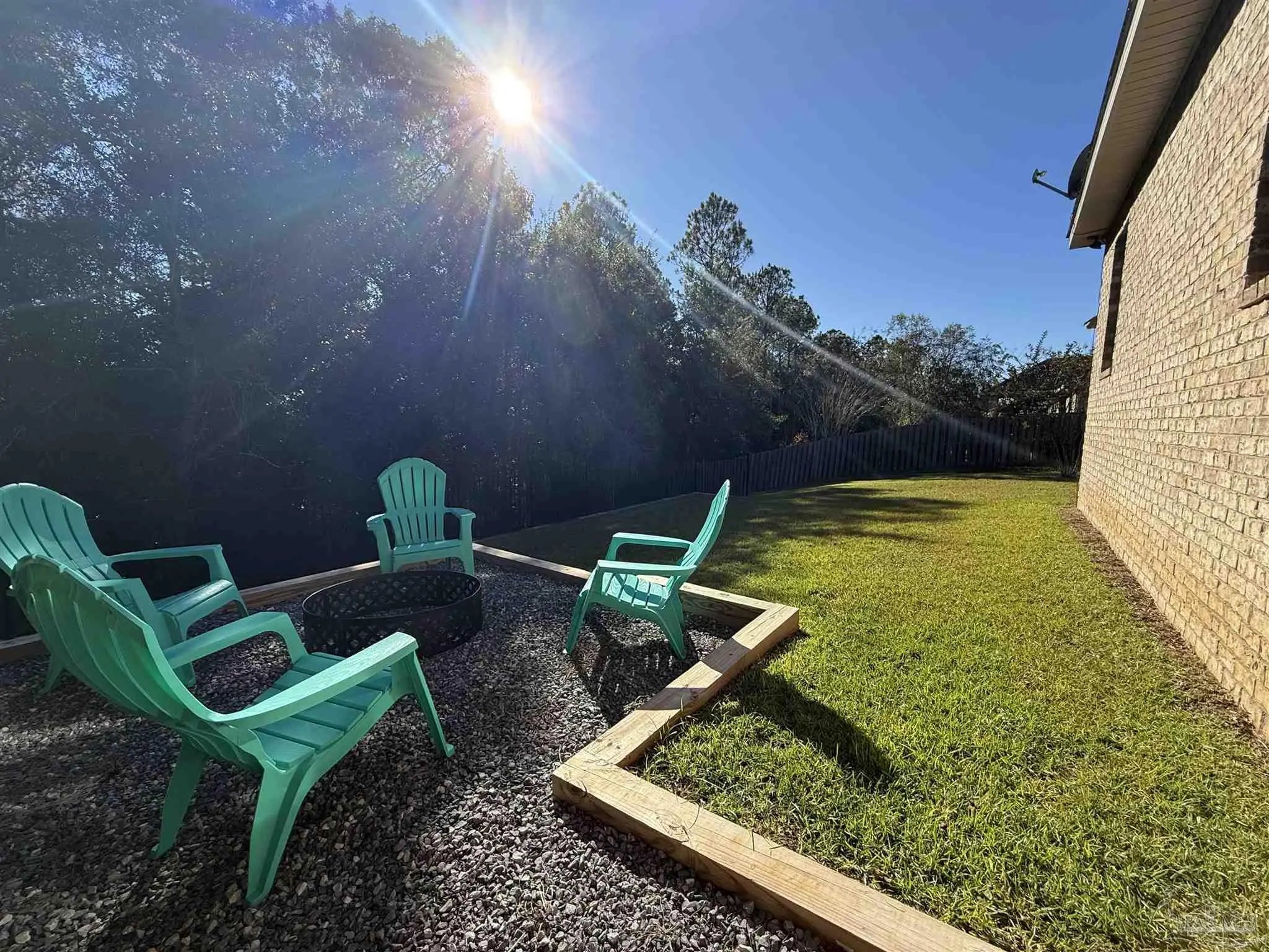 This well-maintained 4BR/3BA home in Pace offers a bright open living area, a spacious kitchen with modern appliances, and a split floor plan for added flexibility. A private bonus suite with its own full bath is perfect for guests, work, or extra living space. Outside, enjoy a beautifully updated backyard featuring a 16x16 deck, fire pit area, and a regraded yard with a retaining wall for added privacy and usability. Additional perks include hurricane shutters, a reverse osmosis system, and a Ring alarm system. A comfortable, functional home with great indoor and outdoor living spaces.