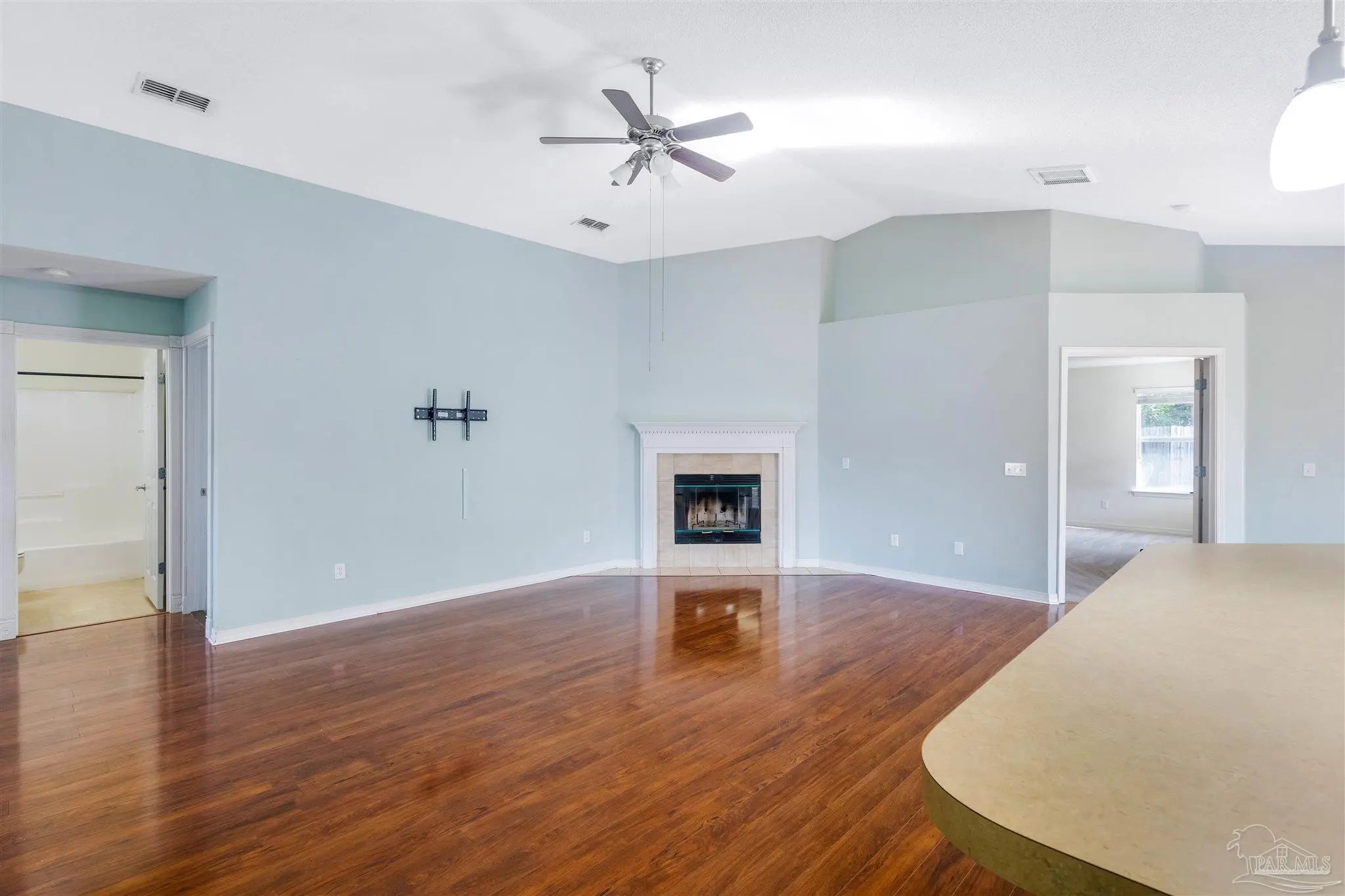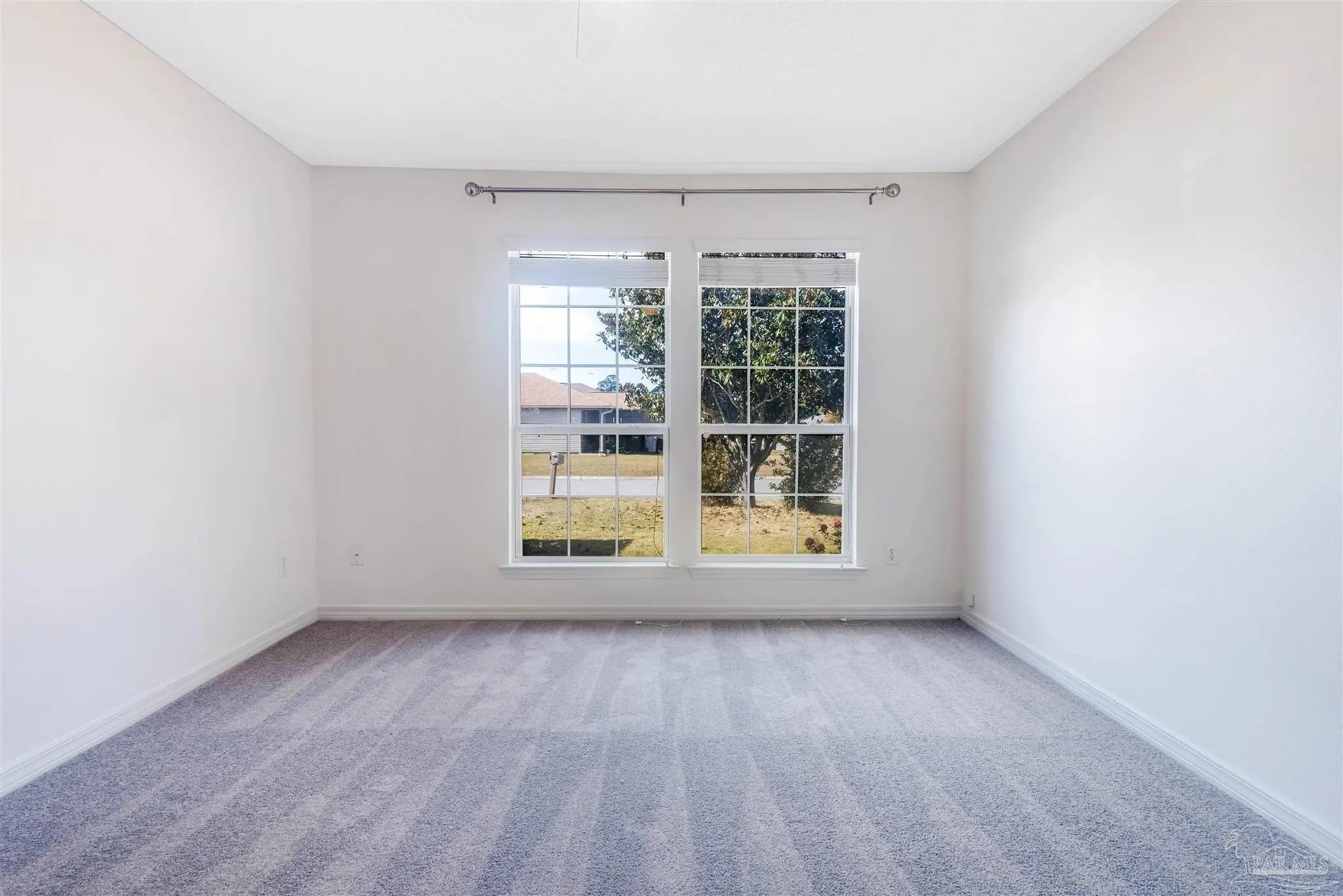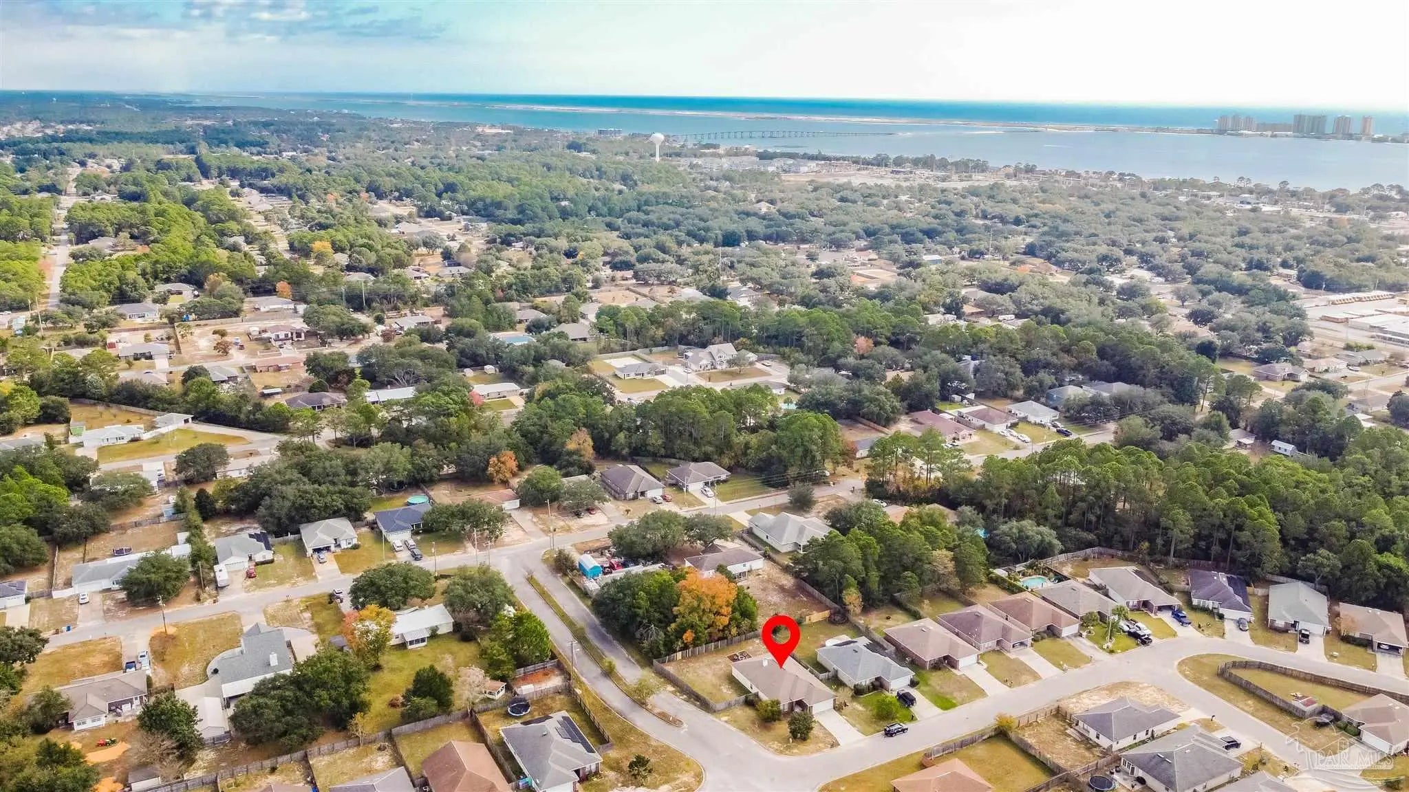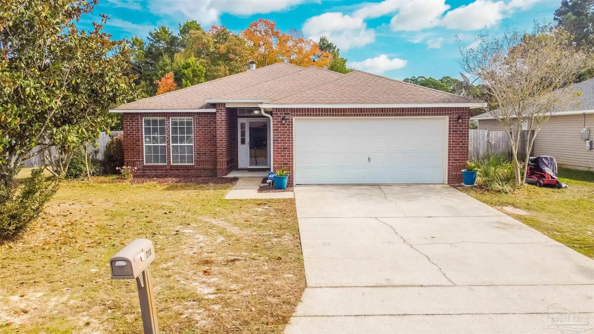 Come see this beautiful, corner lot home in Navarre just 4 miles away from the beach! Located in the Promise Creek neighborhood, this property sits on a 0.165 acre corner lot and features a large, fenced backyard space with a covered porch and firepit area. The interior showcases an open floor plan with vaulted ceilings in the spacious living area that also has a fireplace, along with a kitchen that overlooks the living & dining areas and includes a breakfast bar, lots of counterspace, and a pantry. The main bedroom suite is separate from the other bedrooms and the bathroom features a walk-in closet, a double vanity, and a garden tub. The property is located within 2 miles of Publix Supermarket and other restaurants & shopping off of US-98, along with being within 4 miles of Navarre Beach. Schedule your showing today!