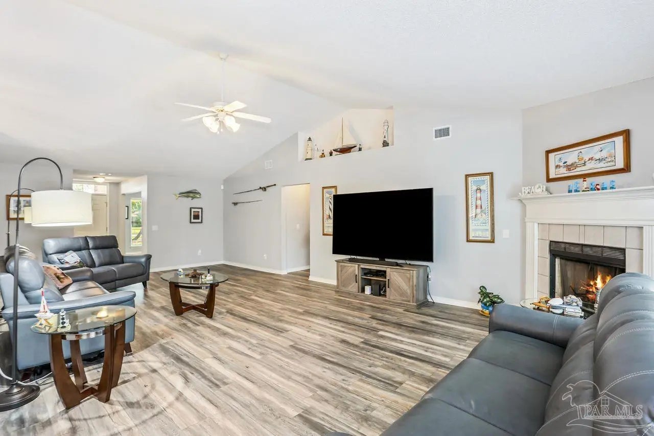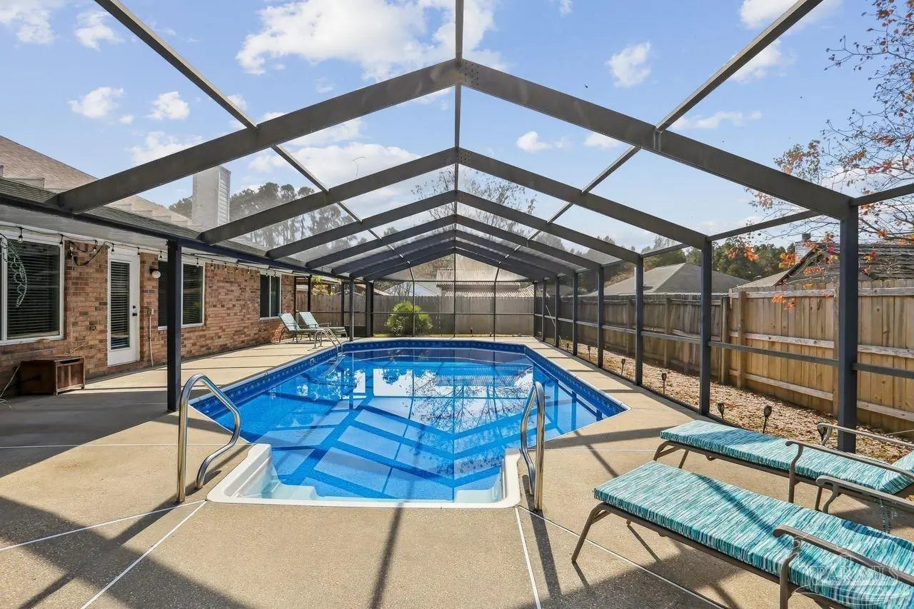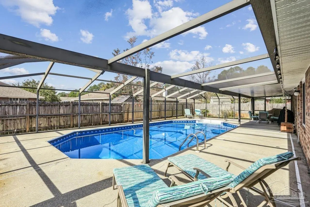 Welcome to this beautifully maintained 4-bedroom, 2-bathroom home tucked away on a peaceful cul-de-sac, just minutes from NAS and the stunning beaches of Perdido. This spacious residence offers both comfort and convenience, along with a sparkling pool enclosed in a screened lanai—perfect for year-round enjoyment. Upon entering, you’re greeted by a formal living room and dining room that flank the front entry, creating an elegant and welcoming first impression. The home then opens to a large family room featuring soaring ceilings and a cozy fireplace, offering the ideal space for gathering and relaxing. The kitchen provides abundant cabinet storage, a pantry, and new stainless-steel stove and dishwasher, along with a bright eat-in area overlooking the backyard. The home’s split bedroom layout offers excellent privacy: three nicely sized guest bedrooms with generous closets are situated on one side, while the primary suite is privately set apart. The primary bedroom features two walk-in closets, and an en-suite bath with a separate tub and shower and a private water closet. Step outside to the expansive screened lanai, ideal for entertaining, grilling, or simply enjoying the Florida lifestyle by the pool. This home has been exceptionally cared for with major recent upgrades, including new windows, roof, A/C, water heater, flooring and pool liner, offering peace of mind for years to come. See a full list of updates in the documents.