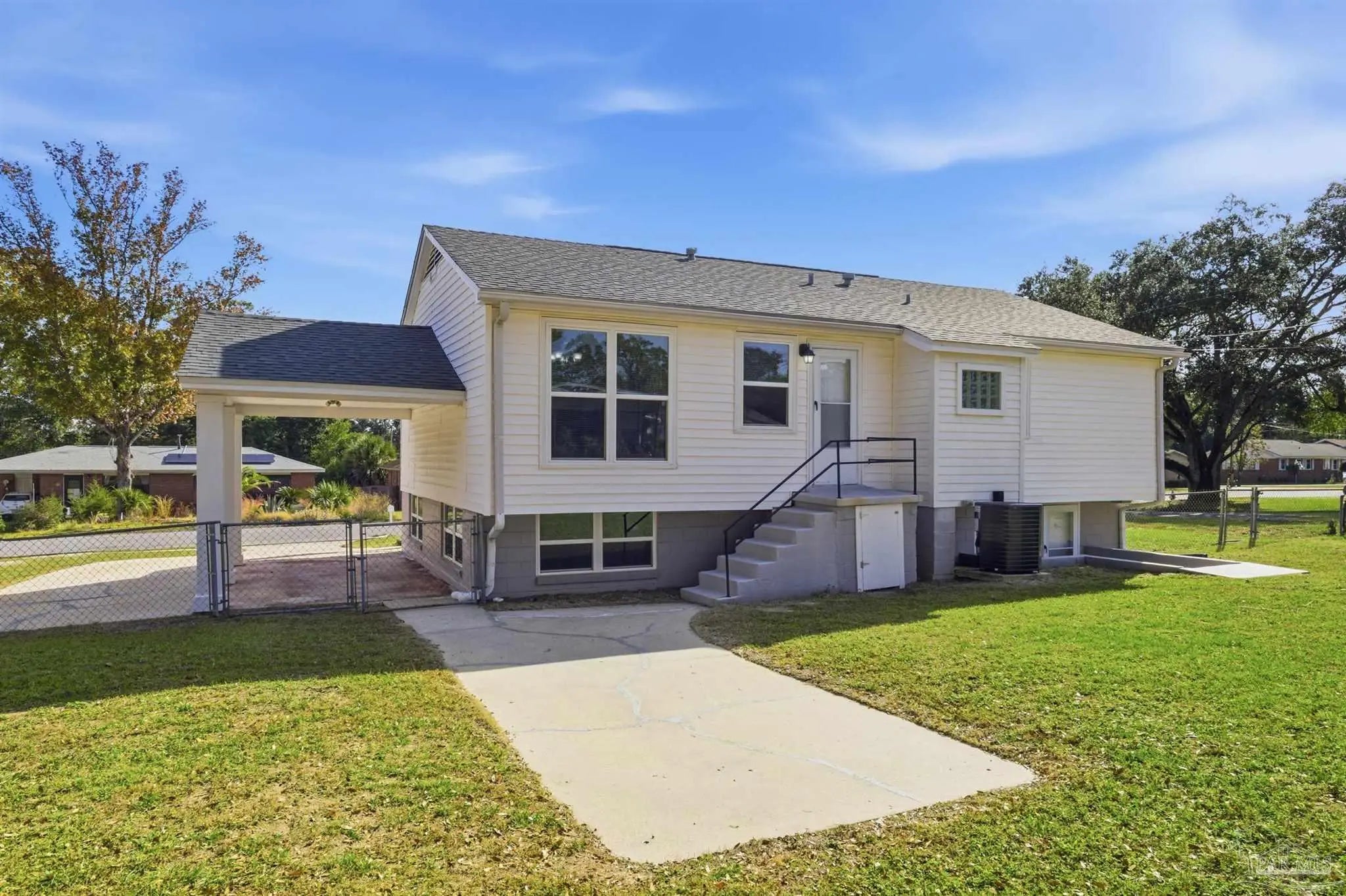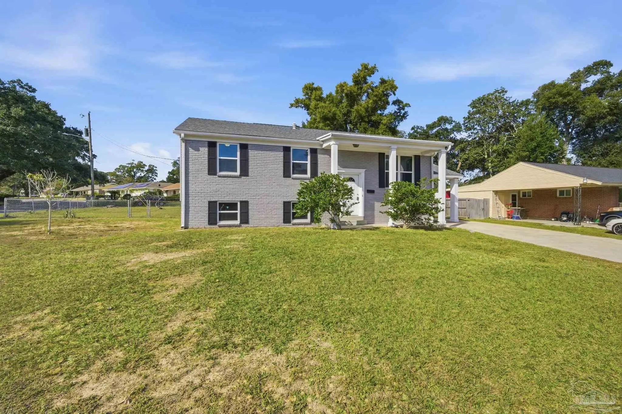 0.8 mi to Bryan Park • 1.0 mi to Hitzman-Optimist Park • 1.2 mi to Publix • 2.5 mi to Cordova Mall • 0.7 mi to I-110 access Fully refreshed 4-bedroom, 3-bath home offering approx. 2,220 sq ft of living space on a generous 100' × 108' corner lot. The open main-level layout features hardwood flooring, updated kitchen with white cabinetry, island, and stainless appliances, plus adjoining dining and living areas. Primary bedroom offers a tray ceiling detail. Finished lower level provides versatile flex space, ideal for family room, home office or media area. Exterior includes painted brick, driveway-parking plus carport, and fenced yard – no HOA. Newer appliances and fresh paint throughout. Situated minutes from Bryan Park and Hitzman-Optimist Park, quick access to Publix, Cordova Mall, and I-110 for effortless commuting. Don’t miss this well-maintained split-level with modern updates and exceptional location.