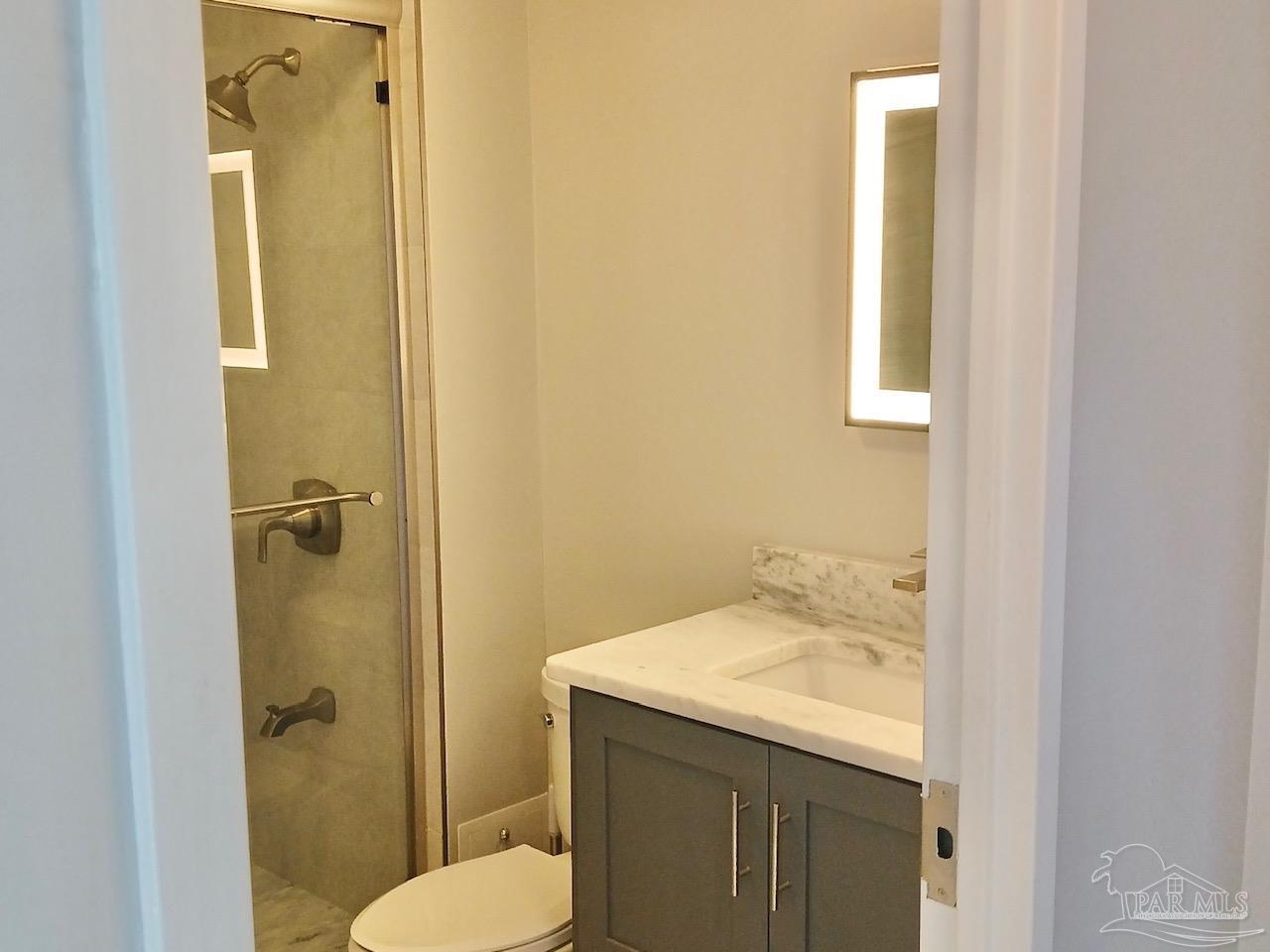 Welcome Home! This totally upgraded & renovated 2/2 west-end wraparound unit boasts million-dollar views of Pensacola Bay & Pns Country Club Golf Course from the 10th floor. Attention to detail in every room. The stunning modern kitchen offers an open concept layout architecturally designed with upgraded SS appliances, custom designed wood cabinets, marble counters, induction cooktop, wall mount micro/oven. island with wine cooler, dimmable cabinet lighting, LG upgraded glass front door, Bosch washer/dryer & DW, spacious pantry, crown molding & 6" baseboards throughout the unit. Beautiful views of the golf course during the day w/ breathtaking sunsets at night from the spacious living dining combo. Both bathrooms have been totally renovated offering shower stalls with glass enclosures, granite counters, custom cabinets, upgraded fixtures, and porcelain tile. Each bedroom has stunning views, the Master of the Bay and the guest bedroom of the golf course. Upgraded fans in each bedroom, premium Sherman William paint w neutral color throughout the unit complements the spatial balance of the spaces. Amenities include 24/7 front desk & security, waterfront pool, private pier, exercise room, community room plus So many more details, the unit is a MUST SEE .!! close to beaches, downtown restaurants and NAS.